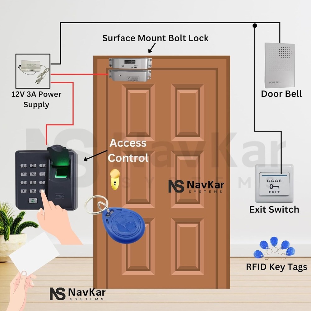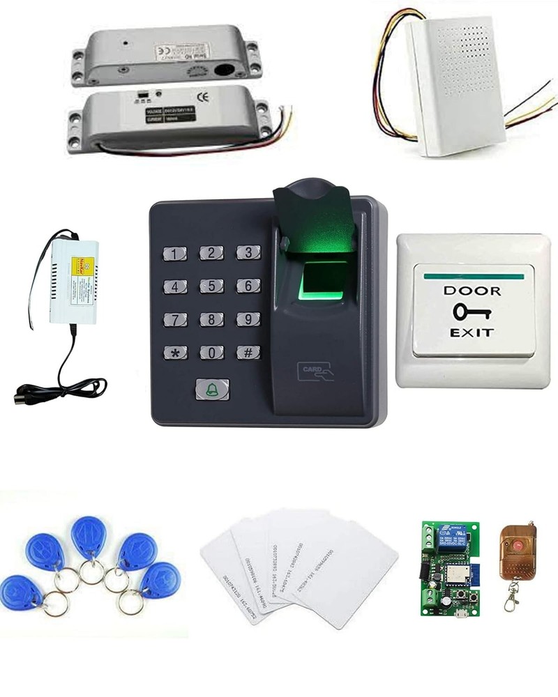 This is a NEW RFID Reader Access Control Keypad, which can update the safety of your home and office. It is perfect for Homes, Office, Factory and many other fields! It is powerful and can open the door using proximity cards, passwords etc The access controller can provide users with more convenience by connecting to terminals, including the button for opening the door, doorbell, and electric lock that is normally open or closed. Fingerprint and RFID Reader Access Control System with Surface Mount Bolt Lock Access Controller+ Power Controller+ Surface Mount Bolt Lock + 5 RFID cards + 5 Keyfobs + Exit button With 1x Remote, 1x Tuya WiFi PCB, You Can Open Lock via Remote control and Mobile App Package: 1 x Fingerprint + RFID Access Controller 1 x Power supply controller 1 x Remote 1 x Tuya WiFi PCB 1 x Surface Mount Bolt Lock 1 x Exit button 5 x RFID cards 5 x ID Keyfobs 1 x doorbell Fingerprint + RFID Access Controller: This is an innovative biometric fingerprint and RFID card access controller for home/office security applications, it adapts an advanced algorithm for reliability, precision and excellent matching speed, it works standalone and have the interface for third party electric lock, exit button, door sensor, alarm and bell. Keypad operation on the device is easy and convenient, such as enroll user, delete user and access control parameter settings etc. Reliable, durable & highly accurate optical sensor Integrated 125kHz RFID proximity reader sensor Supports Fingerprint and 125KHz RFID card 26-digit Wiegand interface for 3rd party control panels Less than 1 second user recognition Stores 500 fingerprint templates Audio-Visual indications for acceptance/rejection of valid/ invalid Access Controller Specification: Card Capacity : 500 Fingerprint Capacity : 500 Operating Temperature : 0ºC to 40ºC Sensor : Optical Sensor Access Control Interface : 3rd party electric lock, exit button, door sensor, alarm and bell Dimension(L*W*H) : 88*88*35mm Electric Drop Bolt Lock Lock Mode Fail Safe(Magnetic Induction) Voltage DC 12V/24V Current 150mA Signal Output Door Status Output, NC/COM Unlock Duration 0/3s/6s Suitable for Wooden/Glass/Aluminum/Metal Door Surface Temperature Within +20°C Suitable Temperature -10~+55°C(14~131°F) Operating Humidity 0-90%(non-condensing) Structure Stainless Steel Net Weight 435g Exit button: The plastic Door Exit button is widely used in the door access control systems. Just press the exit button and you can have the access authority to go. Supports NC Mode (Fail-Safe Mode) & NO Mode (Fail-Secure Mode) Up to 1,000,000 times aging test Faceplate Dimension : 8 6 x 8 6x29.5 (mm) Material: Hard Plastic Remote Control: This is a remote control device for Door Access Control System use, after you connect it on your system, you can press the remote control to open the door remotely, the distance can reach up to 50 meters. 125Khz RFID Keyfobs: Waterproof Detecting distance: 2-5cm Operating frequency: 125Khz Each comes with Key ring included Compatible with all RFID ID card reader to gain access Each token pre-programmed with unique ID which is printed on it