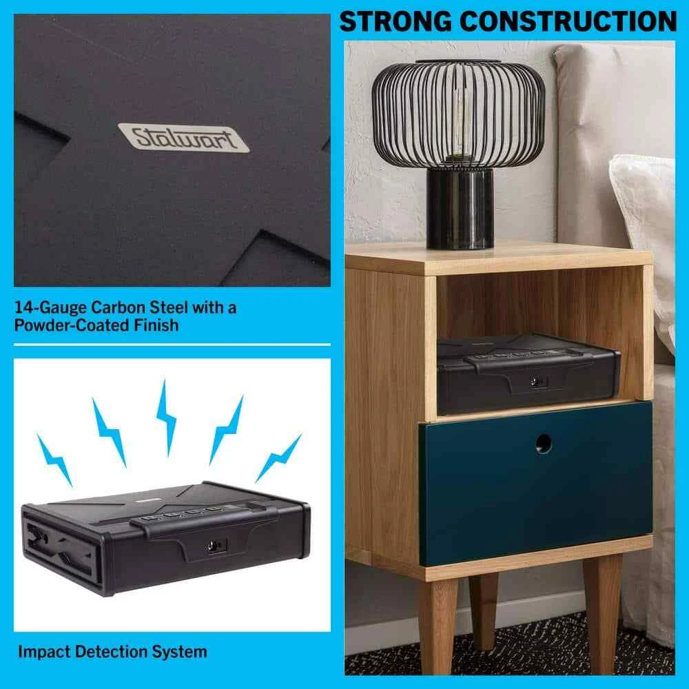 Quickly access your guns by fingerprint, keypad, or key Gun safe can be mounted to your desk or nightstand Made of 14-gauge carbon steel for long-lasting durability Securely store up to 2 handguns with the Locking Pistol Case by Stalwart. This biometric gun safe can be mounted to your desk or nightstand for easy access using the fingerprint sensor, keypad, or backup override key. Constructed of 14-Gauge carbon steel with a powder-coated finish, this rock-solid handgun safe ensures that only authorized individuals can access your weapons. Stalwart, for gun safes for pistols that are SMART, STRONG, AND SECURE. This Stalwart handgun safe can be mounted to your desk or nightstand so your firearms can be quickly accessed whenever you need it, and securely loc... Tianxiawuzeial Biometric Desk Mount Gun Safe Heavy-Gauge Steel Lock Box,Quick Access w/Fingerpr Quickly access your guns by fingerprint, keypad, or key Gun safe can be mounted to your desk or nightstand Made of 14-gauge carbon steel for long-lasting durability Securely store up to 2 handguns with the Locking Pistol Case by Stalwart. This biometric gun safe can be mounted to your desk or nightstand for easy access using the fingerprint sensor, keypad, or backup override key. Constructed of 14-Gauge carbon steel with a powder-coated finish, this rock-solid handgun safe ensures that only authorized individuals can access your weapons. Stalwart, for gun safes for pistols that are SMART, STRONG, AND SECURE. This Stalwart handgun safe can be mounted to your desk or nightstand so your firearms can be quickly accessed whenever you need it, and securely locked for safe storage when you don't This safe box offers 3 ways to gain quick access to your handguns: fingerprint sensor, keypad, or key (2 backup override keys are included for secure access) This gun safe is constructed from powder-coated 14-Gauge carbon steel with anti-pry bars, bolstered interior hinges, anti-impact latches, and an impact detection system that sounds an alarm if it is bumped Prevent children and intruders from accessing your firearms while still keeping them easily accessible for yourself with this rugged locking gun case Materials: heavy-duty 14-Gauge carbon steel Dimensions: (L) 10.35 in. x (W) 3.5 in. x (H) 13.54 in. Color:Black|Color:Black|Features:Quick Access|Features:Quick Access|Fire Test Duration:Non-Fireproof|Fire Test Duration:Non-Fireproof|Fire Test Temperature (F):Non-Fireproof|Fire Test Temperature (F):Non-Fireproof|Gun Capacity:2|Gun Capacity:2|Includes:Backup Key|Includes:Backup Key|Installation Type:Drawer|Installation Type:Drawer|Lock Type:Biometric|Lock Type:Biometric|Material:Steel|Material:Steel|Product Weight (lb.):12 lb|Product Weight (lb.):12 lb|Protection Against:No Additional Protection|Protection Against:No Additional Protection|Returnable:90-Day|Returnable:90-Day|Safe Capacity (cu. ft.):0.2838|Safe Capacity (cu. ft.):0.2838|Safe Size:Small|Safe Size:Small|Manufacturer Warranty:This product contains chemicals known to the State of California to cause birth defects, cancer, and other reproductive harm. https://www.p65warnings.ca.gov|Manufacturer Warranty:This product contains chemicals known to the State of California to cause birth defects, cancer, and other reproductive harm. https://www.p65warnings.ca.gov|Exterior depth (in.):10.35|Exterior depth (in.):10.35|Exterior height (in.):13.54|Exterior height (in.):13.54|Exterior width (in.):3.5|Exterior width (in.):3.5|Interior Depth (in.):10.35|Interior Depth (in.):10.35|Interior Height (in.):13.54|Interior Height (in.):13.54|Interior Width (in.):3.5|Interior Width (in.):3.5 Item Specifics UPC 196593867738 MPN 65-SAFB-2011 Type Handgun Safes Brand Stalwart Payment If you do not have a PayPal account, to get started and buy your first item with us is very easy. Simply click on the 'Buy It Now' button and follow the eBay checkout steps. Select PayPal as the payment method you then will be given the chance to enter your card details in to PayPal's secure checkout in order to pay for your order. Shipping 1. Your purchase is shipped directly to you as soon as we have received your cleared payment. 2. Normally all of parcels would be shipped within 3days(From Monday to Saturday). 3. We will send information on eBay or email if the parcel was delayed due to our holiday. 4. We provide three kinds of shipping for choice. Shipping way depend on delivery address. Returns If an unit is received defective, of course we take it back or replace it. If the unit is received as expected, we must charge for our expenses if you want to send it back. We have to charge for the work of handling, retesting and restocking. Contact Us Dear buyer, Thank you for visiting my store! Our warehouses are located in many regions around the United States. According to the customer's delivery address. Use USPS/UPS/DHL logistics transportation service. Prioritize the best quality logistics solutions to transport packages. Ensure package delivery time, At the same time. Have any after-sales problems, Feel free to contact us. At your service Tianxiawuzeial DESCRIPTION PAYMENT SHIPPING RETURN POLICY CONTACT US Biometric Desk Mount Gun Safe Heavy-Gauge Steel Lock Box,Quick Access w/Fingerpr Quickly access your guns by fingerprint, keypad, or key Gun safe can be mounted to your desk or nightstand Made of 14-gauge carbon steel for long-lasting durability Securely store up to 2 handguns with the Locking Pistol Case by Stalwart. This biometric gun safe can be mounted to your desk or nightstand for easy access using the fingerprint sensor, keypad, or backup override key. Constructed of 14-Gauge carbon steel with a powder-coated finish, this rock-solid handgun safe ensures that only authorized individuals can access your weapons. Stalwart, for gun safes for pistols that are SMART, STRONG, AND SECURE. This Stalwart handgun safe can be mounted to your desk or nightstand so your firearms can be quickly accessed whenever you need it, and securely 