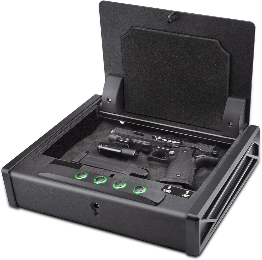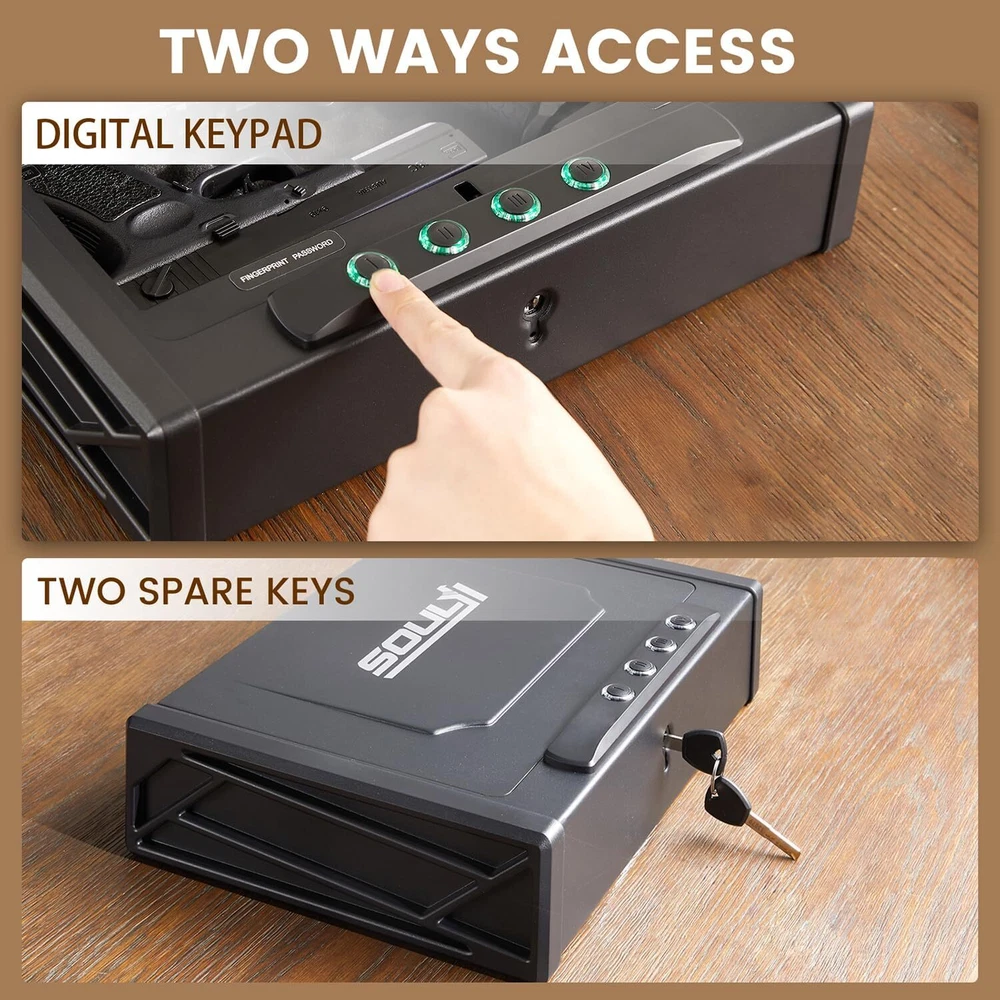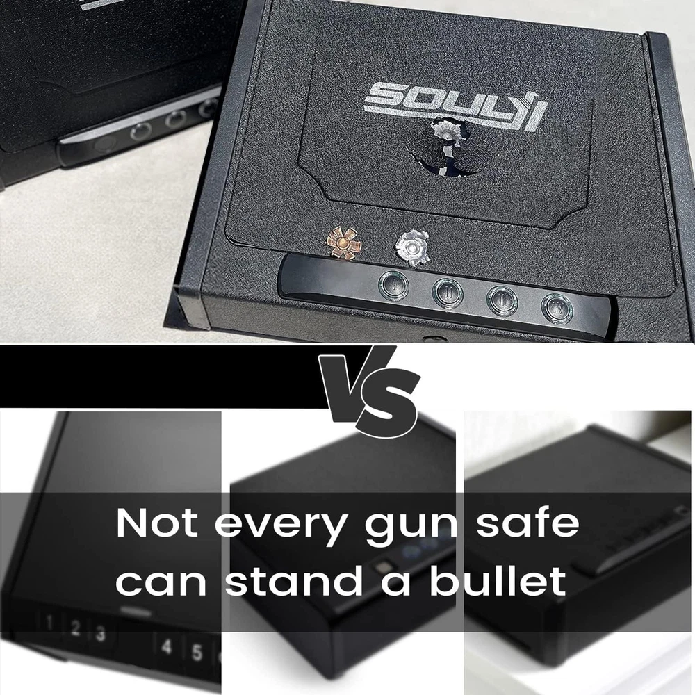 Teriyaki & Chicken 20 Serving, Shelf-Stable Survival Emergency Meal Camping Food 35.17 USD 37.42 USD Free shipping 6% off 10 Ton Hydraulic Wire Battery Cable Lug Terminal Crimper Crimping Tool W/ 9 Dies 44.62 USD 47.47 USD Free shipping 6% off 5 Qt Glass Mixing Bowl W/ Measurement Markings KitchenAid Tilt-Head Stand Mixers 41.96 USD 44.64 USD Free shipping 6% off 1/4HP Utility Pump1900GPH Submersible Sump Pump Drain Clean Water Basement Flood 46.1 USD 49.04 USD Free shipping 6% off Portable Hydraulic Crimper Tool for 1/8" 3/16" Stainless Steel Cable Railing Kit 50.06 USD 53.26 USD Free shipping 6% off Wall Mount Folding Tire Storage Rack Adjustable 32-48 in Wide 300 lb Heavy duty 45.06 USD 47.94 USD Free shipping 6% off Mobile TV Stand Rolling TV Cart for 32-75'' LCD LED Screen Adjustable W/ Shelves 112.45 USD 119.63 USD Free shipping 6% off Complete Car Care Kit 4 Piece Set Clean Shine Protect Interior Exterior New 18.67 USD 19.86 USD Free shipping 6% off Range Stand Storage Collapsible Adjustable Portable Vise Hunting Rifle & Shotgun 51.2 USD 54.47 USD Free shipping 6% off 20x20x1 Air Filter Washable & Reusable Electrostatic Air Filter Furnace Filter 40.93 USD 43.54 USD Free shipping 6% off 1" Cordless Vinyl Room Darkening Mini Blinds 23"W x 48"L Durable Window Blind 28.91 USD 30.75 USD Free shipping 6% off Portable Cook & Carry Griddle Caddy Accessories for Griddle Grill Tools Camp US 72.4 USD 77.02 USD Free shipping 6% off SOULYI Biometric or Digital Gun Safe for 3 Pistols Safe DOJ Certified with 3 Quick Access Handgun Safe,Digital Keypad Frosted Black Bedside Firearm Safety Car Safe Hardened Steel Lock Box Brand SOULYI Product Dimensions 12.6"D x 8.2"W x 2.76"H Lock Type Electronic, Key Color Digital & Frosted Black Capacity 0.17 Cubic Feet Material Alloy Steel Special Feature Anti-Pry Mounting Type Freestanding, Tabletop Control Type Key Control Included Components Keys About this item DOJ Certified, Not All Safe Can Pass: Safety of users is our eternal pursuit. The gun safe meets the most rigid safety standards; All tests, picking or manipulating, forced removal inspection, tensile, shock, plug pulling, plug torque, sawing and drop, are approved by California Department of Justice; The DOJ certification tells you that it truly will protect you and your family all the time Whole Body Pry-Resistant: The lid edge slightly larger than the interior box edge, for overlapping perfectly without gap; Interior V-shaped plate of the box body bottom overlapping with lid completely prevents tool penetrating; It's impossible to pry open with hand tools and pistols; It provides secure storage for three standard handguns or one larger pistol and extra ammunition; It Keeps your guns in a reliable rapid pistol safe to prevent gun theft Unbreakable Construction: Besides the thickest solid steel material ( box 1.5 mm alloy steel, door sheet 3 mm), the rugged stamping surface enhanced toughness to fight most of violent attack or crowbar impact; The reinforcing steeling of the two sides of the handgun safe also makes the lockbox stronger; Loop the high strength steel security cable around a solid object to fix it; It is great safety assistant during your car travel Two Quick Quiet Accesses: Unlock the gun safe by registered code within 0.1 seconds; You can set a 3~8 digits password with an electronic keyboard; Separate switches for light OFF and sound OFF help to conceal in the dark to ensure your safety in danger and emergency, and to save power; two spare keys allow you to unlock the vehicle pistol safe traditionally Hide Guns Anywhere: The compact size makes the gun safe for pistol easy to place in a regular office, bedroom, basement, closet or under car seats, bedside, drawers, in spare tire wells, and other locations; It keeps your guns away from kids, easy to carry to protect your family and yourself anytime anywhere You may also like Pistol Gun Safe Box W/ Fingerprint Digital Key & Voice Jewelry Cash Locker NEW 71.74 USD 76.32 USD Free shipping 6% off Gun Pistol Safe W/ Fingerprint Keypad & APP Lock Handgun Storage Nightstand NEW 71.75 USD 76.33 USD Free shipping 6% off