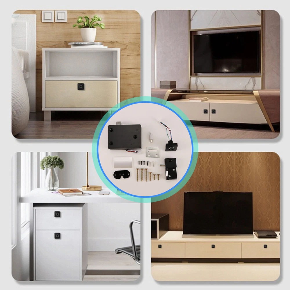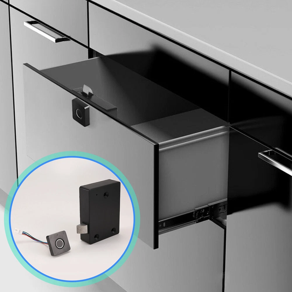 Biometric Fingerprint Lock Black Keyless Cabinet Lock Drawer7744 The Biometric Fingerprint Lock is a state-of-the-art security solution for cabinets, drawers, and doors. It features keyless entry and can be controlled remotely via a user-friendly mobile app. The sleek black design adds a modern touch to any furniture while providing advanced security features to keep your belongings safe. , high-quality. Maximum protection of your privacy and security. Identification:360° semiconductor fingerprint recognition Rejection rate:Less than 1% ESD:+/-12kV air,+/-8kV contact Fake recognition rate:Less than 0.002% Recognition time:Less than 300mS Service life: cycles Working environment:Temperature range of -20℃ to 70℃; Humidity 40% RH-85% RH (no frost) Storage environment:Temperature range of -40℃ to 85℃; Humidity Less than 85% RH (no frost) Battery:3.7V 230mA Colour:Black Material:ABS Package Contents: 1 * Lock body 1 * Fingerprint panel 1 * Lock buckle