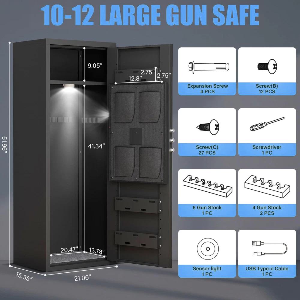 Biometric Fingerprint Gun Safe, 10-12Unassembled Gun Safe for Rifles and Pistols