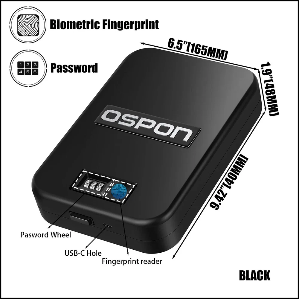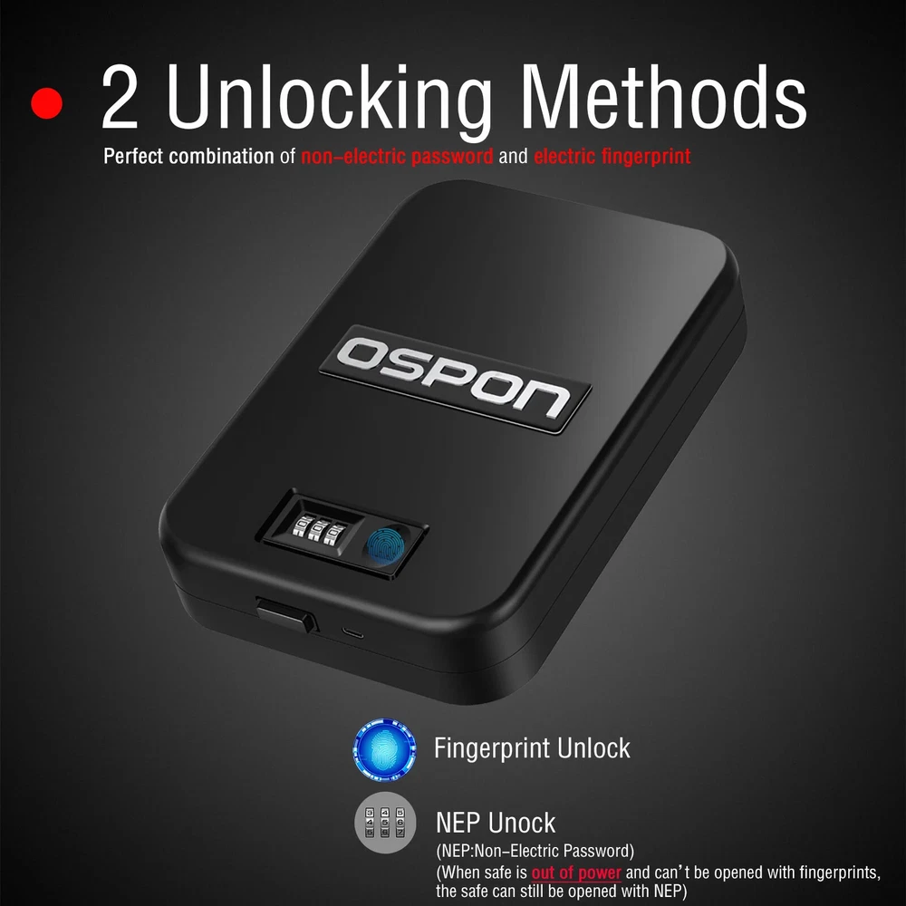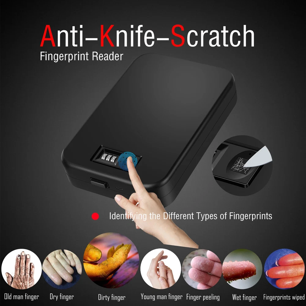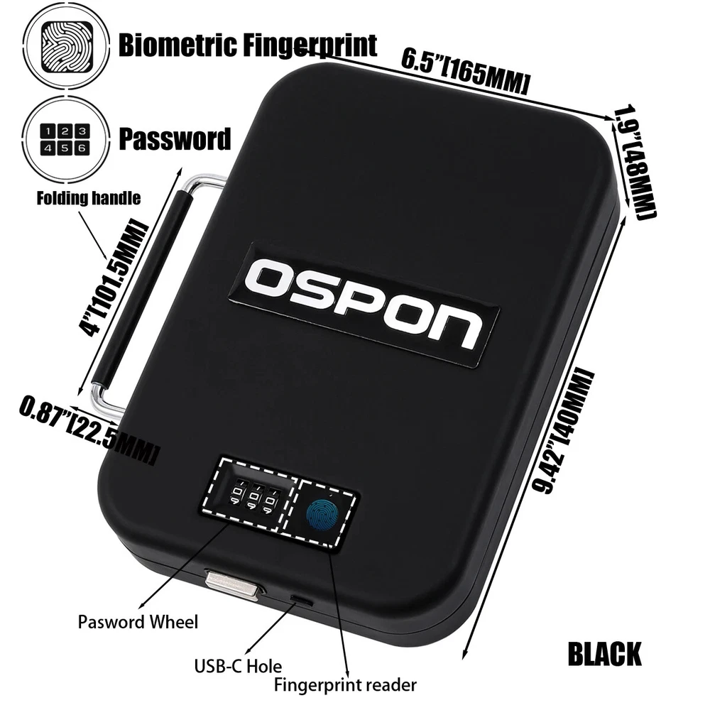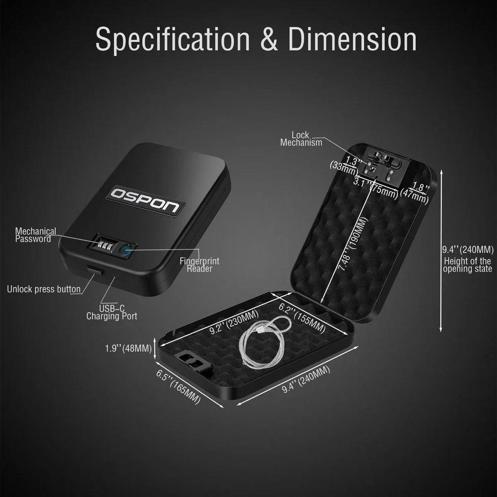 WATCH THE VIDEO OF INSTRUCTION BY SCANNING QR CODE SAFES WITH FOLDING HANDLE SHOOTING ACCESSORIES CE CERTIFICATE Feature ● Perfect combination of mechanical code lock and electronic fingerprint lock When the fingerprint is broken or the battery was run out of power, it can still be opened with the mechanical code lock. This is the only safe you have seen that can be completely used at ease ● Fingerprint module resolution up to 508DPI ● Super fingerprint reader,scratches of knife doesn’t affect identification ● Cold rolled steel from fortuneglobal 500 companies Baosteel to ensure quality ● The fingerprint chip will unlock safe within 0.5 seconds ● 10*10mm large area fingerprint reader ● As many as 10 fingerprint users ● The safe can work for 1 year with one charge (it is recommended to charge once every 3 months to maintain battery activity) ● Smaller than A4 Paper,can be placed in a drawer, under the car seat, in a backpack,handbag or luggage ● When the voltage is lower than 3.5V, the system will flash the light to prompt charging ● Strong anti-cutting steel cable with a diameter of 4mm(5/32'' dia & 4.1 ft longth ), with a tensile strength as high as 1500kg (3300Lb) ● The thickness of the steel is 1.2mm (18 Gauge) ● The circuit board still works normally at - 30℃(-22°F) to 70 ℃(158°F) ● Ultra-low power design, power consumption is only 60 μA per day ● Type-C charging port, compatible with Android smartphones ● Sponges on top and bottom to keep the gun from scratching ● High-density sponge,20kg/M3(1.2 Lb/ft3) ● TSA-APPROVED,Put firearm in safe,put it in checked luggage,legally carry the firearm on plane About FAQ 2.What do you declare to customs? We normally declare the lower price on the invoice/bill to help avoid custom duty, but if you have any request about declaration, please leave us a message in the order before delivery. 3.What if I'm dissatisfied with the product? We guarantee you will be 100% satisfied with the quality of your product. If you're unhappy with it, please contact our Customer Service who will be glad to help. When contacting Customer Service Team, please give your order number, a short description and a photo of the problem, so we can prevent these problems in the future. 4.May I get repair warranty? We have 6 months warranty in China, but in some countries aliexpress offers One-year replacement warranty in your country. 6.For Customers satisfaction: Any problem,before rush into leaving bad feedback,please feel free to contact with us,we will offer the most professional and 100% satisfactory solution. Sometimes our response may delay due to too many messages,your patient waiting will be highly appreciated. Note 1.All pictures are for reference only, pls subject to real product. 2.Not just DHL, airmails may also cause customs duty in some counties, such as Spain, Greece, Israel, etc. To pay taxes is the duty of every citizen. 3.Any request for order could delay of the dispatch.