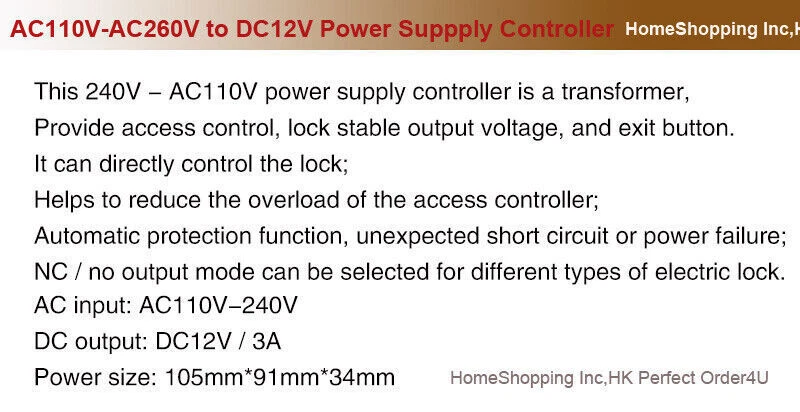 ** **** Buy with Confidence! Happy Buying ** **** Fingerprint +RFID Card+Password Door Access Control System+Drop Bolt Lock New Fingerprint RFID card Access Controller + Power Supply Controller + Electric Drop Bolt Lock + 10 RFID Keyfobs +1Remote control + Wired Doorbell + Touchless IR Door Exit Button Introduction: Have you spent a lot time in looking for an access controller system? If so, please check this access controller system, It can make your life more convenient and security. We provide free technical support for you to build your security system, we are in this industry for more than 10 years and really help you. Access control system enables you to control who has access to what areas in your home, office and/or business. This is a complete standard kit to control door access with RFID cards and/or PIN. Perfect for home, office environments, factories and more. Fingerprint and RFID card Access Control Keypad Features: Anti-dismantlement alarm, threatens alarm, unlock illegally alarm,not block alarm are available Dismantlement alarm, threatens alarm,unlock illegally alarm, not block alarm are available Sensor with quality image, accepts dry / wet fingers. Adjust image distortion, assure fingerprint matching consistency Fingerprint / Card/ Password / Fingerprint+Card / Fingerprint+ Password / Card + Password / Fingerprint+ Card + Password iidentification modes are all available. Package includes: 1 x New Fingerprint + RFID Card and Password Access Control Keypad in retail box. 1 x Power Supply Control Unit in retail box 1 x Electric Drop Bolt Lock in retail box 1 x Remote Controller 1 x Wired Doorbell 10 x RFID Keyfobs 1 x Touchless IR Door Exit Button with mounting screws 1 x English User manual 1 x Unlimited customer service. Why use access control? Access Control System is designed for areas where need for security is crucial. It protects human life, property and information and provides safe and comfortable environment by limiting unnecessary access to essential areas such as office, building, factory, R&D Center and more. The most common access control example in the business world appears when walking into your office and showing proof that you are authorized to enter. It prevents any possible danger or interference from the outside, which helps to maximize work productivity and increase your home/office security. Buy with Confidence!!! Delivery details 1. For USA customers, it usually takes 9-15 Working days. 2.For Other Countries Buyer, Package will Ship by Airmail Package with tracking number, usually takes 19-25 working days to worldwide. 3.During it is a international shipping service, it may takes delay during some reasons, but we offer warranty if you do not receive package. Terms of sales We will do our best to make you happy to buy from us. If any problems happen, please DO NOT leave us negative feedback or open case to us, it can not solve problem. Please just contact us via ebay message and we will solve any problems for you. About us We want our customers to be 100% satisfied with their order. When you receive your order, please take a moment to leave us positive feedback and 5 stars rating to us is appreciated, vital and very valuable to the continued success of our business. Contact us If you have any question, ask us freely and we will respond you with 24 hours.