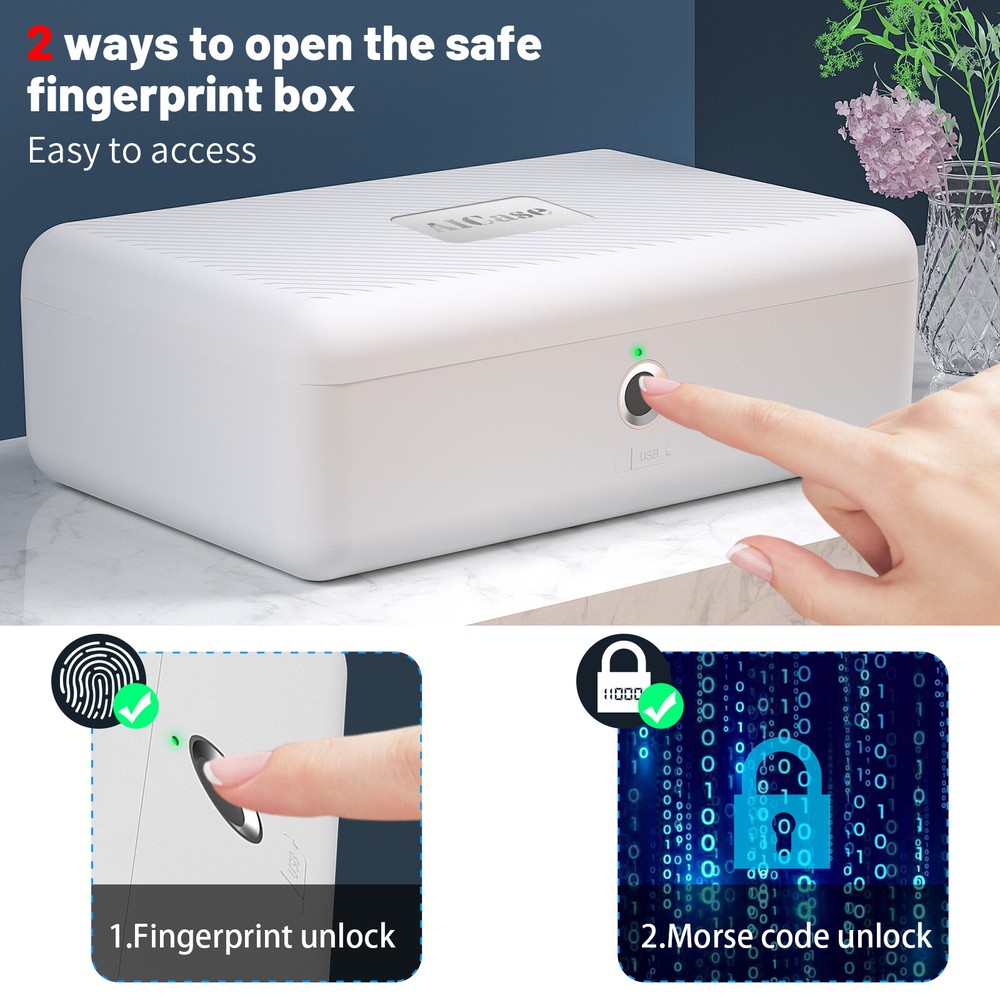 无标题文档 Biometric Fingerprint Storage Box Portable Cash Jewelry Phone Security Lock Safe Descriptions Features: One way is your fingerprint,The other one is morse code.which makes it more convenient. 【Quick Access】: The Biometric Fingerprint Box allows you to access your safe quickly and safely. The security safe box is able to be opened in two ways, which makes it more convenient. One way is your fingerprint; you can access your valuables quickly. The other one is morse code. Morse code has a total of 12 digits consisting of “0” and“ 1” and easy to set. 【fingerprint biometric technology】This Biometric Fingerprint Box uses high-quality fingerprint biometric technology, seconds fast recognition speed and record 50 sets of fingerprints. No fingerprint in factory settings,anyone can open the lock. 【2000+ TIMES UNLOCK AFTER A FULL CHARGE】 This portable Fingerprint Box built-in 280mah lithium battery, 2000+ times unlock and 180 days standby time after a full charge. When the battery power is less than 10%, the red indicator will flash when the padlock is unlocked, then simply connect to a USB power supply to charge the lock. 【Portable Size, All-time Protection】Easily transportable for traveling and small enough to store discreetly.This portable safe Box can be used in home, bedside table, in the car or during travel, provides secure storage for mini pistols, medicine, passports, cash, mobile phones, credit cards, watches, jewelry, etc.Size: 9 " x5.9 " x 3 ", 2.8 pounds. 【Interior Detail】Built-in separation and detachable shelf offers flexible storage solution.ou can have a secure separate place to load your valuables such as cash, handgun, jewelry, documents, passports, personal information, and more. Emergency USB Port, The fingerprint safe box has a built-in emergency USB port on the side of the box for connecting power bank under the circumstance of low battery state. No need to worry about running out of power! Ensure the Safety of Valuables: cash jewelry,watches, Important documents and other protective places that are carried placed in hidden places at home are very suitable for locking valuable and dangerous small and medium-sized items. Frequently Asked Questions about AICase fingerprint storage box : 1,How to successfully enter the administrator fingerprint? The first and second fingerprint is the administrator. 1.long press until the blue light flashing ,then release your finger. 2.Start collecting fingerprints from different angles until the green light turns on and"Di" with a long beep 2.Setting 2-50 fingerprint 1. long press until the blue light flashing ,then release your finger. 2. Press with the first fingerprint(the one just setting ),the green light on once and then the blue light flashing. 3.Start collecting fingerprints from different angles until the green light turns on and"Di" with a long beep 3,How to Delete fingerprints? long press until the red light on ,then release your finger,Press the administrator fingerprint ,the green light is on, the "di" beeps for a long time, all fingerprints are deleted successfully. 4,How to use Password unlock? 1,long press until the purple light on ,then release your finger and the white light will stay on. 2,It Can start to enter the 12-password pairing password.Same as setting Morse Password,short press, the green light on mean input 0 ,long-press the light turns from green to purple mean input 1 . Such as video 000000111111. After using the Morse code , the lock enters the factory setting state,can open the box by any fingerprint. Package Included: 1 X Biometric Fingerprint Storage Box 2 X DIY spacer 1 X manual hot selling $11.99 $23.99 $15.95 $11.99 $24.99 Information about Payment Method: * All payments must be prepaid. * We only accept payment via Paypal. Please kindly check if you can do the payment via PayPal before placing an order. Shipping Method: 1) Items are dispatched within 24 hours(except weekends and holidays) and shipped from US. 2) Orders from the United States will all be shipped out via USPS. The shipment usually takes 3-7 business days(Saturday and Sunday excluded), if you need the item urgently, please contact us for detail before purchase. 3) Local pick up is not available. 4) Customers in Porto Rico, Alaska and Hawaii are recommended to contact us for shipping details(shipping cost&time) before placing an order. * NO International Shipping, including Canada. Return & Warranty: 1) This product has a 30 Days warranty. 2) Our warranty does not extended to any products that are physically damaged or that are not under normal operating conditions as a result of misuse or improper installation on the buyer/user's part. 3) For all returned products, buyers MUST contact us for the returning address. 4) In all cases, buyers pay shipping fees at their own cost to return products for exchange or refund. We will be responsible for the postage of replacements. Refund will be made upon receipt of the returned item Contact Us: * We have always been trying to provide the best service and reliable products for every customer, however, accident may happen sometimes, please contact us to resolve any issue before leaving a negative feedback. * Any question please feel free to contact us though ebay message center. On Jul 3, 2024 at 21:51:04 PDT, seller added the following information:
