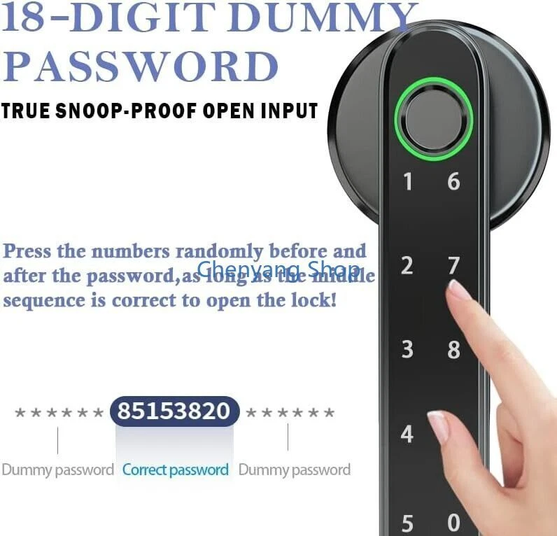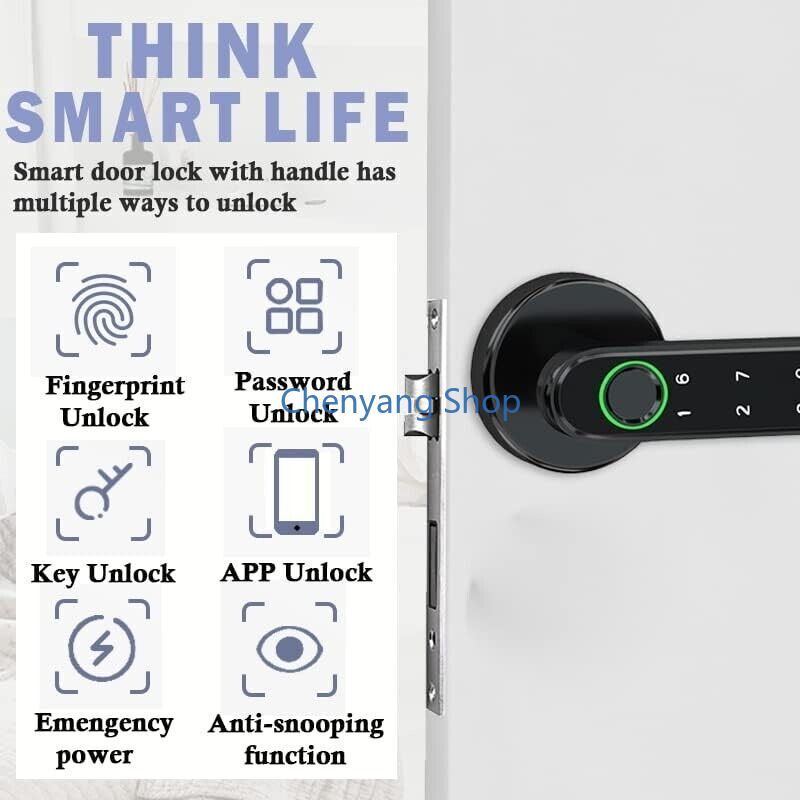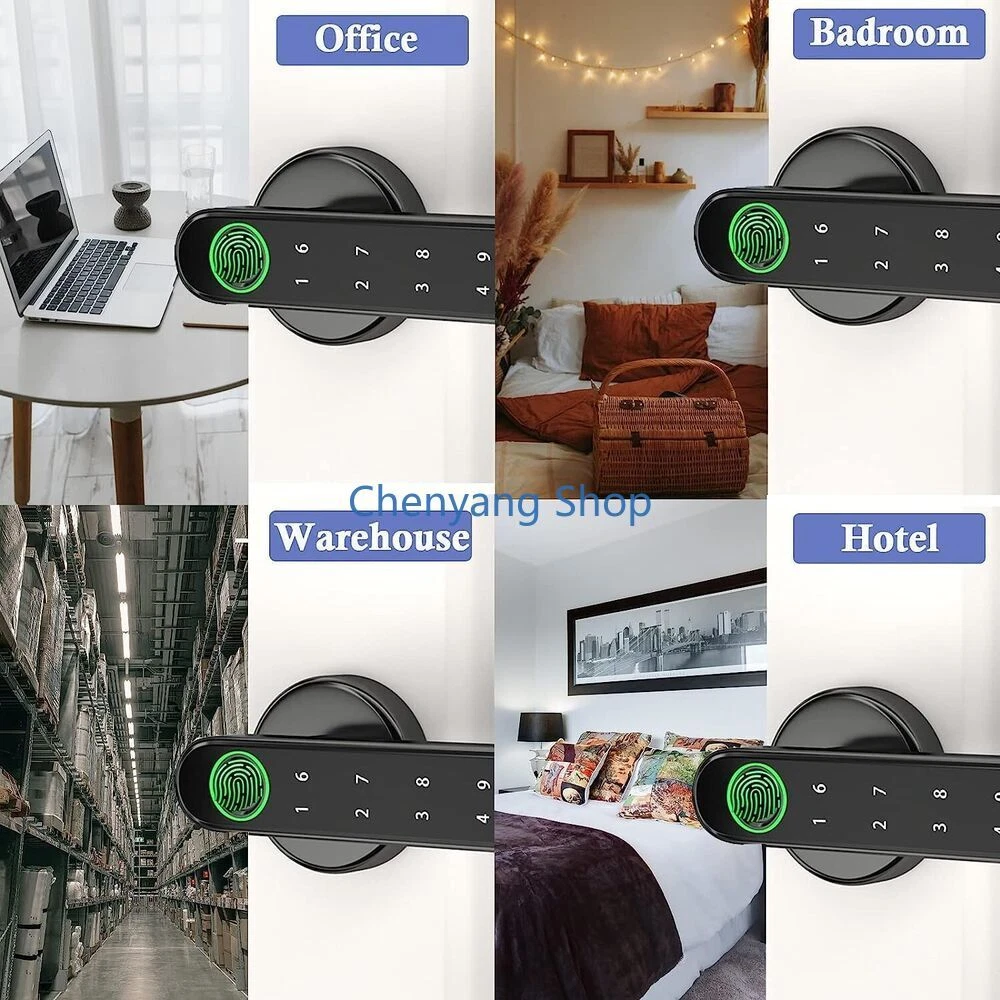 About this item: App control for all phones 4 unlocking modes Anti-snooping false password Fast always-on mode Fast always-on mode One touch to open Upgraded semiconductor sensor Easy installation USB emergency charging APPLICATION: Black Fingerprint Smart Door Lock for Home, Hotel, Office, Apartment, Bedroom, Warehouse, Office etc.
