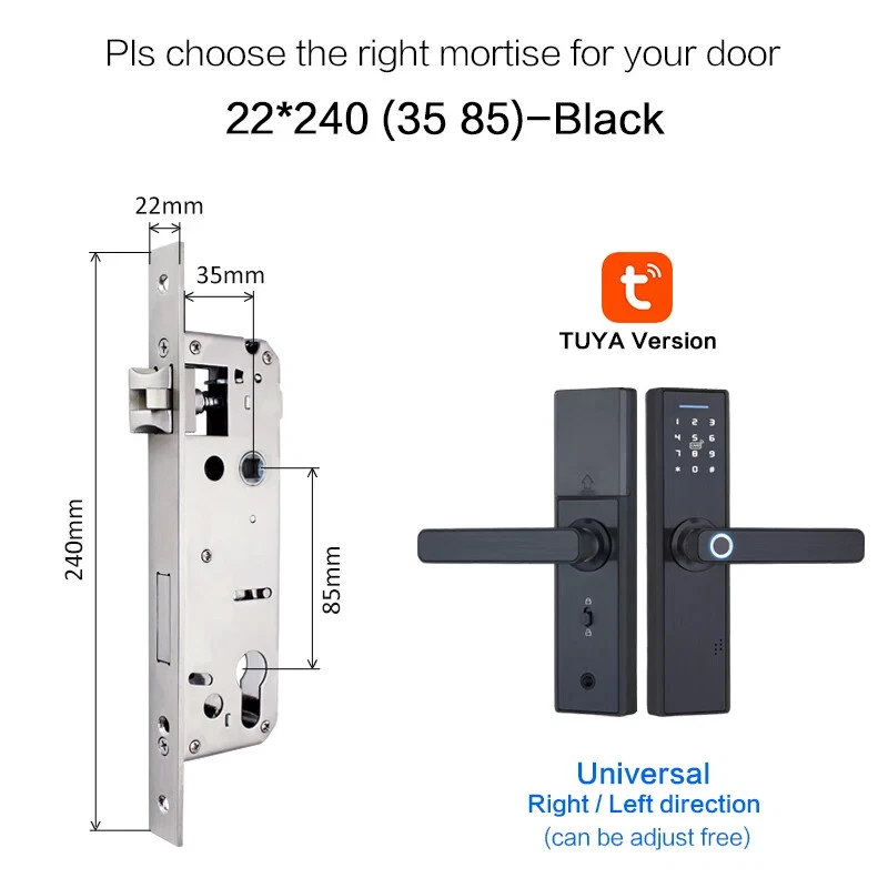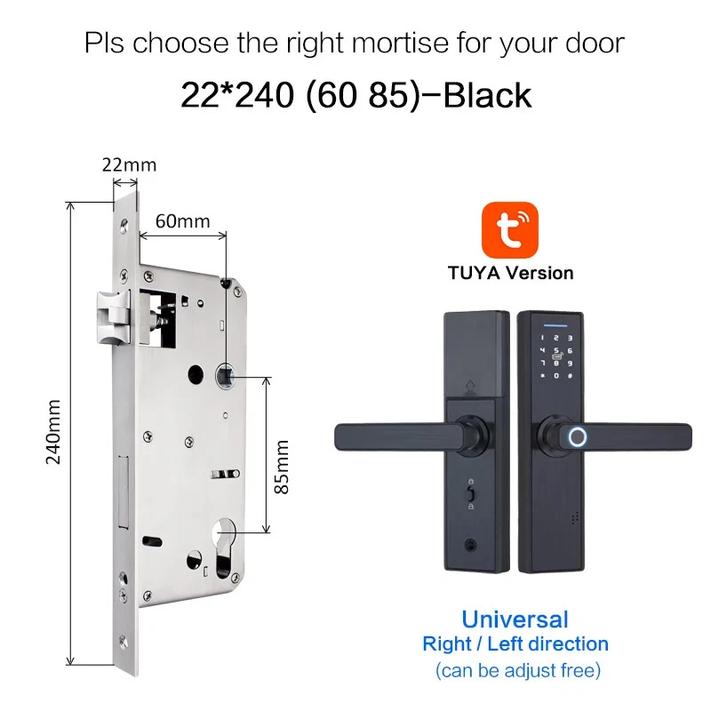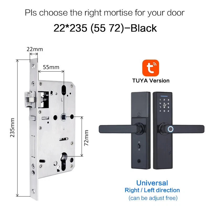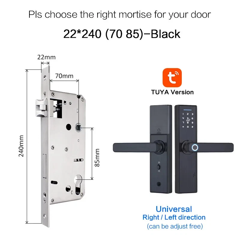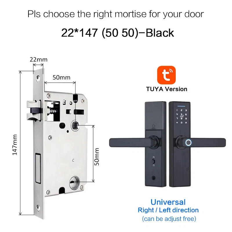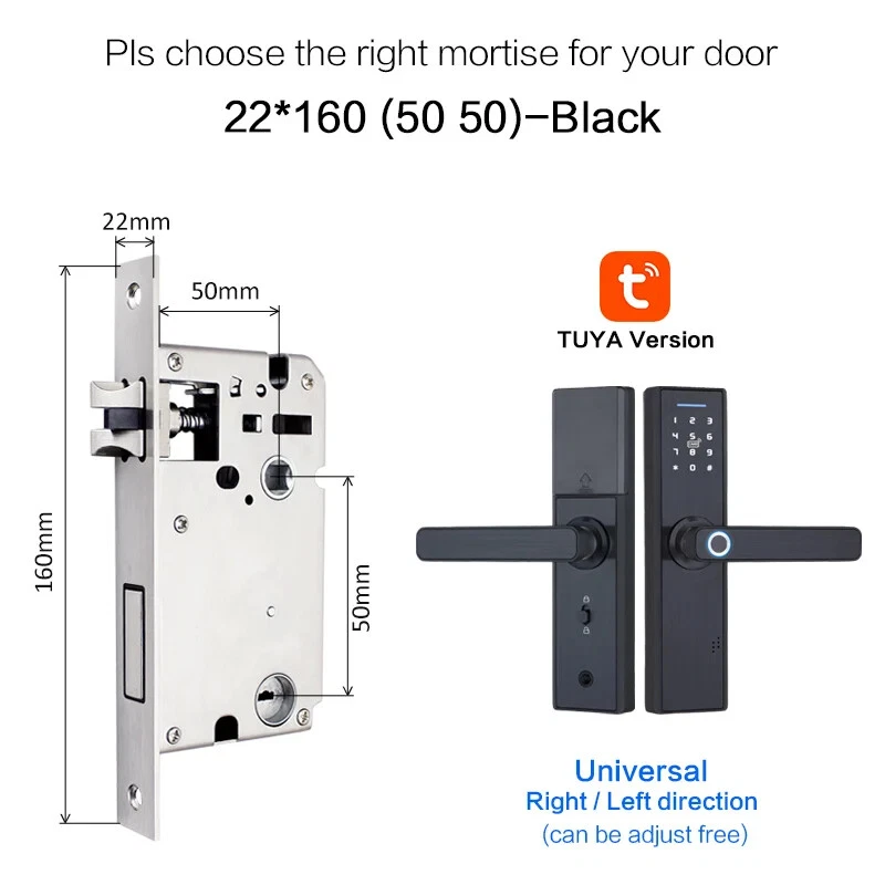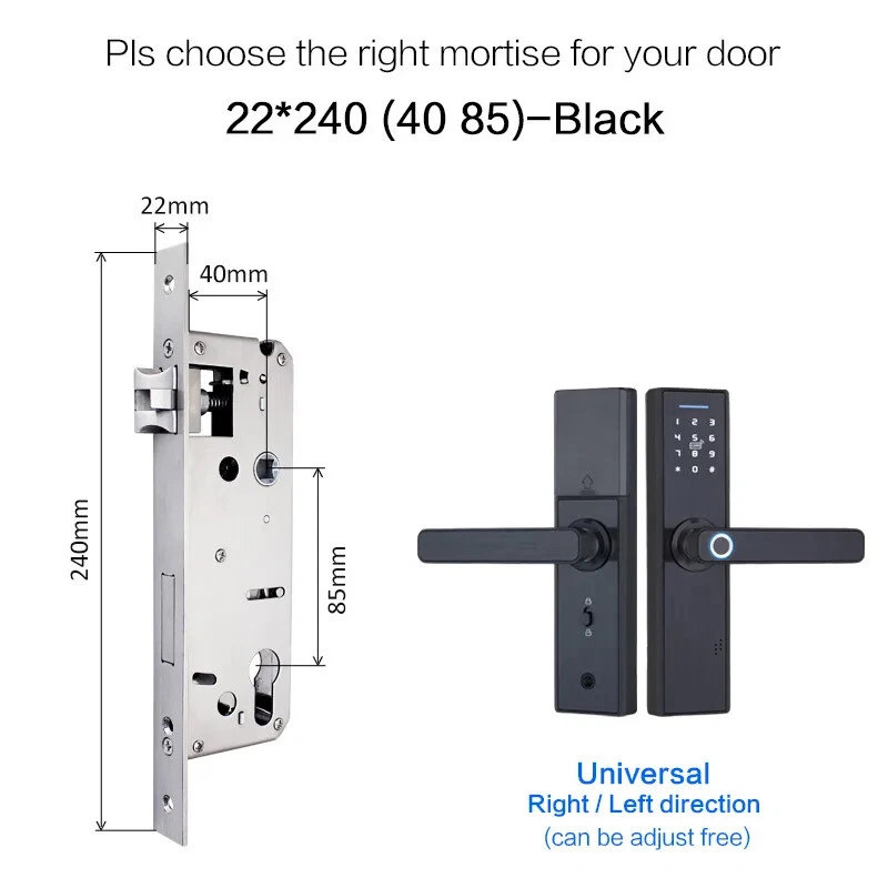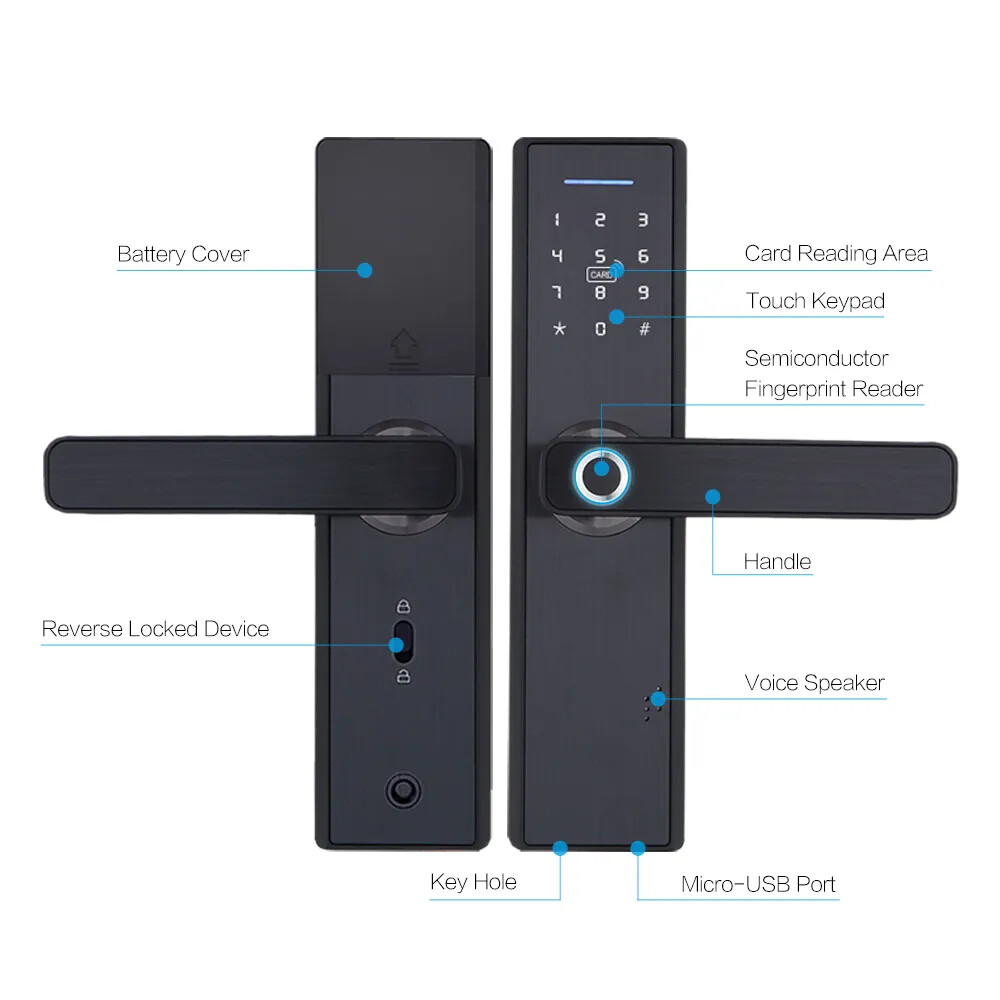 Install video Why you need a Biometric Smart Door Lock In the average home, guests, workers, and relatives are a few people that have access to visitors privileges. If you have a busy schedule, its difficult to keep up with who to expect. Even harder, is the need to be physically present to grant them leeway to do their business. A smart door lock allows you to choose who to let in your home and keeps track of how long they’re inside. All from the comfort of a smartphone app, you can keep a full record of what’s going on your house. Additionally, the app also has a feature that opens the doors to your home once it detects that your phone is within proximity. This is particularly great for those moments where you’re holding a lot of groceries, so you’re unable to reach for the keys. This level of flexibility will make you completely forget about worrying if your keys are on you. All you need is a smartphone to serve as the guard to your home. If you live with kids, the biometric smart door lock helps to make your job much easier. The steady track record of who is in or out lets you know when they are at home, if they are out, and who they went out with. Furthermore, with parental control features, your kids can use the app to open and close the doors at your request. A smart home doesn’t just make life easier, it makes it better. With AES 256 encryption, the security level of your home is beefed up. Figuring out if you’re being watched isn’t a problem too. Thanks to the virtual password function, you can input a fake password strung before and after your real password which can be typed in the middle of the gibberish. Semiconductor Fingerprint Reader Reading speed under 1 second Max Support 90 fingerprint Mechanical Key Unlock Mechanical key & External power supply interface as spare in case the batteries is dead. M1 Smart Card Reader Max support 50 cards Item default with 5pcs, if you need more, please click on the picture Multiple mortise options (please contact us if there is no matching mortise) Real time Tracking via APP Scramble Passcode Aryclic Touch Keypad Password support 4-8 digitals Support the Anti-Peeping Virtual Password enter, Input the random passcode before or after the correct password, This makes your door much secured. Privacy Deadbolt locking function After pressing back locking key, the voice says "the door is locked". Now, ordinary users cannot open it, and only administrators can do so Powered by 4 x AAA 1.5V batteries (not include) After the voltage is lower than 4.8v, the lock will automatically alarm every time when it is opened. After the alarm, the lock can be opened for 200 times. Free Style Handle Specifications How to determine whether the lock fits your door or not? (1)Measure door't thickness; (2)Measure the length of guide plate; (3)Measure the width of the guide plate. If you are not sure ,please contact and tell us the details of it directly! Package includes: Front panel x 1 Rear panel x 1 Mortise lock x 1 Smart card x 5 M1 Wristbands x 2 Mechanical Key x 2 Screw Kit x 1