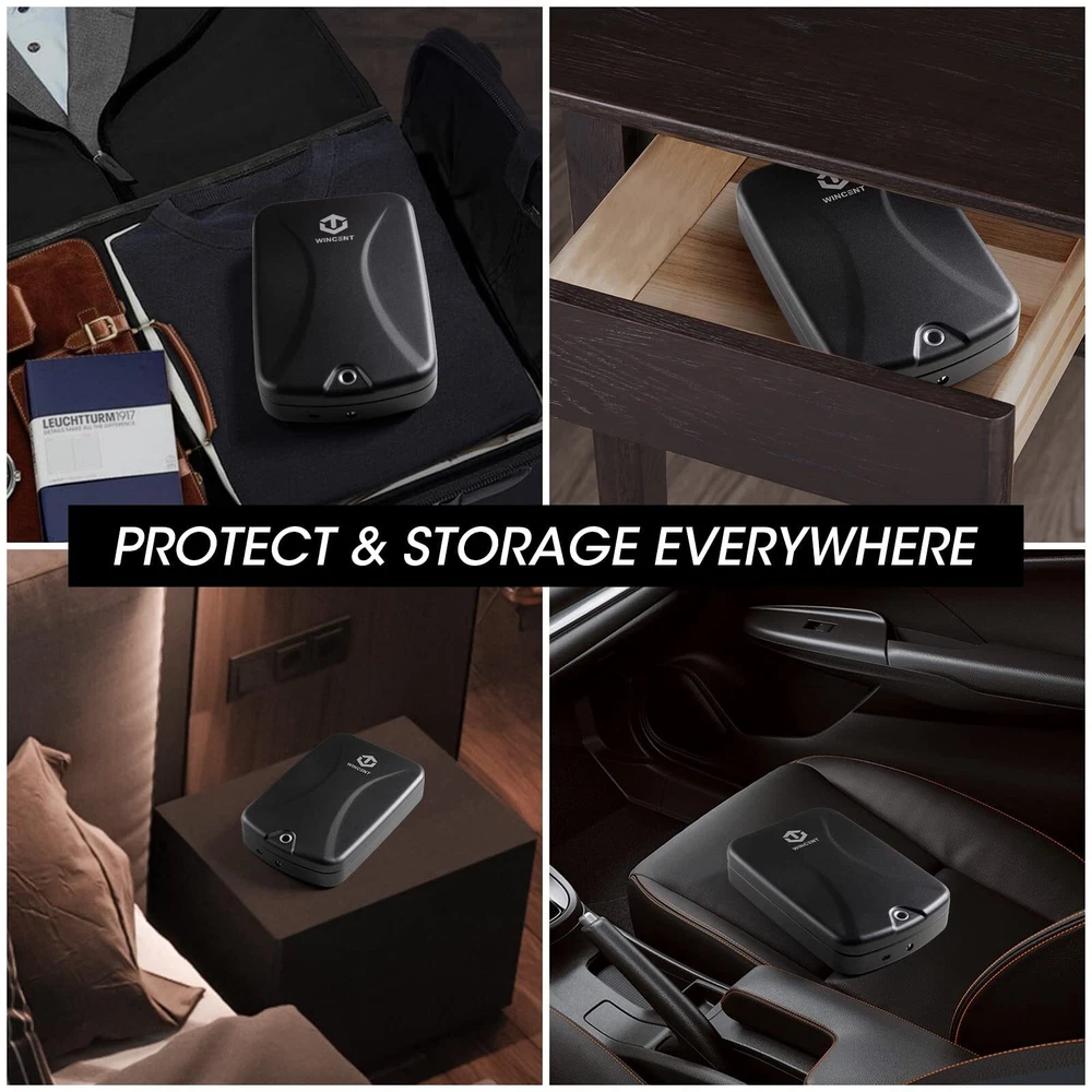 VERSATILE & QUICK ACCESS DESIGN -The gun safes for pistols equipped with Stainless steel spring and AI biometric fingerprint technology, which ensures single-handed quick access to your firearm devices in an emergency condition. With its LED light feature, the pistol lock box is very suitable for use at night. The bottom of the gun case has pre-drilled holes that can be fixed with screws to the drawer or wall to provide higher security. AI IDENTITY AUTHENTICATION - The fingerprint sensor of biometric gun safe for handgun is upgraded with the advanced AI tech and self-learning ability enabling accurate identification that's 30% higher than the ordinary fingerprint sensors of a regular handgun case in the market. EMERGENCY POWER USB PORT - This car gun safe comes with an integrated emergency USB port on the side of the keyhole for connecting power to unlock the case quickly during emergency out-of-power conditions and when the back-up key is missing. REINFORCED ANTI-PRY FEATURE & ALARM - This small gun safe for handguns is made of a precision-formed 16-gauge rugged steel enclosure. It comes with a security cable that can be secured to any fixed object at home or in a vehicle. The alarm system provides for ultimate security, and if an invalid fingerprint is entered five consecutive times, the gun lock box will be locked and the alarm for 100 seconds. PORTABLE & CAN BE BROUGHT ANYWHERE - The exterior dimension of this portable gun lock box is 11.8”*7.9”*2.3” for a handgun up to 8.5” in overall length. More than a portable gun vault, this car gun safe for handgun can be safely hidden in a drawer or in your car's glove compartment. It's perfect for keeping firearms or items like jewelry and other valuables safe in the car. The memory foam inside keeps all items protected from scratches.