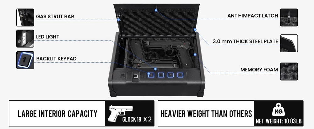 Contact Us Add to Favorite Welcome to FAST FRIDAY STORE Contact Us Fast Shipping Hassle Free Return eBay Money Back Guarantee Authenticity Guarantee Biometric Gun Safe Pistols Handgun Storage Box w Fingerprint/Code/Key Protection Features 【UNBREAKABLE CONSTRUCTION】: The pistol safe is made of solid steel material with a 1.5mm thick body and a 3mm thick door panel, making any forced break-in impossible. Unlike plastic locking hooks, this handgun safe uses all-steel locking hooks that can resist knife penetration, tool cutting, and prying bar impact. In addition to the all-steel body, the safe also features an anti-slip design handle for both safety and practicality. 【DESIGN PATENT】: this handgun safe hired a professional American designer to investigate the preferences of American gun users. Combining solid steel plates, the final design resembles a belt that symbolizes strength, which is protected by a US design patent. We hope our design can strengthen your safety and truly protect you and your family at all times. 【LARGER CAPACITY】: The pistol safe has a larger and deeper capacity than similar gun safe, accommodating not only two standard-sized handguns such as Glock 19 and Sig Sauer, but also larger handguns such as Desert Eagle. It is also suitable for storing other valuables such as jewelry, documents, and cash. The interior is spacious enough to accommodate various items. 【INSTANT ACCESS AND COMPLETE PROTECTION】: In an emergency, every second counts. The gun safe uses advanced semiconductor fingerprint technology that can identify authorized users within 0.1 seconds, enabling you to quickly respond to emergencies and access your firearms. Equipped with anti-theft and anti-tampering fingerprint systems, unauthorized access is prevented to ensure your handgun is always secure. 【SILENT OPERATION】: handgun safe features a built-in LED light that provides clear visibility even in low light conditions. Additionally, you can mute the keypad and fingerprint scanner for silent operation, ensuring you can access your pistol without alerting anyone nearby. 【MULTIPLE ACCESS OPTIONS】: This pistol safe offers three ways to access your firearms: an upgraded fingerprint recognition gun safe that can unlock in 0.1 seconds with a capacity of 20 fingerprints, allowing for sharing among family members. You can also set a 4-6 digit password using the electronic keypad. Additionally, an emergency key can be used for daily access, providing multiple instant access options. Item Description As long as you are satisfied with your purchase from our store, please leave us positive feedback. Your feedback is very important to our store and we greatly appreciate it! Thank you! ------------------------------------------------------------------------------------------------------------------------------------------------- If there are any problems with your purchase from our store, PLEASE DO NOT leave negative or neutral feedback or open a case on eBay. Please contact us first and give us the opportunity to resolve it for you as we strive for great customer satisfaction. About us Fast Friday Store Customer service is our top priority! Please be sure to read the description thoroughly to make sure that this is the item you want before making a purchasing decision. If you have any questions about this item, please contact us via eBay messages before placing your order. We make every effort possible to accurately describe and depict the items. Please be aware that slight variations in color may be due to differences in lighting and computer monitor resolutions. All items are in stock at the time of listing; however, in the unlikely and unforeseen event that we are unable to fulfill your order through any of our networked warehouses, we will notify you as quickly as possible and offer you a 100% refund on your purchase. Thank you for shopping with us. We appreciate your business! Payment PayPal is our preferred method of payment. If you do not have a PayPal account, all major credit cards are gladly accepted through PayPal as the payment processor. PayPal offers great buyer and seller protection. Your order will be processed pending receipt of cleared payment through PayPal. Sales tax may be charged depending on your location. Shipping We provide fast, free shipping. SHIPPING TIME: 1-10 usiness day handling time, 3 business days on the way. Please allow 3-13 days to delivery!of receiving cleared payment. We ship to the lower 48 contiguous United States only. We do not ship to P.O. Boxes or APOs. For select items, we ship internationally through eBay?s Global Shipping Program. We do ship most of our smaller items internationally using eBays Global Shipping Program. If ordering electrical items outside of the U.S., please note that they will come equipped with a standard U.S. voltage plugs. You will need a suitable adapter to use the item in your country. Certain restrictions apply. Standard or Economy Shipping is ALWAYS FREE! You will be notified via eBay messages as soon as your items ship. Special Notice for Freight Items: If an item ships via Freight (Truck) Delivery, a valid phone number will be required so that we can contact you to schedule delivery. The item may be delivered with curbside delivery. An adult signature will be required. Please be sure to have available help on hand to assist you with moving the item to the desired location in or outside of your home. Freight items must be inspected upon delivery. In the unlikely event that damaged is observed, you MUST refuse delivery and note the damage on the shipping receipt and send it back via the Freight carrier. Returns will not be accepted on Freight items after they have been delivered, inspected, and the driver has left the premises. Returns We offer a 30 day return/exchange policy for most of our products. You can request a refund if you are dissatisfied for any reason with your product. (Restocking Fee May Apply). Only factory