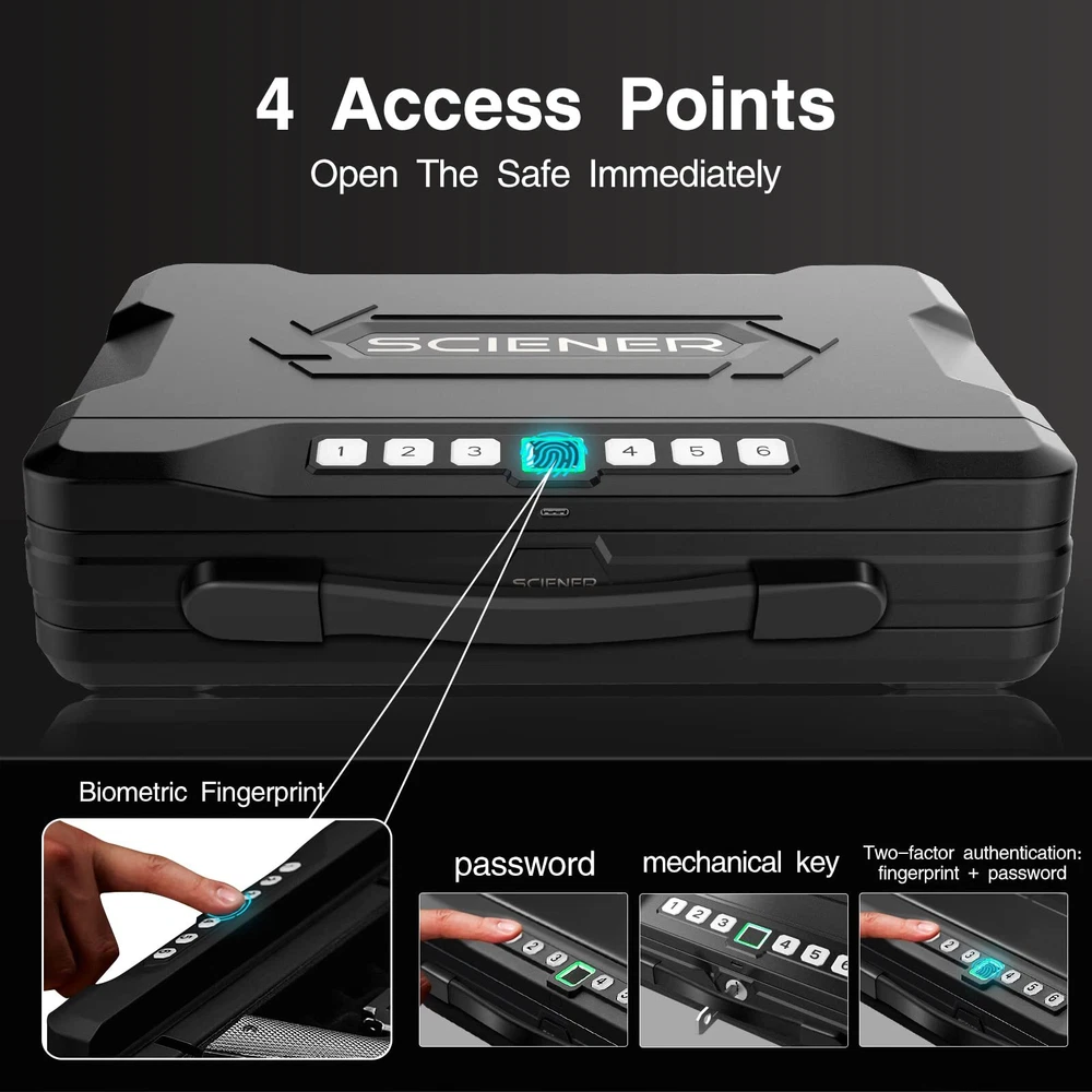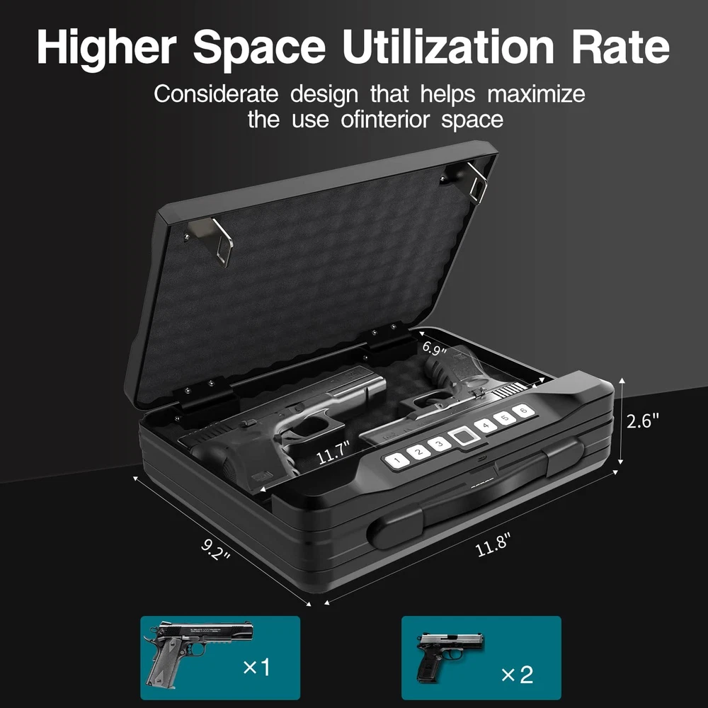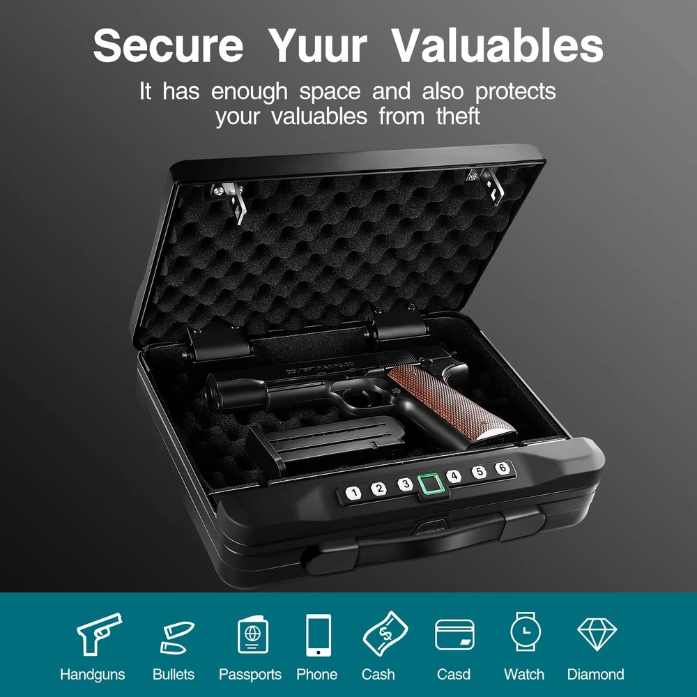 Biometric Gun Safe for Handgun with Handle, Small Hidden Gun Safe Box for Car Bedside Nightstand, Under Bed Pistol Safe with Fingerprint Lock, Password, Key MORE BENEFITS Fingerprint Identification, Fast and Quiet Access: This biometric safety accessory is equipped with a high-precision fingerprint identification chip that instantly recognizes fingerprints. Upgraded Safe The safe says goodbye to unsightly hydraulic struts that take up space. Equipped with a professional hinge and LED light, it can quickly bounce up to 80°, quiet, fast, and convenient for quick access. High Capacity & Super Rugged: This safe Lock Box provides secure storage for two standard one or one larger one and extra ammunition. The safe is constructed with high quality cold rolled steel sheet, which is tough enough to withstand small caliber rounds. The pry resistant door , high-strength locking mechanism, and high-grade cut-resistant steel cord (included with the product) ensure the strength of the Firearm Case Box and the safety of the pistol. Portable & Hidden Design: For added convenience, this safe case is small, light and sturdy. It can be used whether you are at home or on the go. Its small size makes it easy to hide under car seats, in the spare tire well, between mattresses, on nightstands, in drawers, by the bedside, and elsewhere. 4 ways to open: This safe supports fingerprint recognition, password opening, key opening, fingerprint + password double verification. The inner wall of the safe box is covered with sponge, so that you don't have to worry about the safety of your items when you keep pistols, valuable jewelry, and important documents. Type-C charging, 3 years long battery life on a single charge, this is a perfect TSA-Approved gun safe box! Buy With Confidence: We are a company that specializes in the design and manufacture of safe Box. After comprehensively comparing a variety of different safes, we have made improvements in more than ten places such as materials, link hinges, safe box lock cylinders, fingerprint chips, and metal paint surfaces. Our products are better than the pictures show! Please rest assured to buy our safe! If you have any questions or difficulties, please contact us, we'll be glad to help you! SHIPPING We work diligently to ensure your package arrives as quickly as possible. Please understand that factors such as weather, high postal traffic, and carrier performance are beyond our control. We offer free shipping to the lower 48 states and most items ship within 3 business days of payment M-F excluding federal holidays, often sooner. Unfortunately, we cannot ship to P.O. Boxes—please provide a physical address for delivery. International Shipping Items shipped internationally may be subject to customs processing, depending on the item’s customs value. As the buyer, please be aware of potential: Delays due to customs inspections Import duties and taxes required by your country which are paid by you the buyer, not the seller Brokerage fees due at the point of delivery For more information, please contact your country’s customs office, or visit eBay’s page on international trade. PAYMENT All payments are handled through eBay managed payments. if you have a question related to payments accepted, you must reach out directly to eBay for further assistance. If you are not 100% satisfied with your purchase, you can return the product and get a full refund. Returns are accepted up to 30 days from the date of delivery. Any product you return must be in the same condition you received it and in the original packaging. Perishable Foods Please note all perishable foods are always packaged in a new sturdy corrugated box and are delivered to our customers before the expiration date.