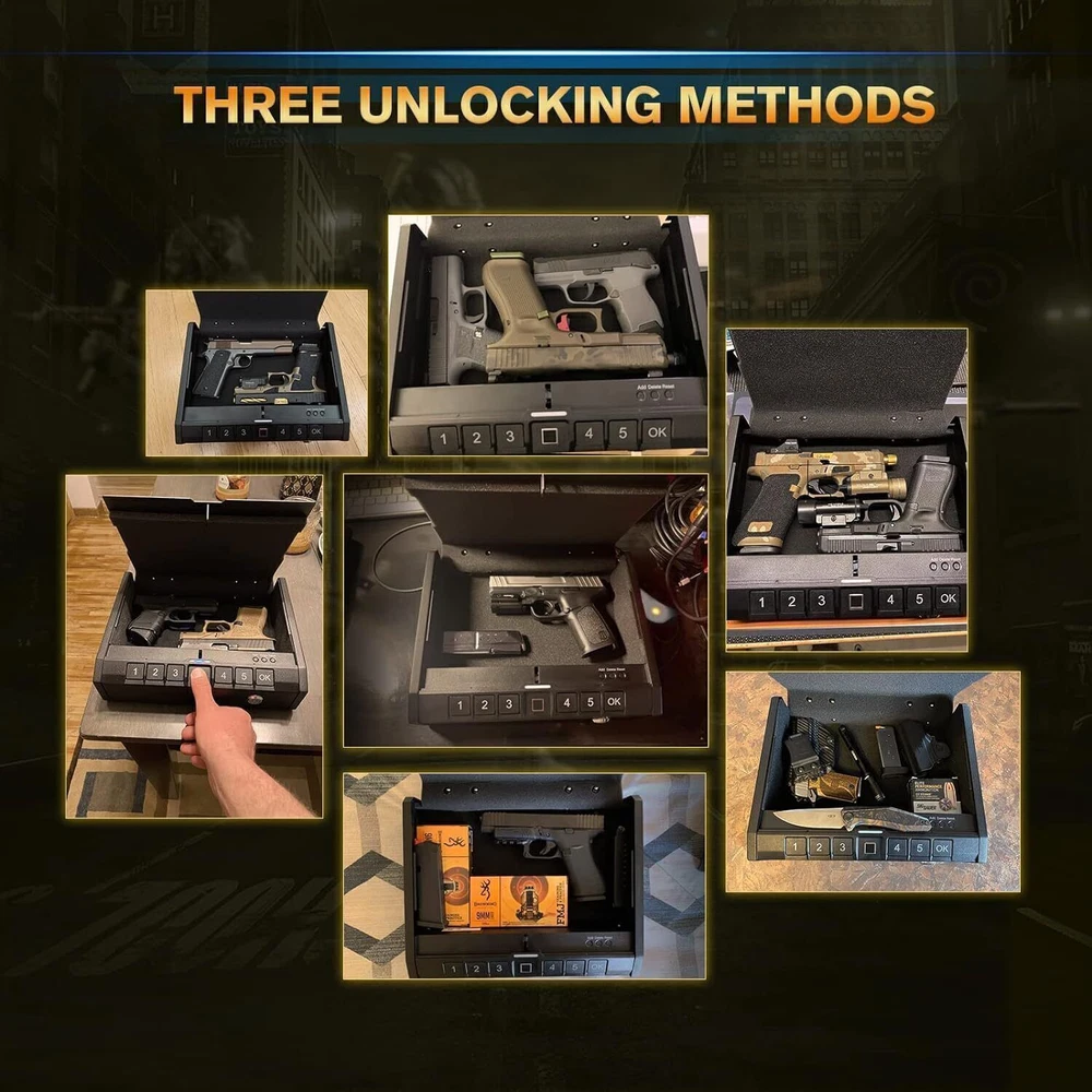 You may also like Gun Pistol Safe W/ Fingerprint Keypad & APP Lock Handgun Storage Nightstand NEW 76.43 USD 129.99 USD Free shipping 41% off Product Dimensions 3.07"D x 9.17"W x 11.49"H Lock Type Electronic Combination Lock Color Black Material Alloy Steel Special Feature Biometric Fingerprint Mounting Type Wall Mount Control Type Key Control Item Weight 2 Kilograms Alarm anti-theft About this item Fingerprint Gun Safe: Quick-access gun safe is absolutely important for a family. No matter to protect your handguns from your children or just to keep your items unaccessible while unsupervised. It's responsible to store them securely in this handgun safe and right where you need them. Biometrics keeps your contents secure with immediate accessibility. ONNAIS gun safe box helps you access the handgun safe quickly when you need it most and bring you more time when in danger Advanced Biometric Technology: ONNAIS gun safes for pistols are equipped with biometric fingerprint technology which is a proven method that is accurate and more secure than a traditional keypad lock and ensures single-handed access to your firearm device. A high-resolution fingerprint scanner allows access to your contents quickly. The fingerprint lock can store up to 30 user fingerprints for access by multiple users. Tough and Large Capacity: Our handgun safe has solid steel construction and anti-corrosion for increased durability and ultimate protection. This gun safe lid is also pry-resistant and is powered by 4 AA batteries. Also, there is enough space to hold two standard size regular frame pistols or many small items. The interior is padded with soft foam to prevent scratches. Portable and Three-Way Access: With portable design, you can keep this gun safe in a drawer, cabinet, luggage, or nooks and also place it at home, car, nightstand, or some other spot that's easy for you to use as a bedside handgun safe. ONNAIS biometric gun safe for pistols offers convenient 3-way access. Apart from the biometric option, you have keypad locks and 2 backup override keys which will make sure you can always access your guns. Media Cabinet Organizer CD DVD Movie Video Storage Shelves Open Display Stand US 67.19 USD 78.1 USD Free shipping 14% off 120W Countertop Ice Maker Fast Making W/ Self-Cleaning Scoop & Basket Kitchen 59.96 USD 75.39 USD Free shipping 20% off Aquarium Gravel Decorative Blue 5 Lbs Beneficial Bacteria Growth Fish Tank NEW 12.92 USD Free shipping Demodectic Mange and Scabies Relief Cats Restores Healthy Feline Coat Skin US 40.23 USD 47.69 USD Free shipping 16% off Simpull Solid Indoor 14/2 W/G NMB Cable 100ft Coil Romex Type Building Wire 59.95 USD 73.53 USD Free shipping 18% off 8 Piece Organizer Bin Pack Office Multipurpose Organization Bathroom Dorm Room 12.03 USD Free shipping Waterproofing Spray Boat Car Cover Stain Repellent UV Protection Awning Outdoor 57.47 USD 77.99 USD Free shipping 26% off 10x10 Instant Canopy Top Replacement Cover Outdoor 50+ UV Protection Canopy Top 53.54 USD Free shipping Sump Pump Submersible Clean/Dirty Water Pump Portable Utility Pump 1HP 3434 GPH 43.57 USD 51.43 USD Free shipping 15% off Metal Platform Bed Frame Queen Size Heavy Duty No Box Spring Needed Bedroom NEW 58.87 USD 69.47 USD Free shipping 15% off Gel Fuel Cans 24-Pack Gelled Isopropyl Alcohol for Indoor or Outdoor Fireplaces 125.02 USD 133.0 USD Free shipping 6% off 1 Person Emergency Food Supply Kit 42 Serving Storage Quick Meal Survival Bucket 36.24 USD 42.21 USD Free shipping 14% off
