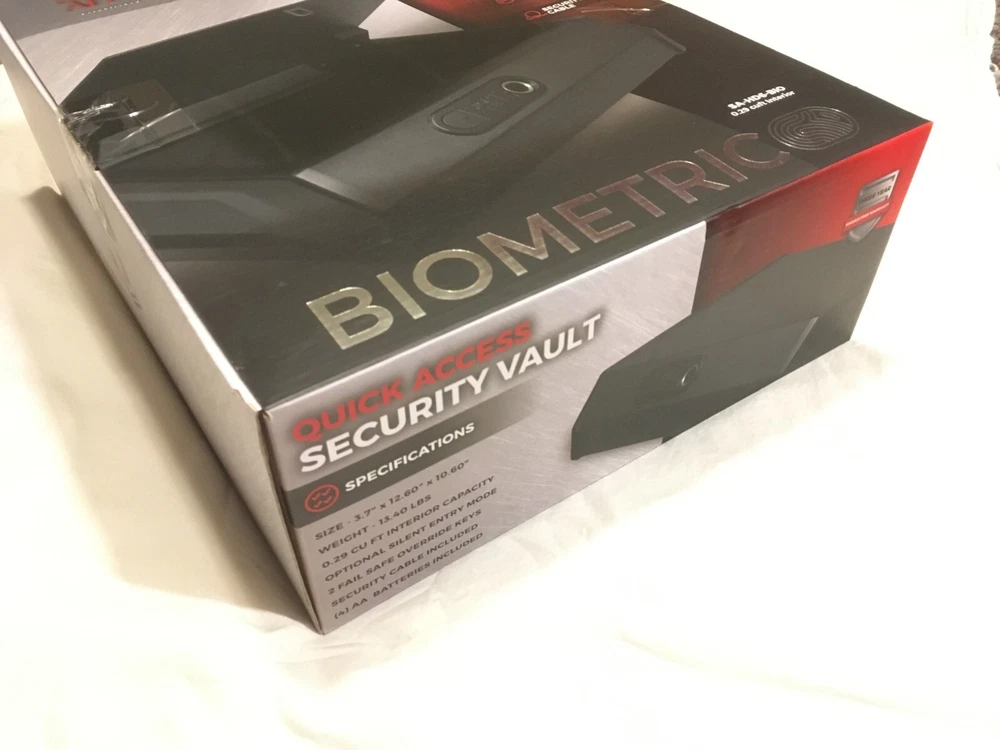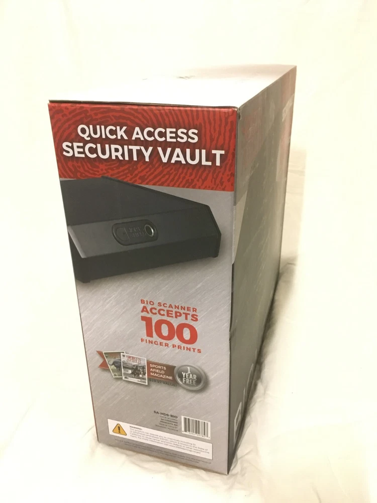 This is for the SA-HD6-BIO biometric handgun and valuables safe, in brand new, unopened condition. Retail price at big-name stores is about $170. This robust safe can store up to 100 individual fingerprints so that you can access it using any of your fingers, or so that others can also access the safe contents. The safe door is spring-loaded, so it opens automatically upon unlocking. The lighted and padded interior is perfect for storing handguns, valuables, or anything else needing safe protection. The SA-HD6-BIO is approved by the California DOJ for safe firearm storage. This item also includes two backup keys for easy access in case of issues with using your fingerprint. Also included is hardware for attaching the safe, with an included security cable. Overall internal volume is 0.25 cu ft.