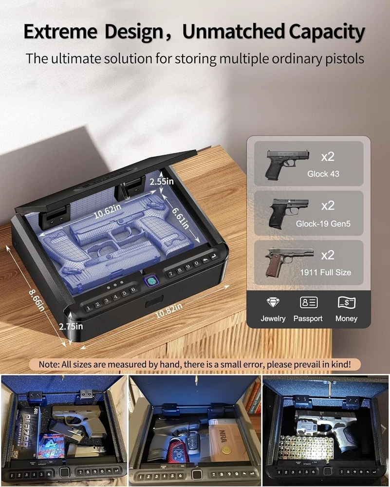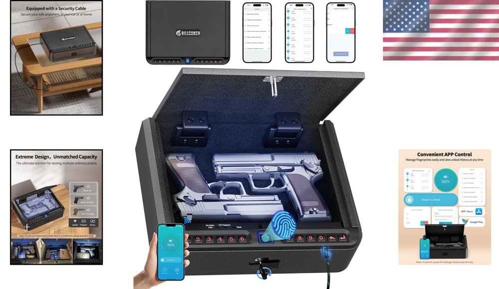 Biometric Handgun Safe with 4 Quick Access Methods - Portable Nightstand Storage ‹ › ‹ › ‹ › ‹ › ‹ › ‹ › ‹ › ‹ › ‹ › ‹ › ‹ › ‹ › Biometric Handgun Safe - Portable Nightstand Storage Secure your firearms safely and conveniently with our state-of-the-art Biometric Handgun Safe, designed to offer peace of mind without sacrificing accessibility. Features: Convenient App Operation: Utilize your smartphone to manage access with ease. Connect via our dedicated app to unlock the safe with a single click, monitor battery levels, and manage up to 40 fingerprints effortlessly. USB Charging & Mute: Equipped with a 2200mAh battery and an external USB charging port, this safe ensures you never worry about running low on power. Enjoy the added benefit of silent mode and convenient LED lighting for nighttime accessibility. 4 Fast Unlock Methods: Unlock your safe swiftly using biometric scanning, a custom PIN code, the app, or physical keys. High-resolution fingerprint technology opens the safe in just 1 second. Portable & Spacious Capacity: Compact yet spacious, perfect for securing one large handgun or two standard-sized handguns along with valuables. Dimensions: Exterior - 10.82" x 8.66" x 2.75", Interior - 10.62" x 5.84" x 2.55". Ideal for home, vehicle, or travel. Premium Materials & Excellent Design: Crafted from a durable carbon steel core, coated for corrosion resistance, featuring a unique hinge design and double U-lock for added security. Benefits: Unmatched security with advanced biometric technology. Easy and fast access in emergency situations. User-friendly features including silent operation and LED interior lights. Versatile and portable design for any setting. Exceptional customer service supported by a 365-day warranty for peace of mind. Why Choose Our Biometric Handgun Safe? In a world where safety and convenience go hand in hand, our Biometric Handgun Safe stands as your most reliable companion. With its innovative app connectivity, fast unlocking methods, and robust design, it’s more than just a storage solution – it's a commitment to protecting your family and valuables. Don’t compromise on safety. Choose the best and ensure your peace of mind today. Order your Biometric Handgun Safe now! Shipping Free & Fast Shipping - We offer free shipping to most of the USA with a normal delivery time of 3-10 businessdays. However, due to various situations, additional delivery time (up to 3 weeks) may be required for some items. Alternative Carriers - We may use alternative carriers (e.g. USPS, FedEx, UPS, etc.) to ensure your package arrives safely and on time. Due to the use of multiple carriers, we are unable to provide a tracking number automatically. Handling Time - Orders are processed and shipped within 1-5 business days of receiving cleared payment. Shipping Restrictions - Shipping to Alaska, Hawaii, Puerto Rico, Guam, and other US territories may incur shipping charges or delivery restrictions. Please contact us before ordering, or your order can be refunded/cancelled. State Restrictions - There may be restrictions based on your state of purchase. For example, certain items may not be shipped to California due to state regulations. Contact for Tracking Updates - If you require tracking updates or have any concerns about the delivery of your order, please feel free to contact us, and we will be happy to assist you. Return Please see our ebay return policy. We do not accept return on most products. This is to avoid customers mis-using ebay returns. All sales are final. Please be sure to check the return policy listed at the top of the listing. In rare cases, we may accept returns, if the buyer pays both ways shipping and 20% restocking fee. If you are un-sure of return policy of a particular item, please ask before buying. Payment We accept all major credit cards, PayPal, and Apple Pay for your convenience. Your payment information is secure and encrypted to ensure a safe and seamless transaction. Please complete your payment within 3 days of purchase to avoid any delays in shipping. Feedback Your feedback is extremely important to us. We strive to provide the best products and customer service possible. If you are satisfied with your purchase, please take a moment to leave us a positive review. If you have any concerns or issues with your order, please contact us before leaving negative feedback. We are committed to resolving any problems and ensuring your satisfaction. Contact Us If you have any questions or concerns, please feel free to reach out to our customer support team. You can contact us through the eBay messaging system. We are available Monday to Friday, 9:00 am to 5:00 pm EST, and we will do our best to respond to your inquiry within 24 hours. Buy it now and enjoy a pleasant shopping experience! UPC: Not Set Item Height: Not Set Unit Quantity: 1 Material: Carbon Steel,Metal Features: Portable,LED Lighting,Mute Function,USB Charging,Low Battery Reminder,4 Unlock Methods,Anti-Theft Alarm For Gun Type: Handgun Type: Safe Brand: Unbranded Number of Guns: 2 Locking Mechanism: Biometric Lock Number of Keys: 2 Color: Metal Black Country/Region of Manufacture: Not Set Item Length: Not Set Item Width: Not Set Item Weight: 6.17 pounds MPN: Not Set Unit Type: lb Vintage: Not Set