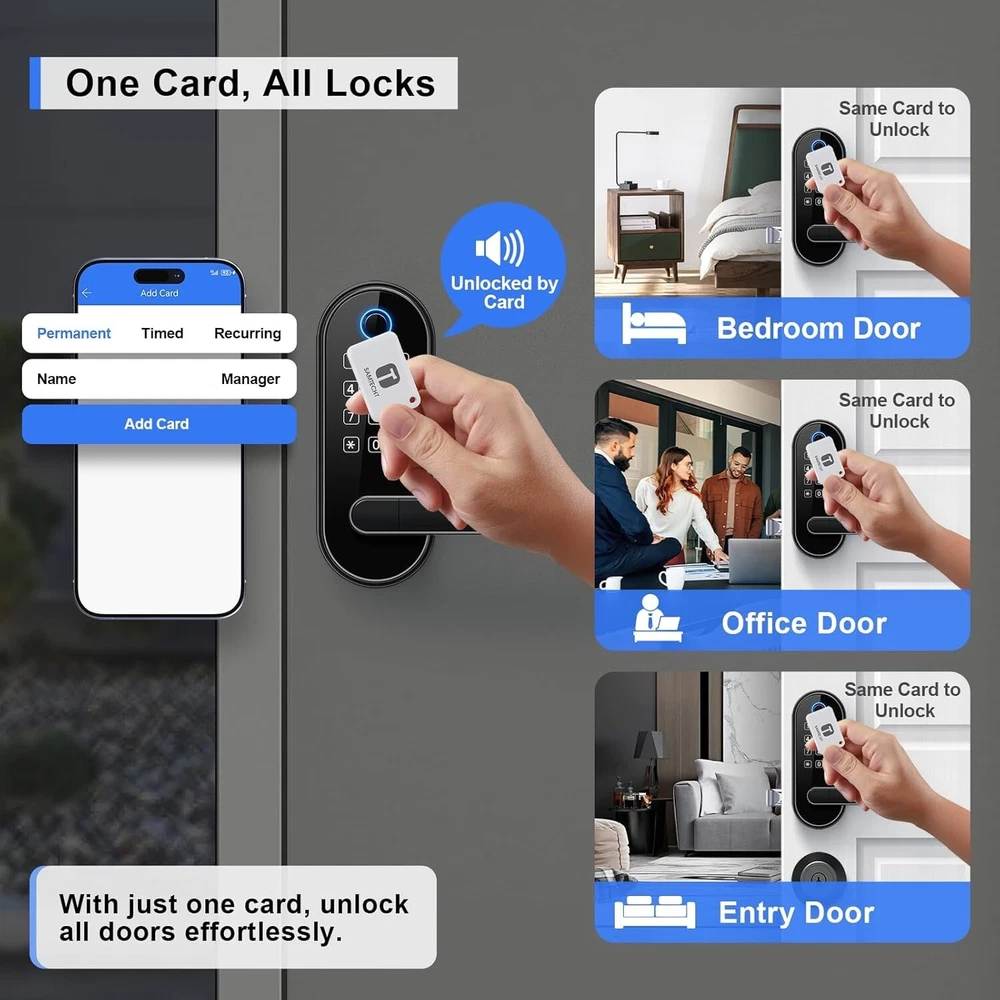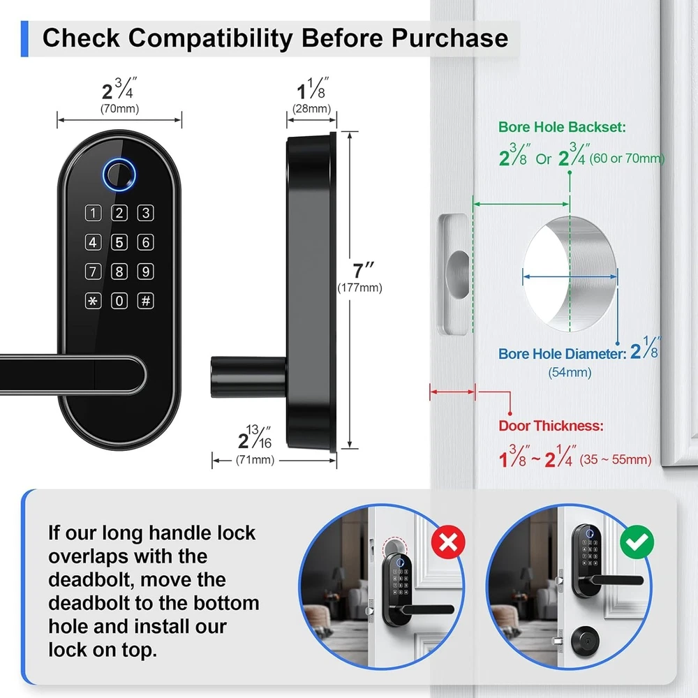 Biometric Keypad Smart Lock - Voice Control & Auto-Lock for Ultimate Security ‹ › ‹ › ‹ › ‹ › ‹ › ‹ › ‹ › ‹ › ‹ › ‹ › Biometric Keypad Smart Lock Voice Control & Auto-Lock for Ultimate Security Features: Fingerprint Unlock - Family Friendly: Unlocking with a fingerprint takes just 0.3 seconds, offering quick access for family members. Our 508 DPI high-resolution fingerprint sensor ensures up to 99.99% recognition rate. Track all unlocking history using the smart app. Code Unlock - Guest Friendly: Remotely create instant or scheduled door codes for family, visitors, and guests using the smart app. Secure Your Home: Automatic door locking to ensure your door is always locked after you leave. An alarm triggers if unwanted intruders attempt to enter. Privacy mode disables all access methods from outside when you need it. One Card, All Locks: Use one card to unlock all doors, eliminating the need for multiple keys. Voice Control: Works with Amazon Alexa and Google Assistant for hands-free control through voice commands. Locks Management: Manage all the locks via the smart app and web portal. Easy Installation: Quick installation using just a screwdriver; no extra drilling needed. Benefits: Swift access for family with fingerprint unlocking. Convenient guest access management from anywhere. Enhanced security with automatic locking and alarm features. Simplified access management with one universal key card. Hands-free control via voice commands adds to convenience. Easy installation makes it user-friendly for everyone. Why choose our Biometric Keypad Smart Lock? Transform your home security with our Biometric Keypad Smart Lock, designed for ultimate convenience and safety. Enjoy the peace of mind that comes with swift family access and secure guest codes, all managed seamlessly through a smart app. With advanced functions, including automatic door locking and alarm triggers, your home remains safe even when you are away. Plus, installation is a breeze – just grab a screwdriver and you’re done! Secure your home today and embrace the future of convenience – order your Biometric Keypad Smart Lock now! Shipping Free & Fast Shipping - We offer free shipping to most of the USA with a normal delivery time of 3-7 days. However, due to the current situation, additional delivery time (up to 3 weeks) may be required for some items. Alternative Carriers - We may use alternative carriers (e.g. USPS, FedEx, UPS, etc.) to ensure your package arrives safely and on time. Due to the use of multiple carriers, we are unable to provide a tracking number automatically. Handling Time - Orders are processed and shipped within 1-2 business days of receiving cleared payment. Shipping Restrictions - Shipping to Alaska, Hawaii, Puerto Rico, Guam, and other US territories may incur shipping charges or delivery restrictions. Please contact us before ordering, or your order can be refunded/cancelled. State Restrictions - There may be restrictions based on your state of purchase. For example, certain items may not be shipped to California due to state regulations. Contact for Tracking Updates - If you require tracking updates or have any concerns about the delivery of your order, please feel free to contact us, and we will be happy to assist you. Return Please see our eBay Return Policy. Thank you. Payment We accept all major credit cards, PayPal, and Apple Pay for your convenience. Your payment information is secure and encrypted to ensure a safe and seamless transaction. Please complete your payment within 3 days of purchase to avoid any delays in shipping. Feedback Your feedback is extremely important to us. We strive to provide the best products and customer service possible. If you are satisfied with your purchase, please take a moment to leave us a positive review. If you have any concerns or issues with your order, please contact us before leaving negative feedback. We are committed to resolving any problems and ensuring your satisfaction. Contact Us If you have any questions or concerns, please feel free to reach out to our customer support team. You can contact us through the eBay messaging system. We are available Monday to Friday, 9:00 am to 5:00 pm EST, and we will do our best to respond to your inquiry within 24 hours. Thank you for supporting our small family business! UPC: Not Set Model: Not Set Unit Quantity: 3.56 lb Material: Zinc Suitable For: Entrance Door,Bedroom Door,Home Security,Property Management,Rental Hosting,Family Residences,Office Buildings Mounting: Universal Features: Fingerprint,Fob Unlock,Passcode Unlock,Weather Resistant,Auto-Lock,Voice Control,Fingerprint Unlock,Automatic Door Locking,Privacy Mode,Activity Alerts,One Card for All Locks,Remote Code Management Items Included: 7 pieces,Smart Lock Body,Mounting Hardware,Screwdriver,Installation Instructions Brand: Unbranded Type: Biometric Lock Color: Black Finish: Matte Item Height: Not Set Item Width: Not Set Throw Length: Not Set Cross Bore Diameter: 2.5 in MPN: Not Set Number in Pack: 1 Style: Modern Item Depth: 1.12 in Country/Region of Manufacture: Not Set ANSI Grade: ANSI Grade 1 (Best) Door Handing: Universal/Reversible Item Weight: 3.56 lb Manufacturer Warranty: Not Set Unit Type: lb Fixings Supplied: Not Set