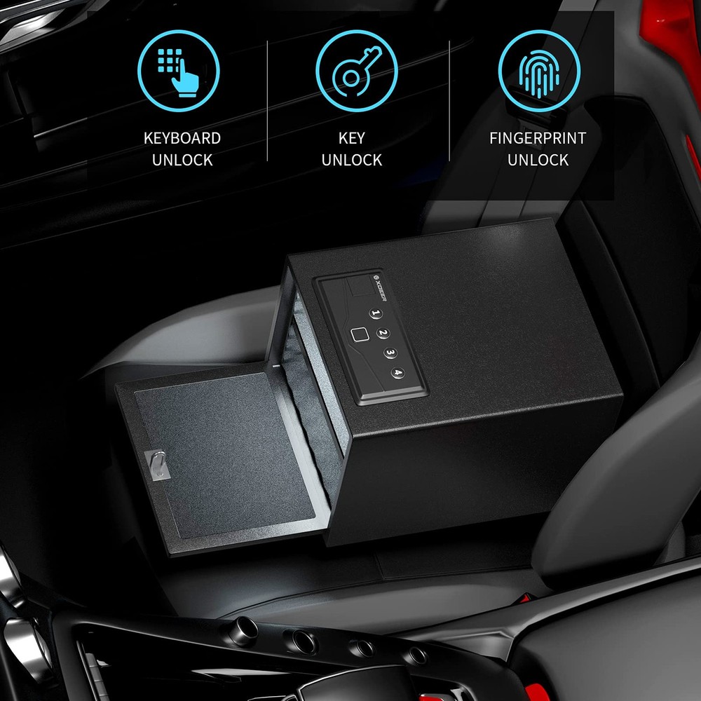 Biometric Pistol Safe (FCC & California DOJ Certified) - Quick Access Handgun Safe with Fingerprint & Digital Keypad, Secure Home Gun Safe for up to 4 Pistols (No Cleaning Kit) 【DOJ,Approved Safety Device】gun safe has been tested and found to comply with firearm safety device approved by california department of justice 【Upgraded Smart Biometric Fingerprint】 gun safes for pistols features a semiconductor fingerprint scanner for advanced protection, Newest biometric module allows fast reading within 0.1seconds, Up to 508DPI, touch lifetime is more than 1,000,000 times and its FAR and FRR are less than 1/10000. takes more care to provide swift protection at the most critical time 【4-8 Pistol High Capacity, Tough and Anti-Theft】The heavy-duty pistol safe is constructed from solid steel and features a pry-resistant door. The handgun safe will provide long-lasting strength and durability. Other features include a pry-resistant door, durable double-layer steel housing, and a seamlessly welded pry-proof steel body for the ultimate protection against break-ins. The safe keeps firearms away from your family and protects your valuables at all times. 【Quick Access & 3 Unlocking Methods】 Open the biometric gun safe quickly in critical moments for your safety. Unlock using fingerprint/PIN code/key for convenience and ease of use. Fingerprint lock allows access to firearms in 0.1s and the PIN code can be set for 3-8 digits for multiple users.