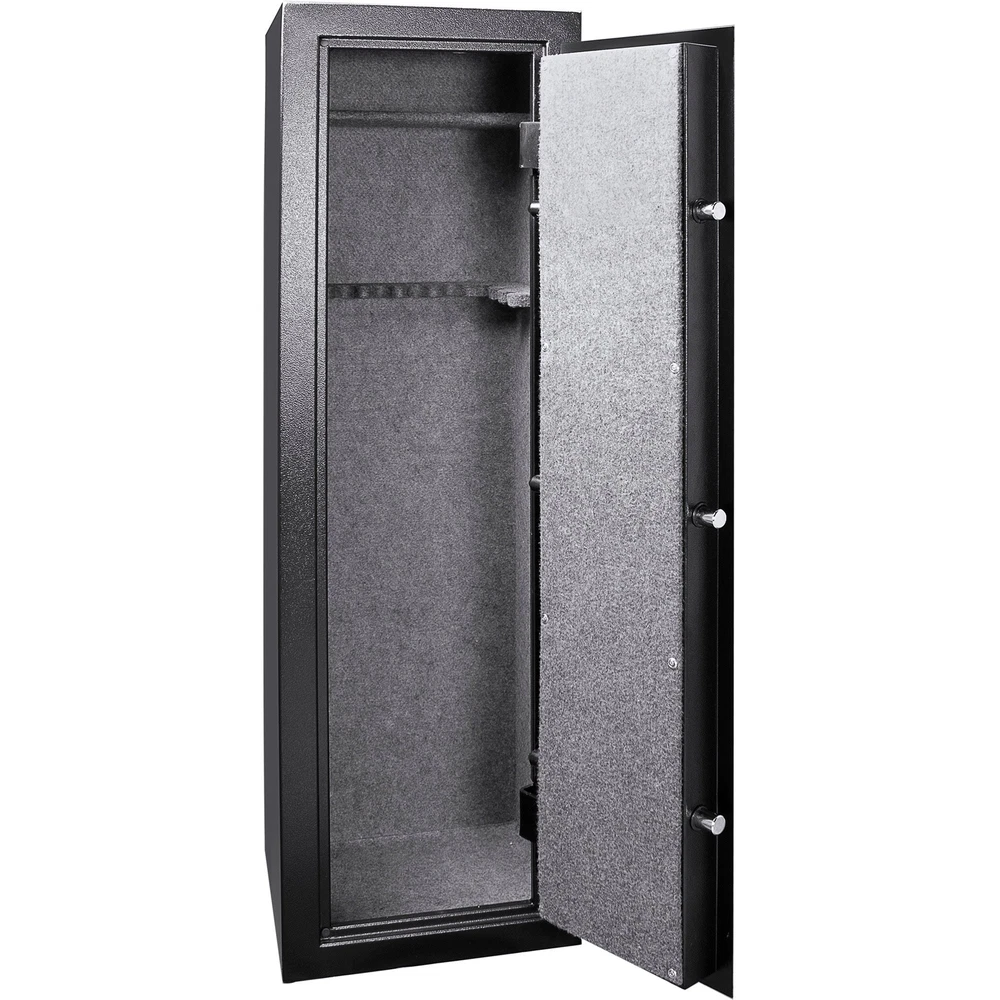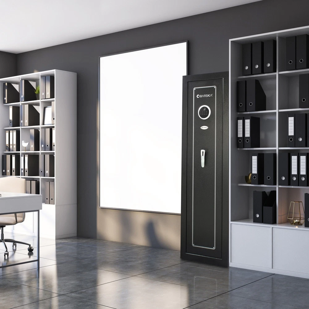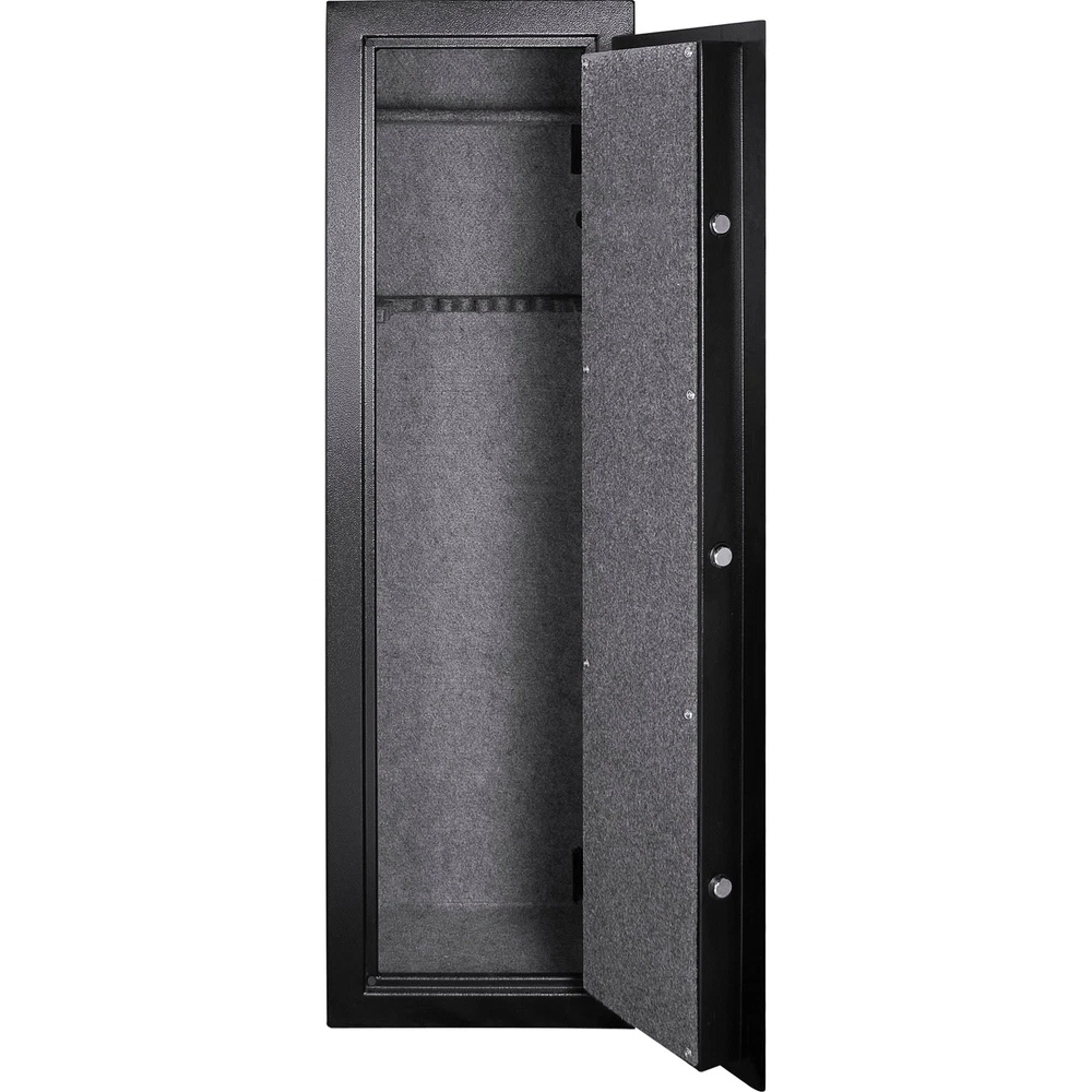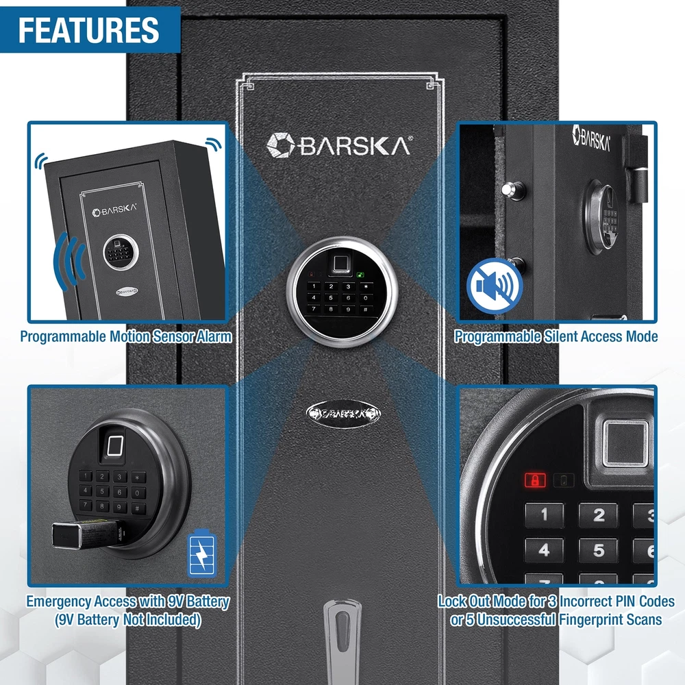 Specifications Place of Origin #originPlace# Main Color Black Main Material Steel Dangerous Goods #dangerFlag# Dimensions & Weights Assembled Length (in.) 15.04 Assembled Width (in.) 15.87 Assembled Height (in.) 55.12 Weight (lbs) 107.80 Product Features ? Secure Firearm Storage: California DOJ approved rifle safes provide a secure and dedicated space to store firearms, ensuring safety and compliance. ? Advanced Locking Mechanism: Equipped with advanced electronic keypad & biometric access for controlled entry. ?️ Ample Storage Space: Designed to accommodate rifles, ammunition, and accessories, offering an organized solution for gun owners. ? Versatile Placement: Suitable for home or business use, rifle safes can be installed in various settings to meet security needs. ? Dual Access Security: Rifle safes featuring both biometric and keypad access methods offer versatile security options for firearm storage. Description