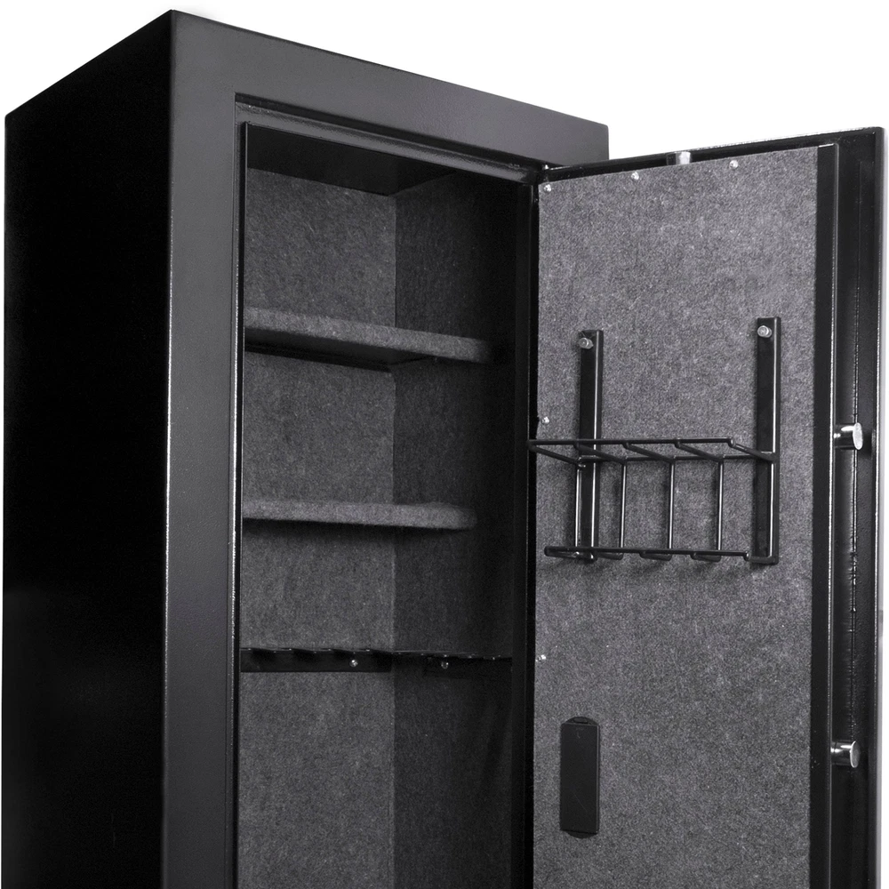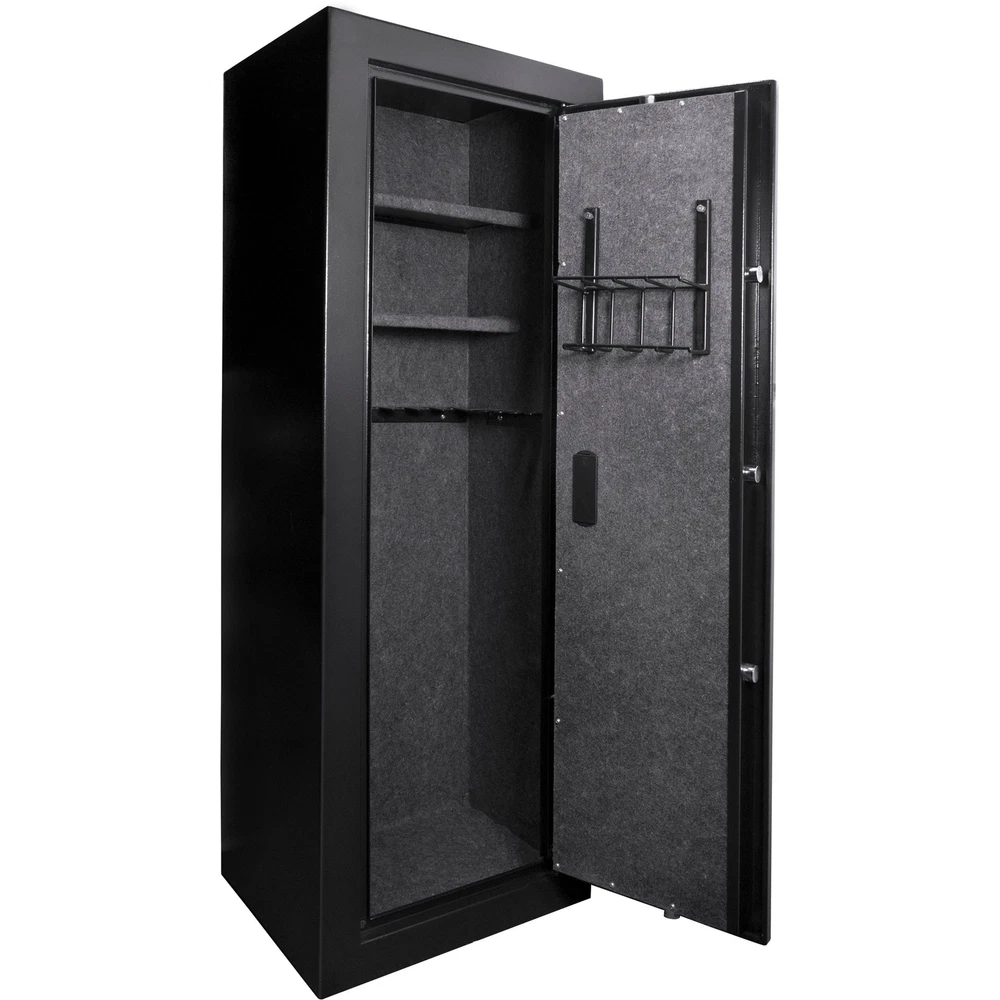 Specifications Place of Origin #originPlace# Main Color Black Main Material Steel Dangerous Goods #dangerFlag# Dimensions & Weights Assembled Length (in.) 16.00 Assembled Width (in.) 19.60 Assembled Height (in.) 57.00 Weight (lbs) 139.00 Product Features ? Secure Firearm Storage: California DOJ approved rifle safes provide a secure and dedicated space to store firearms, ensuring safety and compliance. ? Secure and Silent Access: Biometric rifle safes with silent mode ensure discreet and secure firearm storage, allowing quick access without noise. ?️ Ample Storage Space: Designed to accommodate rifles, ammunition, and accessories, offering an organized solution for gun owners. ? Versatile Placement: Suitable for home or business use, rifle safes can be installed in various settings to meet security needs with included hardware. ? Rapid Access & Extensive Memory: Biometric rifle safes provide swift entry with fast access and can store up to 120 unique fingerprints for convenient and secure firearm retrieval. Description