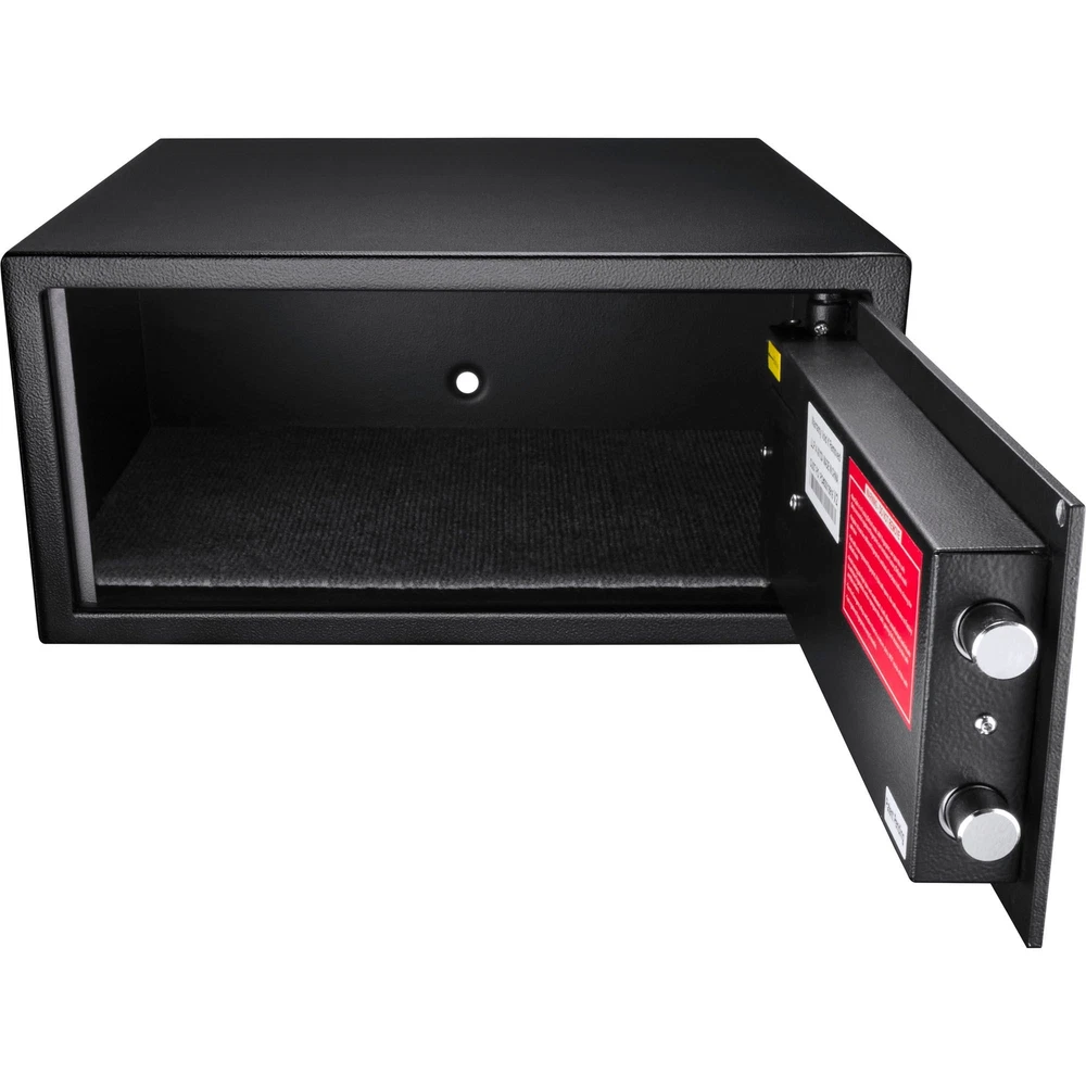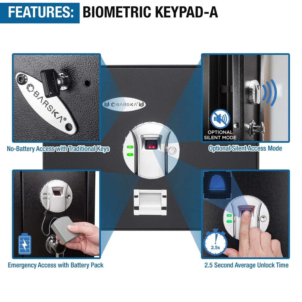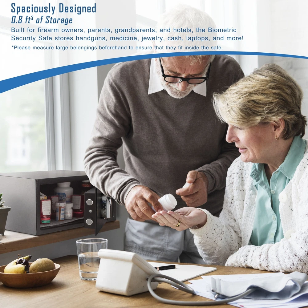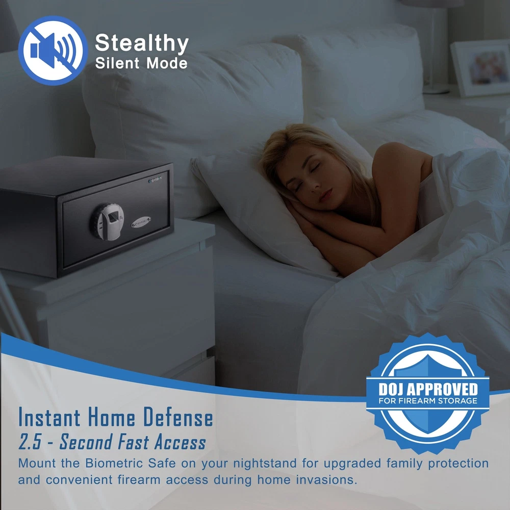Specifications Place of Origin #originPlace# Main Color Black Main Material Steel Dangerous Goods #dangerFlag# Dimensions & Weights Assembled Length (in.) 14.50 Assembled Width (in.) 16.50 Assembled Height (in.) 7.75 Weight (lbs) 28.00 Product Features Advanced Biometric Security - Biometric home safes provide advanced protection through 2.5-sec access via fingerprint recognition, ensuring that only authorized individuals can enter. Built to Withstand - These safes are meticulously crafted with robust materials, designed not only to safeguard your valuables but also to resist tampering and unauthorized entry attempts effectively. Ample User Capacity - Biometric fingerprint module with the capability to securely store data for up to 120 unique users, ensuring versatile access management. Discreet Operation - Equipped with a silent mode, this safe ensures noise-free usage, making it ideal for situations where quiet access is essential. Emergency Access - Included backup keys offer a fail-safe solution for accessing the safe in unforeseen circumstances or when alternative methods are needed. Description