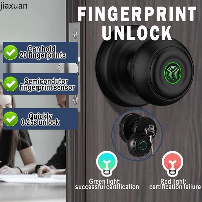 About this item 【3 in 1 SMART DOOR LOCK】Smart door lock has a fingerprint unlocking, APP unlocking, key unlocking 3 unlocking methods & 3 in 1 perfect fingerprint smart door lock smart door handle! 【INTELLIGENT LIFE】A key fingerprint door lock supports APP control, check the unlocking record through APP, more secure unlocking, semiconductor fingerprint sensor allows you to quickly access fingerprint management, up to 20 fingerprints, intelligent security technology will guard you and your family's safety! 【PREMIUM DESIGN & HIGH QUALITY MATERIAL】Biometric door lock is made of high quality aluminum alloy material, it is clear, smooth and easy to clean, and with classic door handle design, it also adds fingerprint lock and APP unlock function, it is the ideal choice of smart door lock for bedroom door, office, hotel, apartment! 【EASY INSTALLATION】The smart door handle door lock can be easily installed in minutes with a screwdriver, we have detailed installation instructions, very easy to install, fits most US doors, meets your every need! 【NOTE】The smart door lock is suitable for wooden doors between 30-55mm, fire doors, security doors, etc. 4 AAA batteries are required for installation, when you low battery mode after the USB interface can also be used for emergency power supply, but please note that do not charge, replace the batteries again, if there are other problems feel free to consult us!