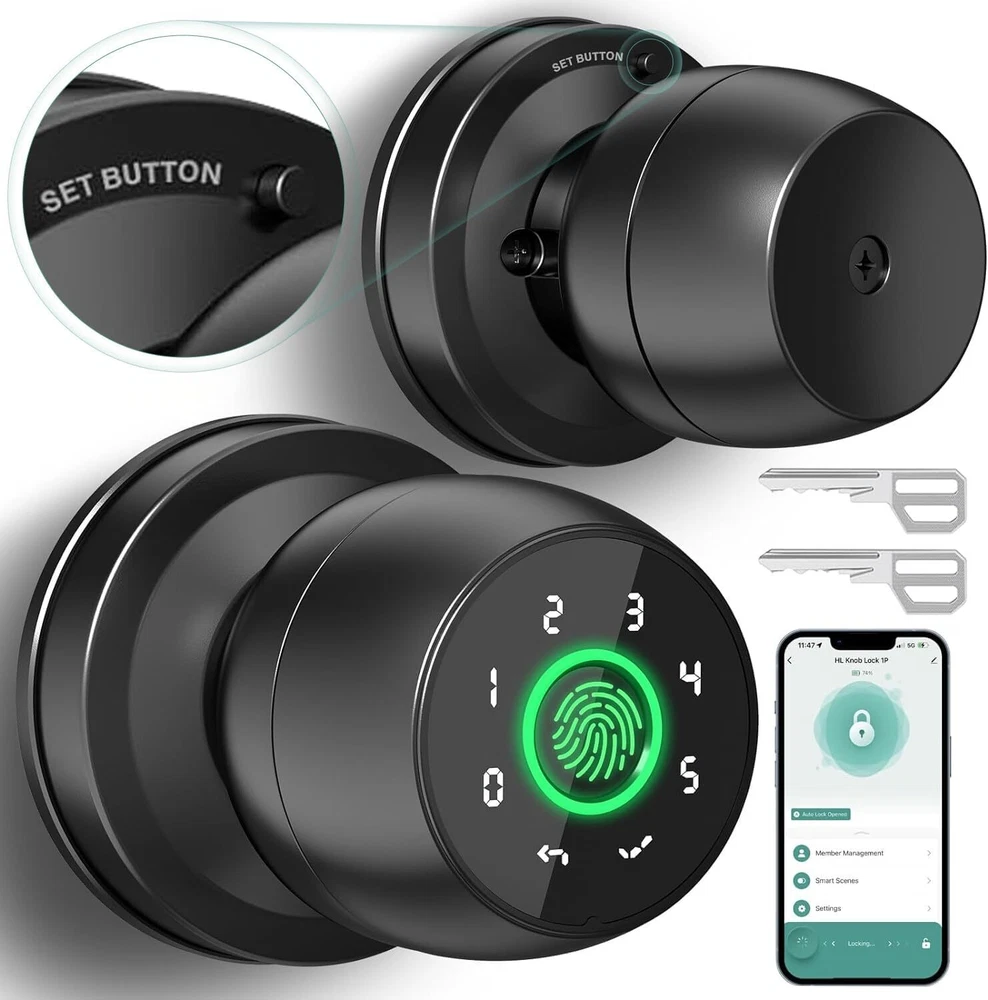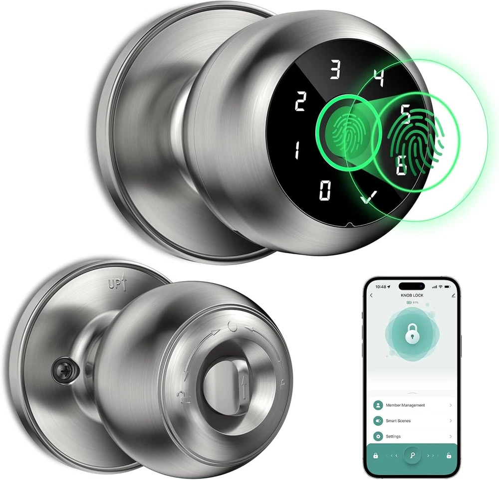 【3 ways to unlock】The smart door handle has 3 unlocking methods for you to choose from: fingerprint unlocking-convenient, app control unlocking-safe, emergency spare key-reliable, more convenient to enter and exit 【Simple, smart, safe】The door lock has biometric recognition function and supports App control, which can easily realize fingerprint management. You can view unlocking records, automatic locks, traffic modes and security locks through the App, which can prevent people you don't welcome from entering your room to control your home security. 【Classic design but more solid】The door handle continues the classic style design, equipped with fingerprint lock function and modern app control (for details, please refer to the instruction manual), which is a very ideal fingerprint door handle smart lock for bedroom doors, offices, apartments, and hotels. 【Easy to install】The fingerprint door handle door lock can be easily installed with a screwdriver in just a few minutes, suitable for most American doors, Tips: When installing the inner knob, the outer and inner knobs must be inserted according to the "UP" sign on the top so that they can be fixed in place. The spindle rod is in a vertical position. Turn the adjustment arrow with your thumb to point to the center point and the "UP" symbol, and then insert the arrow upward into the mounting base. You can fully insert the back lock with a little force. Easily replace existing door locks. 【Note】Smart door locks are suitable for wooden doors, fire doors, anti-theft doors, etc. between 30-55mm. The door lock also has a visual power display and low power alarm function. Please remember to separate after charging, do not plug in for use, and the battery is not removable. If you have any other questions, please feel free to consult us! Product Description Multiple mode selection 2024 New Products Add to Cart Add to Cart Add to Cart Add to Cart Customer Reviews 4.4 out of 5 stars 1,151 4.4 out of 5 stars 1,151 4.4 out of 5 stars 1,151 4.4 out of 5 stars 1,151 Price $49.99 $ 49 . 99 $49.99 $ 49 . 99 $69.99 $ 69 . 99 $69.99 $ 69 . 99 Color Silver Black Satin Nickel Black Fingerprint Unlock YES YES YES YES Keypad NO NO YES YES Key Unlock YES YES YES YES App Control YES YES YES YES Fingerprint Storage 20 Pcs 20 Pcs 18 Pcs 18 Pcs Unlock Diary YES YES YES YES What are the fingerprint unlocking functions of this product? The unlocking function includes: fingerprint unlocking, passwordunlocking, key unlocking, and Bluetooth APP unlocking What type of door is suitable for? Applicable for wooden or steel doors with a thickness of 35-55mm Where does it apply? Suitable for residential regions , apartments , offices , office buildings ,etc Can I charge it and use it? It cannot be used for charging all the time, and the socket is only used for emergency charging and opening the door when the battery is dead. What warning will be issued when the battery voltage drops to low? The buzzer sounds once, and the reader flashes green and red; The mobile app will receive a notification message that the battery is low.