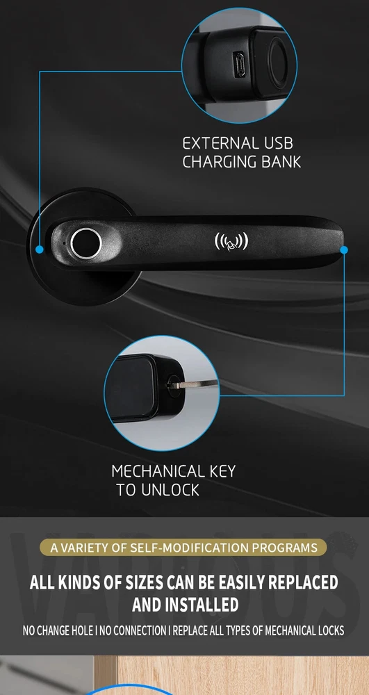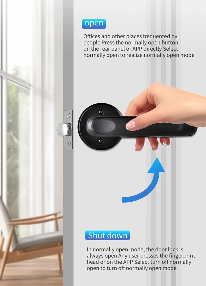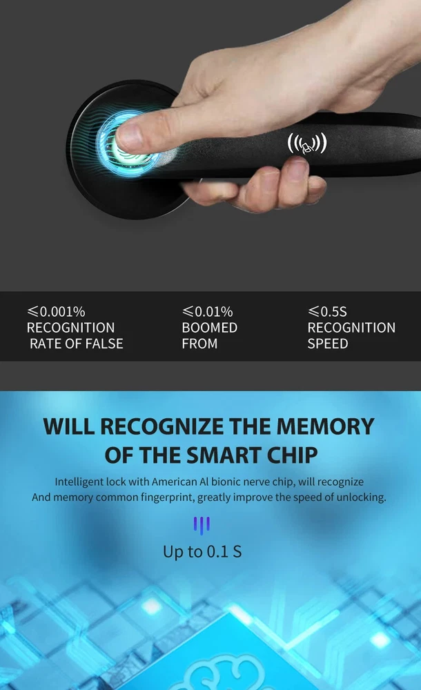 Biometric Fingerprint Door Lock for Bedroom Keyless Entry Smart Handle Electronic Gallery Description Biometric Fingerprint Door Lock for Bedroom Keyless Entry Smart Handle Electronic Shipping Free Worldwide Shipping! Payment Policy Safe and secure payment with PayPal! Return Policy 30 Days returns!