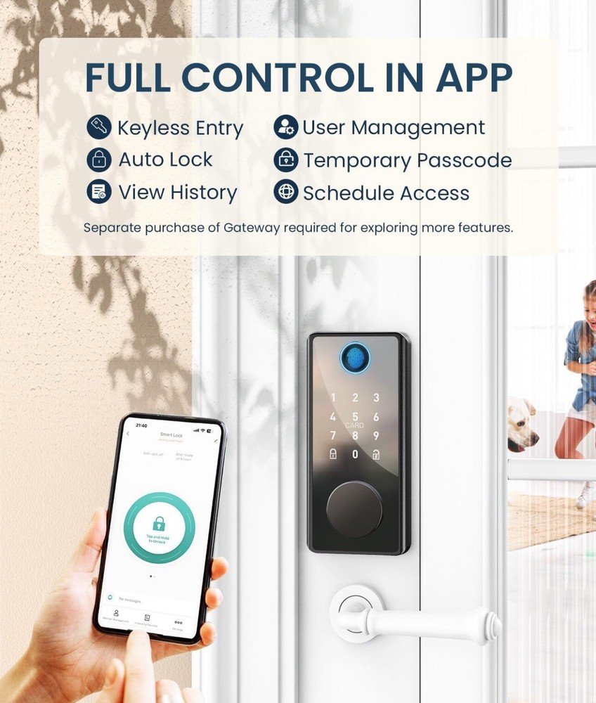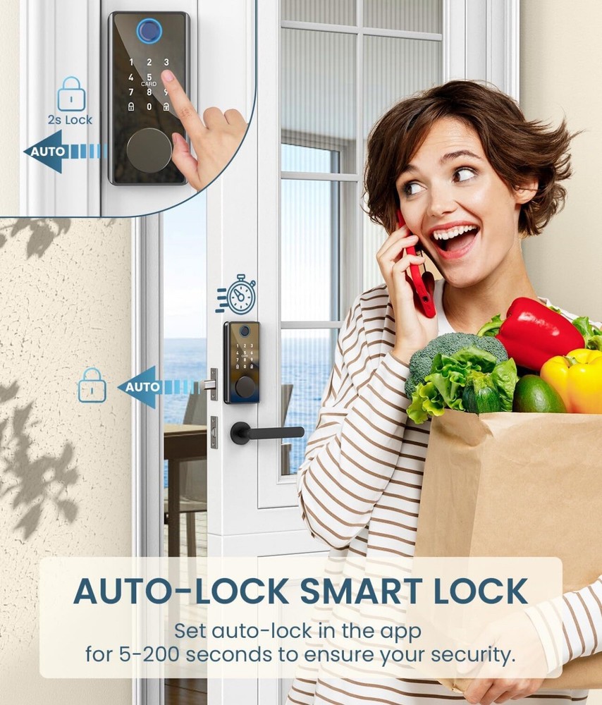Keyless Entry Door Lock with Keypad - Fingerprint Door Lock - Smart Locks for Front Door - Electronic Keypad Smart Deadbolt Lock - Biometric Smart Digital Door Lock with Code -Auto Lock 1 #1 Best Seller in Door Knockers Introducing the Smart Lock - Latch, a Bluetooth lock suitable for a variety of doors including side doors, bathroom doors, cellar doors, interior/room doors, residential doors, closet doors, front doors, front entrance doors, bedroom doors, and garage doors. This lock is made of zinc alloy and comes in a satin nickel finish. With features such as keyless entry, simultaneous locking, easy installation, adjustable backset, self-closing, and a keypad door lock, this lock is perfect for those looking for a convenient and secure way to lock their doors. The Sifely Smart Lock - Latch also comes with a 1-year manufacturer warranty and is manufactured in the United States. Get your hands on this smart lock today and experience the convenience of keyless entry!