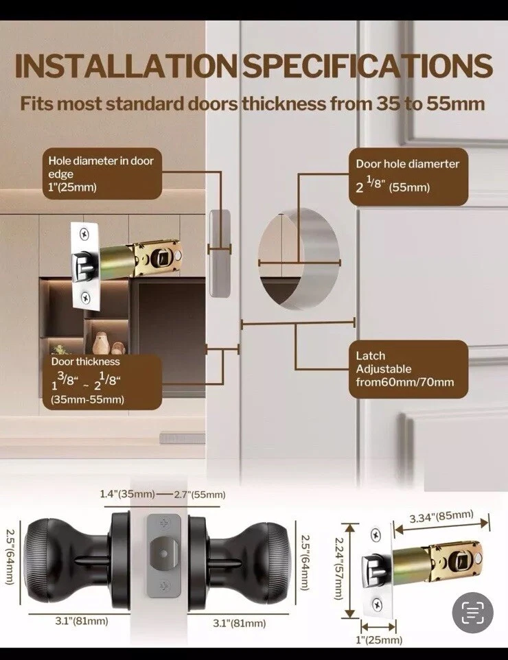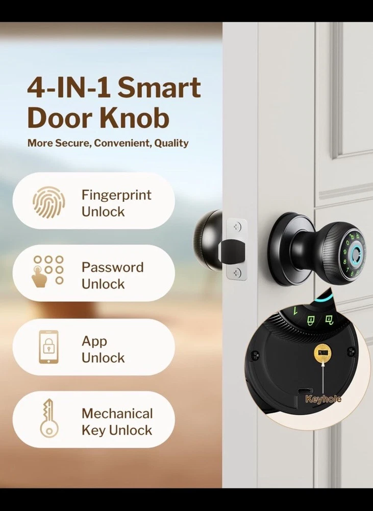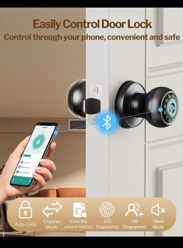This biometric smart door lock is a modern and convenient solution for securing your home or office. It is suitable for a variety of door types, including patio doors, residential doors, swinging doors, panel doors, fire doors, internal/room doors, front entrance doors, security doors, French doors, and storm doors. The lock is made of high-quality brass material with a brushed finish and features keyless entry, easy installation, and an electronic key mechanism. The door lock is designed with universal mounting and a cross bore diameter of 3.5 inches, making it a perfect fit for most doors. It comes with all the necessary hardware, instructions, and key for easy installation. The ANSI Grade of this lock is 2 (Better) and it has a throw length of 7 inches. This smart door lock is a great addition to any home or office security system! Get yours today before they are gone!