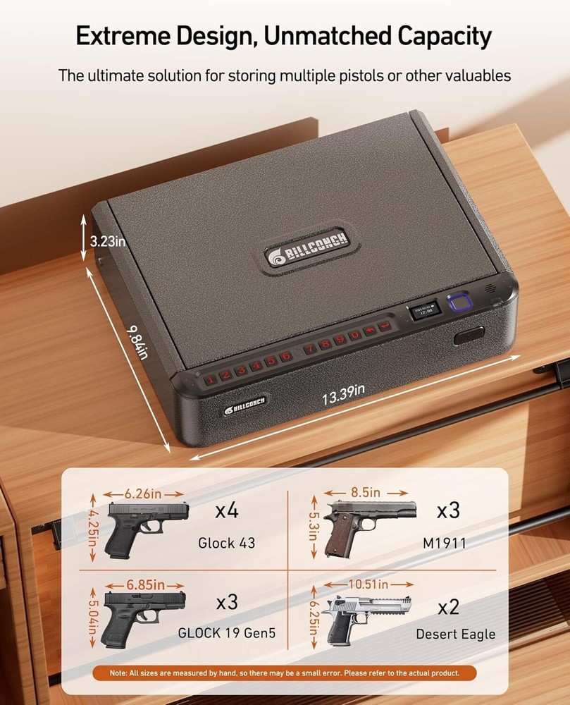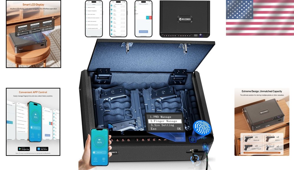 Biometric Smart Gun Safe - Quick Access with APP, Keypad & Fingerprint Locks ‹ › ‹ › ‹ › ‹ › ‹ › ‹ › ‹ › ‹ › ‹ › ‹ › ‹ › Biometric Smart Gun Safe - Quick Access with APP, Keypad & Fingerprint Locks Features: Convenient App Operation: Seamlessly connect with your phone to quickly unlock the gun safe. Manage up to 40 fingerprints at will and check battery levels in real-time. Intelligent Design: Smarter than ever with an LCD, allowing for intuitive setup via voice navigation. A mute function lets you customize your experience. Multiple Unlock Methods: Access your safe in seconds using fingerprint, PIN, APP, or key, ensuring swift and secure entry in times of need. Portable & Spacious: Perfectly designed to house up to 4 small handguns or 3 medium-sized ones along with valuables. Compact yet roomy for home, car, or travel. Premium Build Quality: Crafted with a sturdy carbon steel core and a 4-layer coating that resists corrosion and oxidation, ensuring long-lasting reliability. 5-Star After-Sales Service: Dedicated support team committed to ensuring your satisfaction with outstanding customer service and warranty options. Benefits: Ensure safety with state-of-the-art access methods that combine convenience with high security. Easily manage the safe from the palm of your hand, making it simpler than ever to keep your firearms secure. Lightweight and compact, ideal for home, vehicle, or when traveling. LED lighting ensures easy access in low-light conditions, while the double U-lock design prevents unauthorized access. Built-in sponge protects your firearms while keeping them organized. Why choose our Biometric Smart Gun Safe? In an unpredictable world, ensuring the safety of your firearms is paramount. Our Biometric Smart Gun Safe combines sophisticated technology with practical design, offering you peace of mind through effective firearm storage. With multiple access options and a user-friendly app, your handgun is never more than a moment away, yet always kept out of reach of children. Invest in your safety and that of your loved ones—choose a gun safe that embodies elegance in security. Order your Biometric Smart Gun Safe today and experience the ultimate blend of technology and protection. Shipping Free & Fast Shipping - We offer free shipping to most of the USA with a normal delivery time of 3-10 businessdays. However, due to various situations, additional delivery time (up to 3 weeks) may be required for some items. Alternative Carriers - We may use alternative carriers (e.g. USPS, FedEx, UPS, etc.) to ensure your package arrives safely and on time. Due to the use of multiple carriers, we are unable to provide a tracking number automatically. Handling Time - Orders are processed and shipped within 1-5 business days of receiving cleared payment. Shipping Restrictions - Shipping to Alaska, Hawaii, Puerto Rico, Guam, and other US territories may incur shipping charges or delivery restrictions. Please contact us before ordering, or your order can be refunded/cancelled. State Restrictions - There may be restrictions based on your state of purchase. For example, certain items may not be shipped to California due to state regulations. Contact for Tracking Updates - If you require tracking updates or have any concerns about the delivery of your order, please feel free to contact us, and we will be happy to assist you. Return Please see our ebay return policy. We do not accept return on most products. This is to avoid customers mis-using ebay returns. All sales are final. Please be sure to check the return policy listed at the top of the listing. In rare cases, we may accept returns, if the buyer pays both ways shipping and 20% restocking fee. If you are un-sure of return policy of a particular item, please ask before buying. Payment We accept all major credit cards, PayPal, and Apple Pay for your convenience. Your payment information is secure and encrypted to ensure a safe and seamless transaction. Please complete your payment within 3 days of purchase to avoid any delays in shipping. Feedback Your feedback is extremely important to us. We strive to provide the best products and customer service possible. If you are satisfied with your purchase, please take a moment to leave us a positive review. If you have any concerns or issues with your order, please contact us before leaving negative feedback. We are committed to resolving any problems and ensuring your satisfaction. Contact Us If you have any questions or concerns, please feel free to reach out to our customer support team. You can contact us through the eBay messaging system. We are available Monday to Friday, 9:00 am to 5:00 pm EST, and we will do our best to respond to your inquiry within 24 hours. Buy it now and enjoy a pleasant shopping experience! UPC: Not Set Item Height: Not Set Unit Quantity: 8.38 Material: Steel,Alloy Steel,Carbon Steel Features: Portable,Security Cable,With Lock,Biometric Lock,App Control,Anti-Theft Alarm,LED Lighting,4 Quick Unlock Methods,Fingerprint Scanning,Low Battery Reminder,Rechargeable Battery,Voice Guide,Mute Function,ESD-Safe Sponge,Digital Control For Gun Type: Pistol Type: Safe Brand: Unbranded Number of Guns: 4 Locking Mechanism: Digital Lock Number of Keys: 2 Color: Black Country/Region of Manufacture: Not Set Item Length: Not Set Item Width: Not Set Item Weight: 8.38 pounds MPN: Not Set Unit Type: lb Vintage: Not Set
