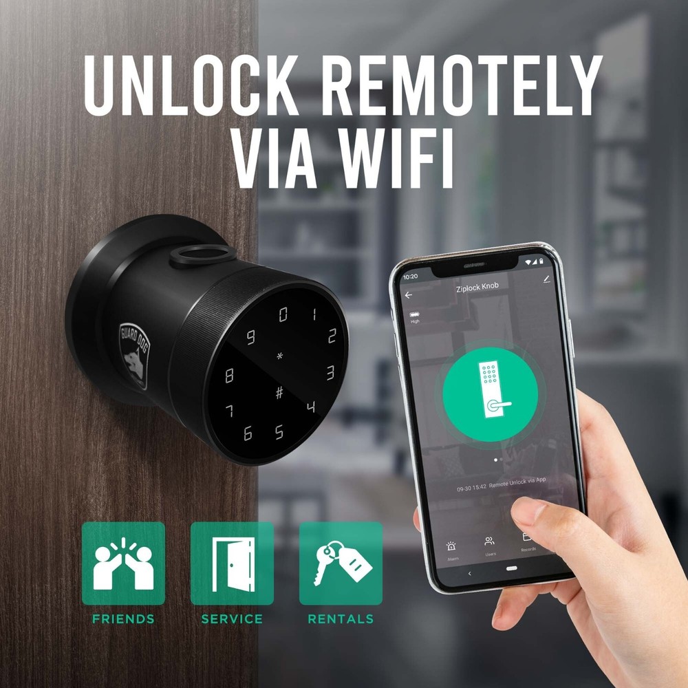 Biometric Smart Lock Ziplock | Knob Lock w/ 5-Ways to Unlock Join Mailing List Add to Favourites Store Home Items For Sale Feedback Contact Us Biometric Smart Lock Ziplock | Knob Lock w/ 5-Ways to Unlock Product Description Are you looking for a high-tech and stylish door lock that is easy to install and use? This smart door lock uses advanced semiconductor biometric identification technology to read fingerprints in 360 degrees within 0.1s. It is also easy to program multiple fingerprints for keyless access for the whole family and approved visitors. The Guard Dog Ziplock Knob Door Lock also has an automatic re-locking system that will assure the door is locked 2.5 seconds after being shut, preventing the safety concerns that occur when doors are unintentionally left unlocked. With its sleek and modern design, the Guard Dog Ziplock Knob Door Lock is the perfect way to add a touch of style and security to your home. 5 Ways to Unlock: The Ziplock Knob Door Lock uses multiple smart unlocking methods: Fingerprint accessibility + Numeric Passcode + App Entry + IC Cards + Physical Key (2 included). High-speed fingerprint recognition technology can open the door in less than 1 second. Capable of adding up to 200 individual fingerprints. Smart Lock Technology: Paired with TUYA Free app, control your lock remotely, Real-time access notifications and access records let you know who comes and goes from anywhere. With an automatic locking system, the door will automatically lock behind you after opening for 2.5 seconds. Easy Installation: You can replace your existing lock with the Ziplock Knob Door Lock within minutes. No extra drilling is needed. You only need a Phillips screwdriver or a drill to install this biometric door knob. Ideal for home, bedroom, office, hotel, garage, apartment, etc. Never Locks you Out: The Ziplock lock is equipped with a USB interface for a backup energy source that can also use a generic charging bank. Live-worry-free, as it will still alert you when the battery is running low. Shipping We ship the next working day if order is placed before 5 PM EST. Please make sure to provide correct shipping address during the checkout. The shipping cost for the wrong or undeliverable address in non refundable. IMPORTANT: The shipping of this item excluded the following regions: Hawaii, Massachusetts, Michigan, New Jersey, New York, Rhode Island, Wisconsin, and the District of Columbia (Washington DC). Returns All of our items are covered by a 30 day return policy. If for some reason you're not happy with your purchase, you have 30 days to return your item or to exchange it. Returned product must be in its original condition, including the box, packaging and all the accessories. Buyer is responsible for the return shipping fees, unless the products is defective. Shipping and handling charges are non refundable. It is customers responsibility to provide the correct shipping address during the check out. No refunds will be issued if package was delivered to the incorrect address Payment We accept payment via PayPal. All transactions are 100% secure. About Us Guard Dog is committed to providing personal self defense, security and protection for everyday use with highly effective and affordable products. With an extensive line of self-defense and security items, Guard Dog Security strives to protect yourself and loved ones. As the economy continues to struggle, violent crime is increasing and the need for personal protection is at all-time highs. During these times, and as always, we are working to make security convenient for everyone, ensuring our products are easy to carry anywhere and for everyone. Sign Up To Our Newsletter Click here to subscribe to our newsletter and to receive all the latest news, updates and special offers about our store. Subscribe Now Useful Links Shop Home Items For Sale Feedback Contact Us Payment Options Shop With Confidence © Copyright 2020, Guard Dog security. All rights reserved.