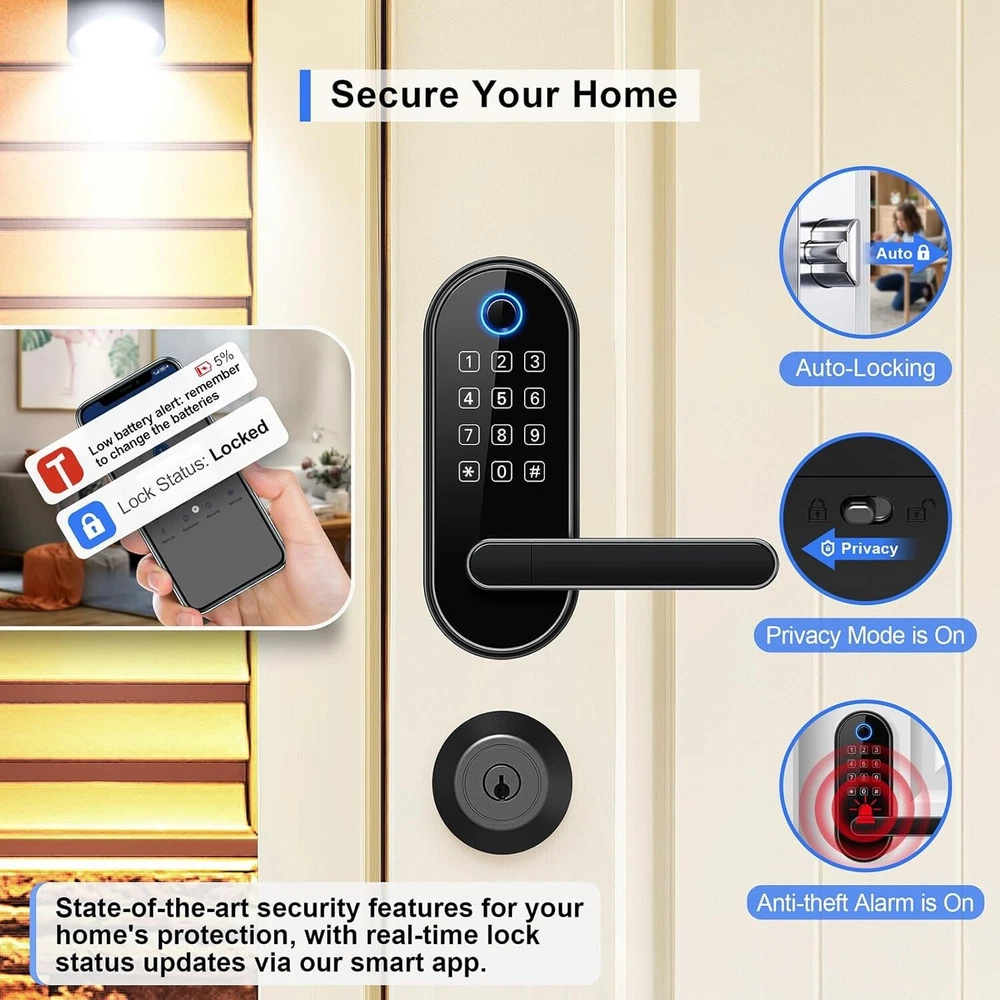 Absolutely love this smart lock! Super fast fingerprint unlock works perfectly every time, and the app makes it easy to manage guest codes. Super sturdy and weatherproof—great for peace of mind. No more fumbling with keys! Highly recommend for a secure, convenient upgrade.