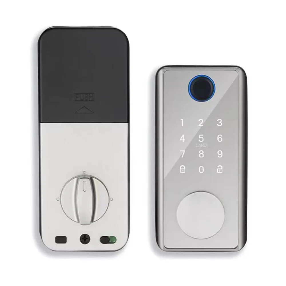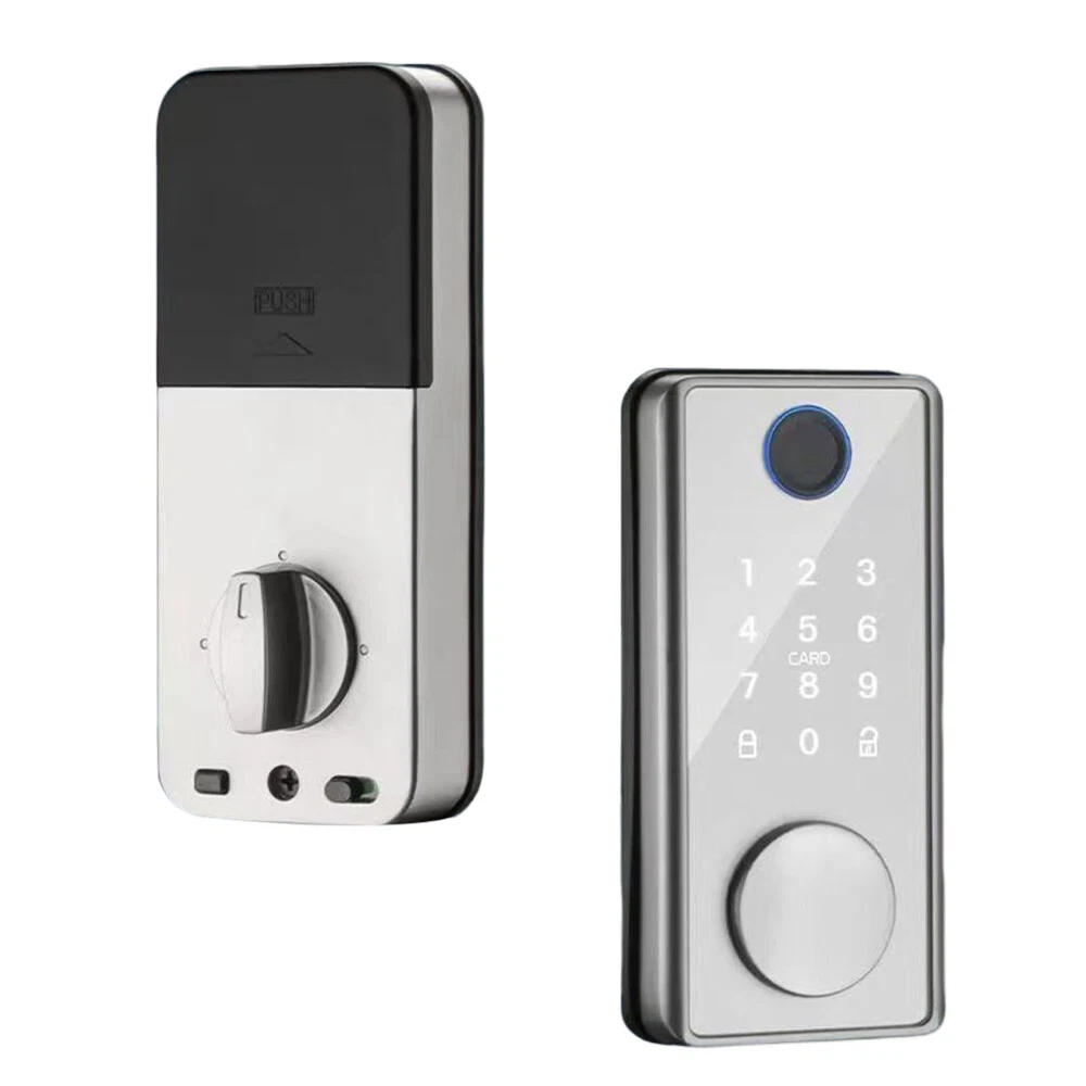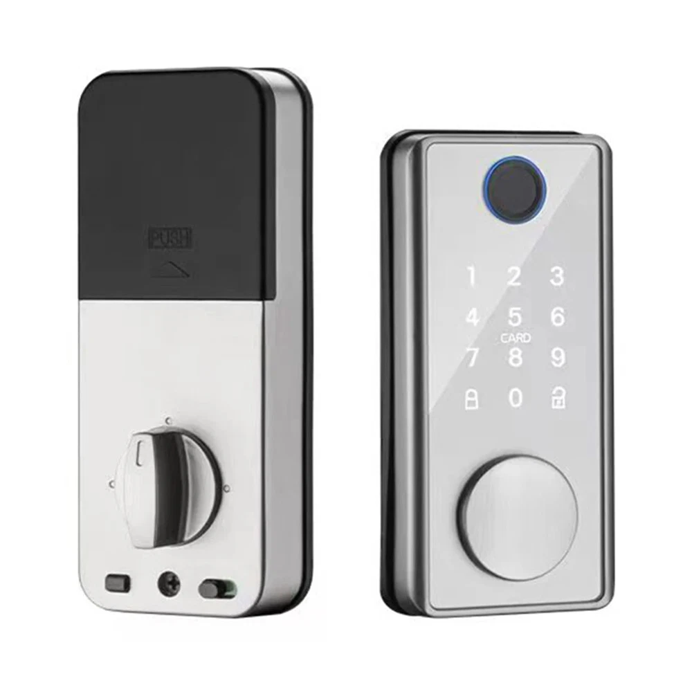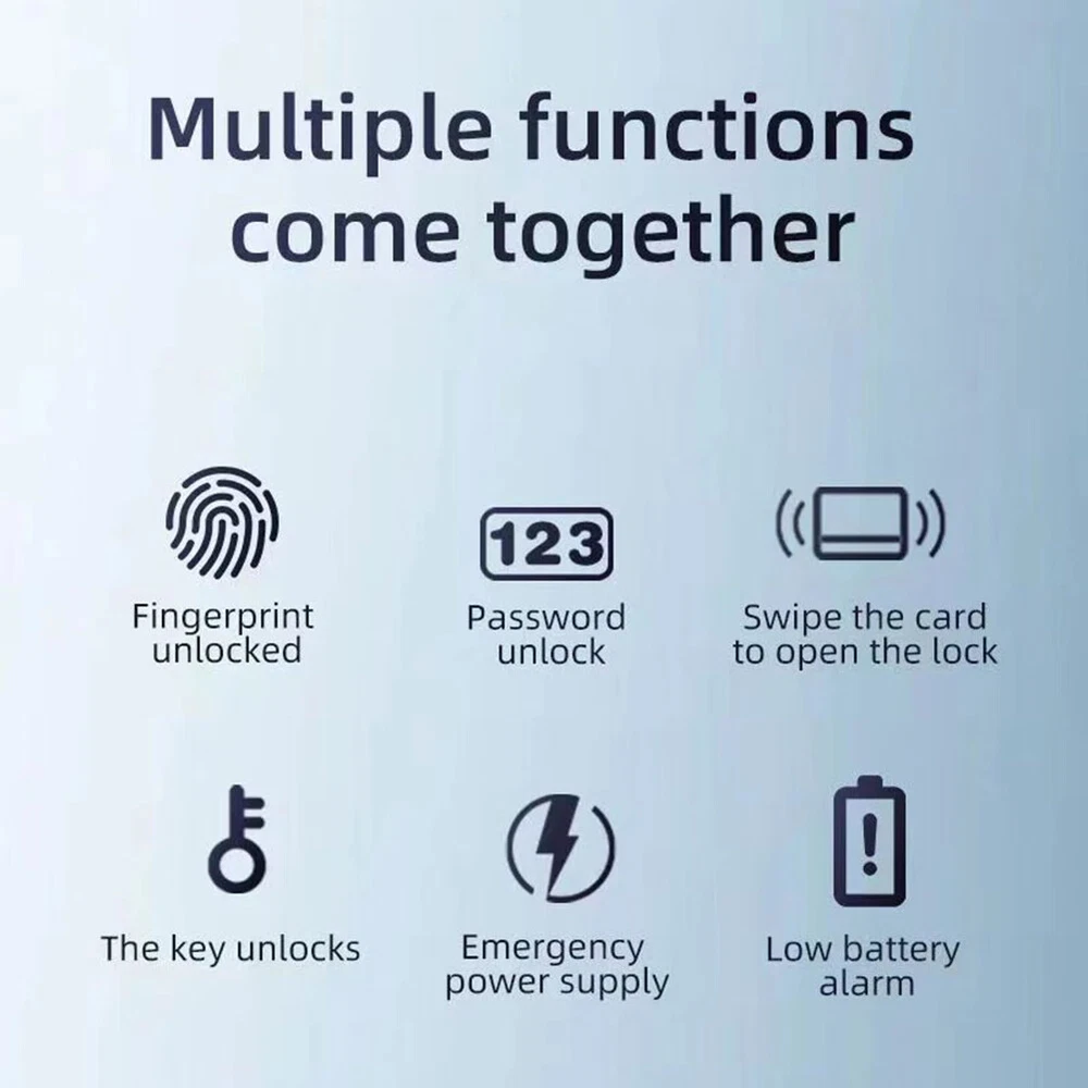 Desc ription Feature: 1. Multiple Unlocking Options: This smart door lock offers multiple unlocking options including Tuya app, 100 sets of passwords, 100 sets of fingerprints, 2x IC cards, and 2x keys, giving you the flexibility to choose the most convenient method for you to unlock your door. 2. Smart Tuya App: The Tuya app allows you to easily manage, monitor and control the lock remotely, and receive real-time alerts, including opening record, abnormal alarm, remote unlocking, etc. 3. Large Capacity: This lock has a large fingerprint capacity that can store up to 100 fingerprints and 100 sets of passwords, making it easy to add or remove user information as needed. 4. Quick and Accurate Unlocking: With its ergonomic design and semiconductor fingerprint sensor, this lock accurately identifies your fingerprint and unlocks in seconds, providing quick and easy access to your home. Also, when the battery is dead, you can use a backup key or connect a power bank via the USB Type-C port to temporarily supply power. 5. Anti-Peep Design: The anti-peep password entry system prevents others from stealing your password by allowing you to enter random numbers before or after the correct password, ensuring the security of you and your family's personal information. Specification: Product color: Silver, Black Model: DS01 Product material: aluminum alloy Product options: (optional) Style A: Fingerprint + password + card swipe + key Style B: Fingerprint + password + card swipe + Tuya Smart + ke y Fingerprint collector: semiconductor fingerprint head Unlock method: fingerprint/password/key/Tuya app User capacity: fingerprint/password/card (100 sets each) Number of administrators: 3 Function selection: wired door magnet/Tuya app Dynamic current: ≤ 60UA Quiescent current:>250mA Emergency power supply: USB Type-C interface Power supply: 6V (please choose alkaline 1.5V battery) (the product does not include batteries) Low voltage alarm: 4.7V ± 0.2V Relative humidity: 20%~90% Working temperature: -25 ° C~70 ° C Applicable door thickness: 35-85cm Applicable scenarios: indoor wooden doors/office doors/entrance doors/apartment hotel doors Size: about 168 * 67mm/6.61 * 2.63inch Note: Due to the different monitor and light effect, the actual color of the item might be slightly different from the color showed on the pictures. Thank you! Please allow 1-2cm measuring deviation due to manual measurement. Packages included: 1 x Smart door lock body 1 x Installation accessory kit 2 x Keys 2 x IC card 1 x Instruction manual
