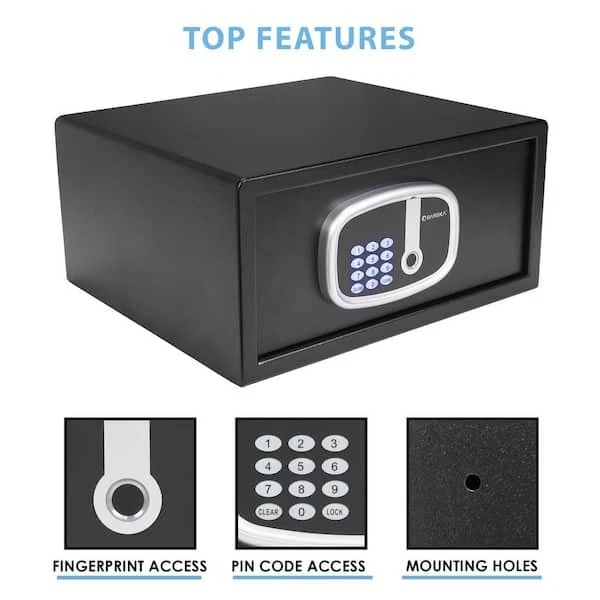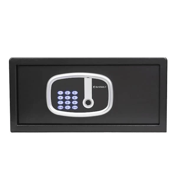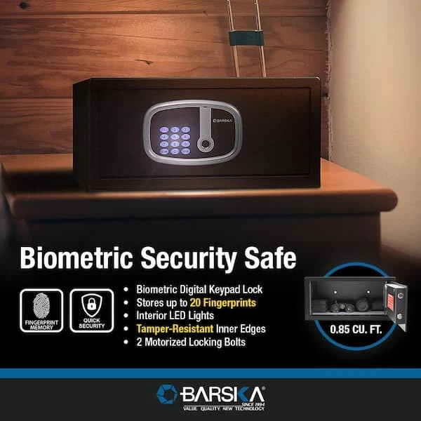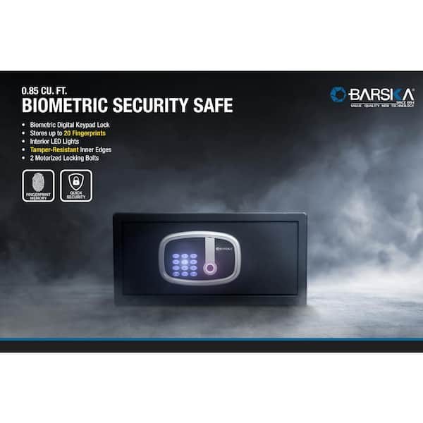Keep your valuables and belongings safe with the Biometric Digital Keypad Security Safe by BARSKA. The Biometric Digital Keypad Security Safe features an all-new module that combines both a biometric fingerprint scanner and LED illuminated digital keypad. Store up to 20-fingerprints and 1-PIN Code into the memory bank. The advanced biometric identification system will only recognize the fingerprints that have been programmed into the safe and the PIN Code acts as a backup in case the safe needs to be accessed by someone whose fingerprint has not been registered. The Biometric Digital Keypad Security Safe by BARSKA is the perfect storage solution for small electronics, jewelry, medicines, important documents and countless other valuables. Comes complete with mounting hardware, a set of 2-back-up keys, protective floor mat and 4-AA batteries. Built with tamper-resistant edges and 2-motorized locking bolts, the Biometric Digital Keypad Security Safe is designed to deter theft and protect your valuables.