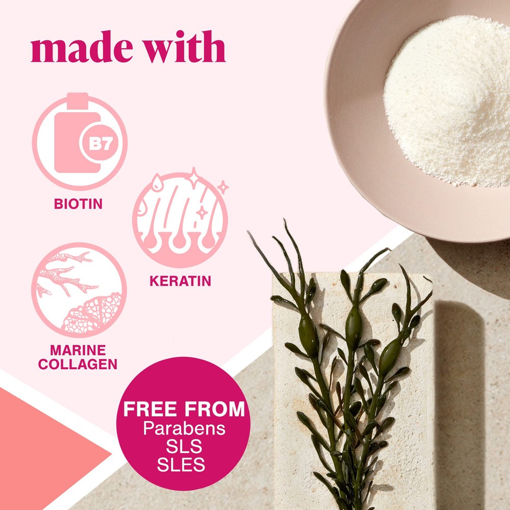 At , we understand the science of healthy hair growth form the inside out. Thickening Shampoo, formulated with hair building blocks Biotin and Keratin, and fortified with Collagen and Seaweed extract, strengthens and reduces breakage leading to naturally fuller, thicker, healthier looking hair*. For best results, nourish your hair from within with Hair Supplements. Gently cleanses the hair and scalp, leaving your hair thicker, fuller, and healthier-looking with less breakage Floral fresh signature fragrance infused with lush greens, dewy florals, and hints of ocean breeze Includes a proprietary complex that contains seaweed, collagen, biotin, and keratin Suitable for everyday use and all hair types Use in conjunction with Strengthening Conditioner