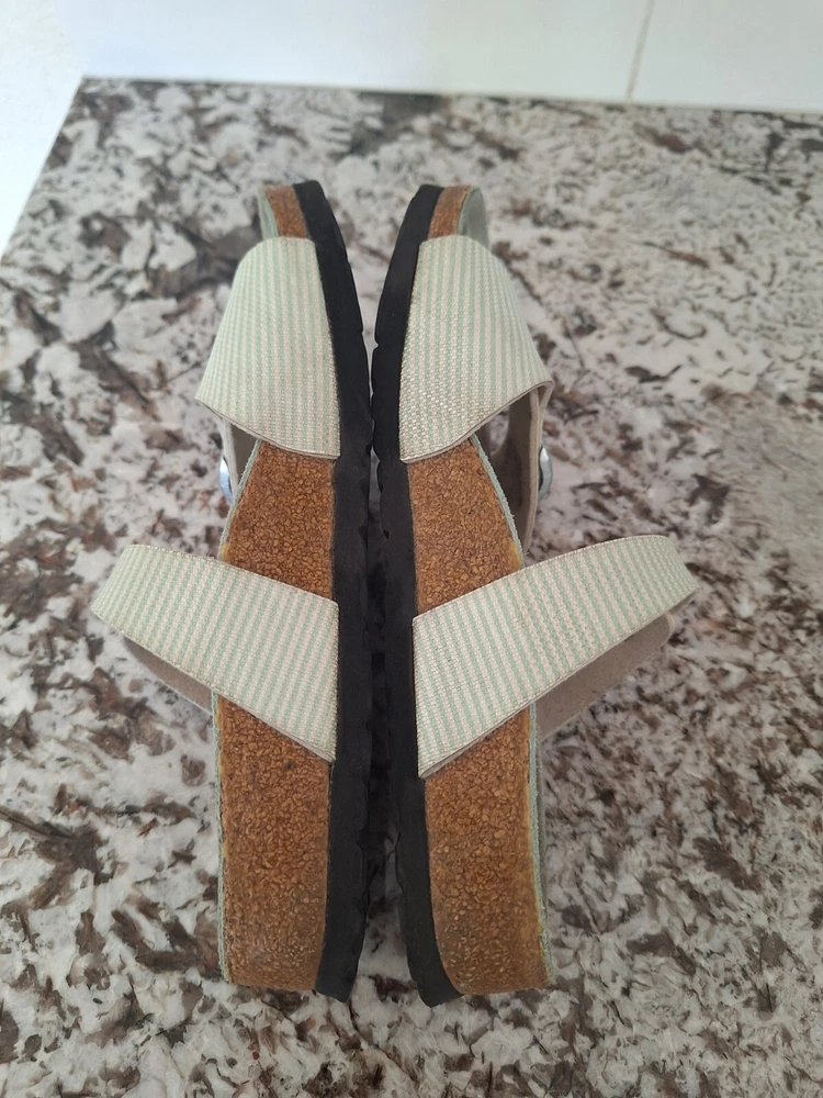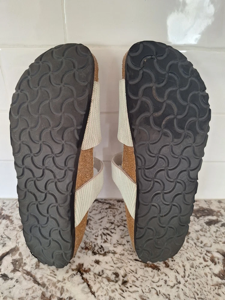 These Sandler run smaller that the stated size. This could be due to the brand possibly. Condition 10/10. Packaging 10/10. Time of arrival 10/10. Over all my experience with this seller 10/10. I’d buy again from seller.