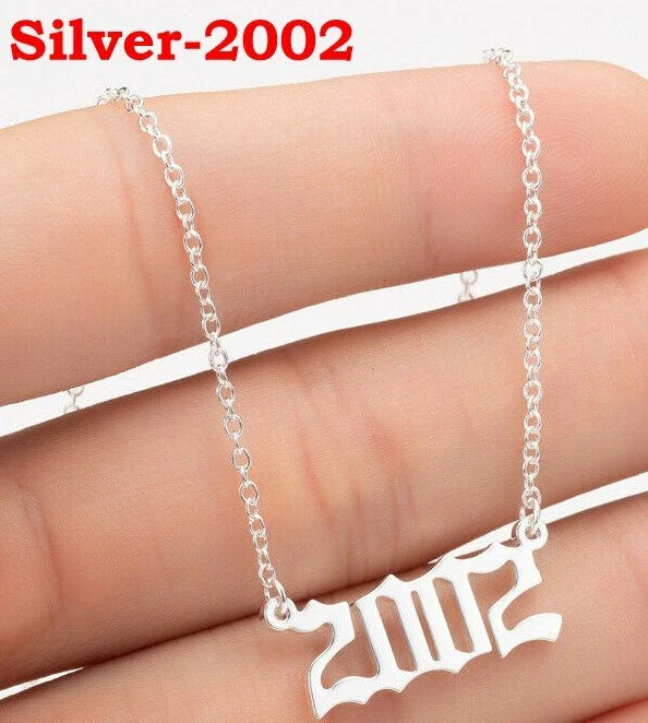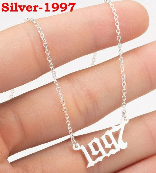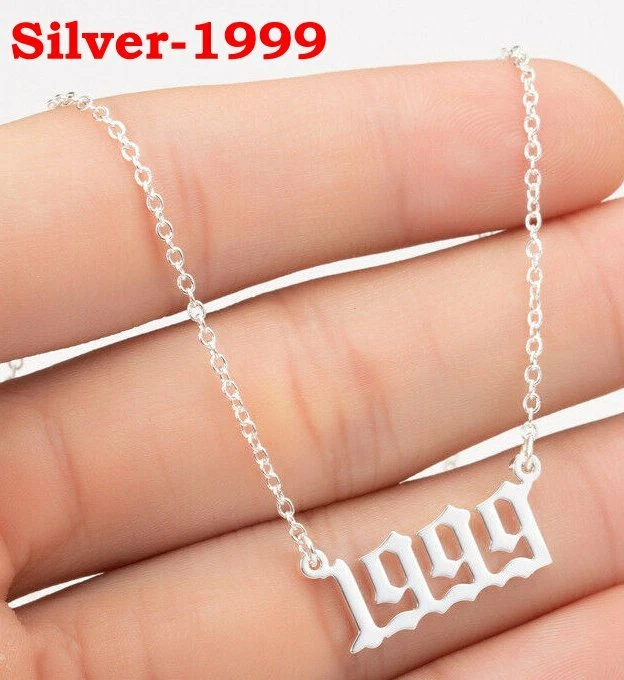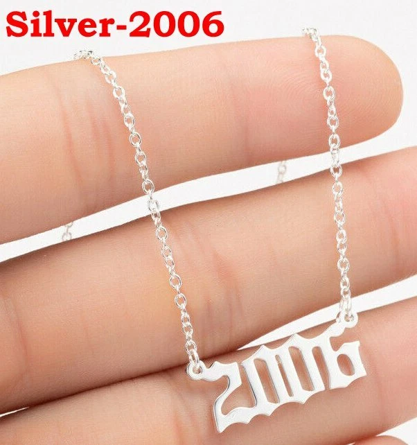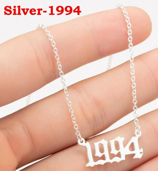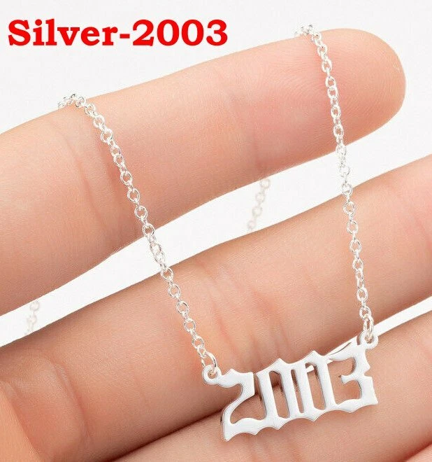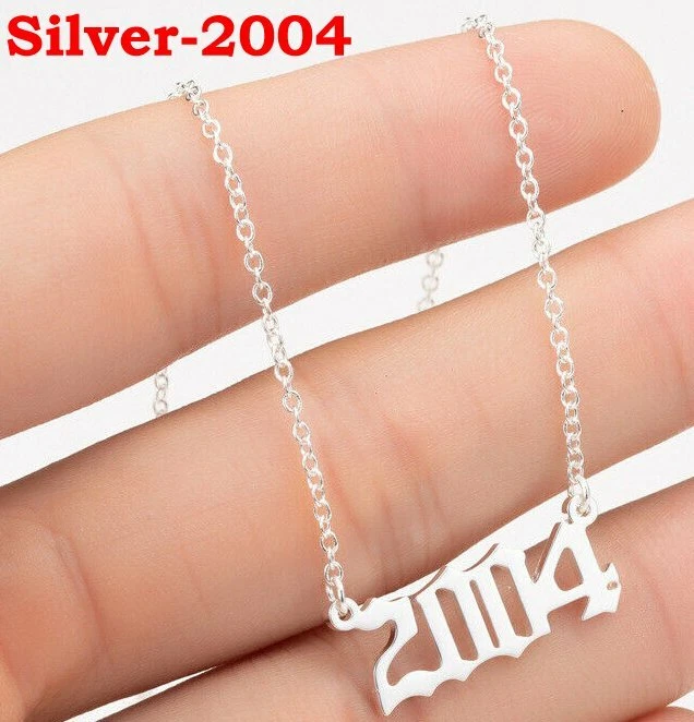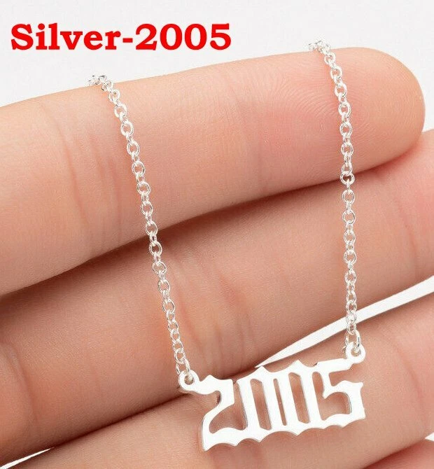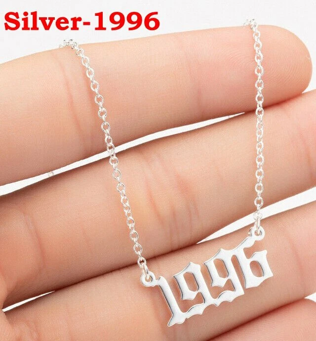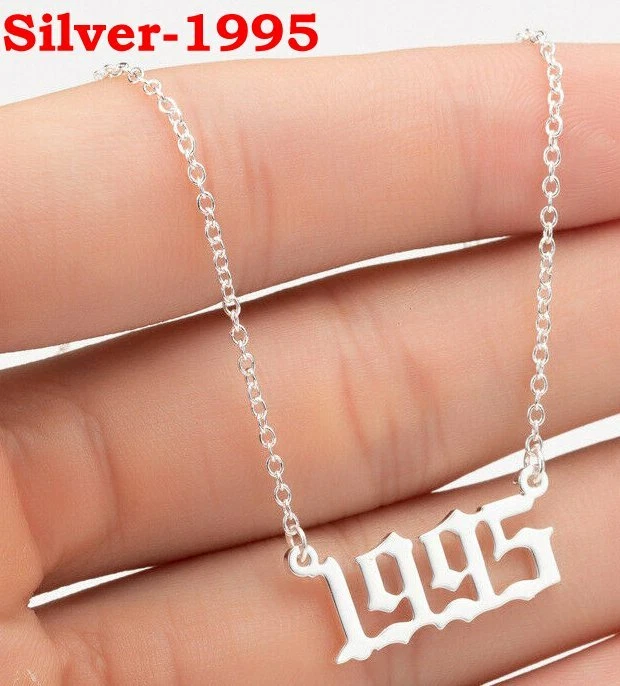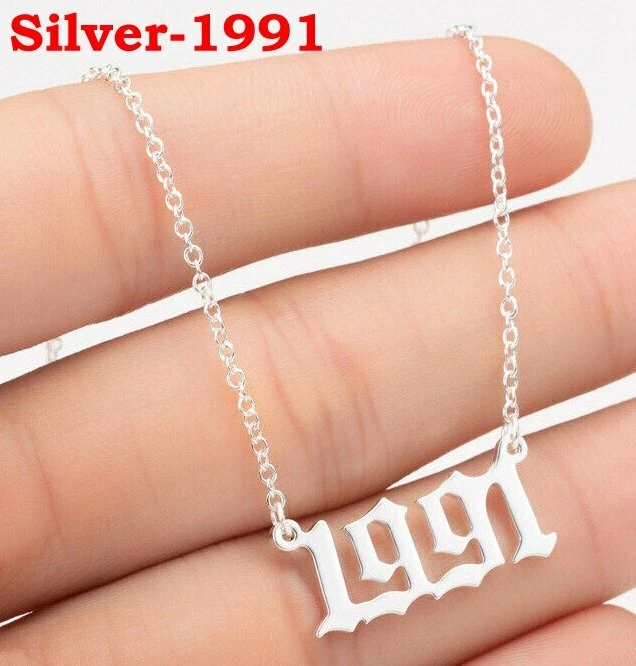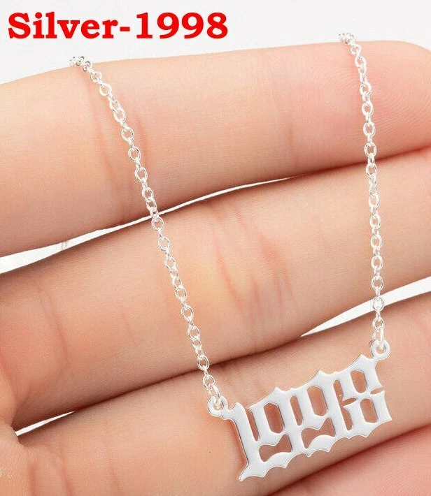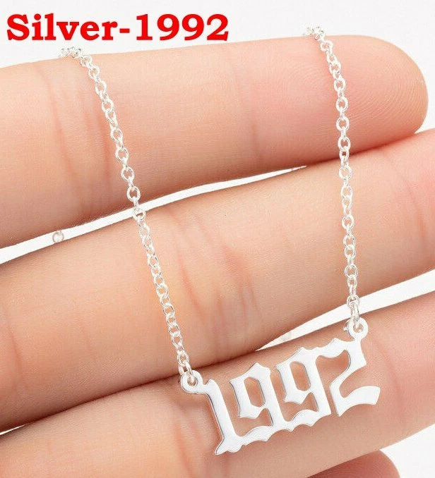 BIRTH YEAR NECKLACE Material: Stainless steel Color: Silver Package includes: 1* necklace Size: The year is roughly 2.4 cm x 1.2 cm. Please see picture #4 & #5 Font: Old English Year: 1990 to 2007 SPECIAL PROMO -- BUY MORE SAVE MORE! Save 40% when Buy 2+ (discount automatically apply during checkout) Ships from USA and free shipping anywhere in the U.S