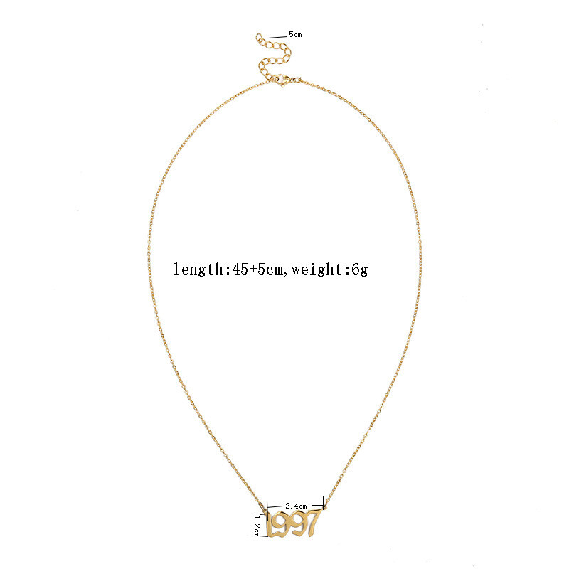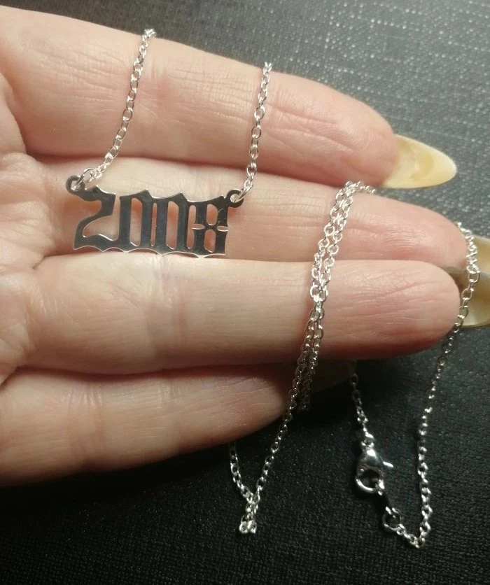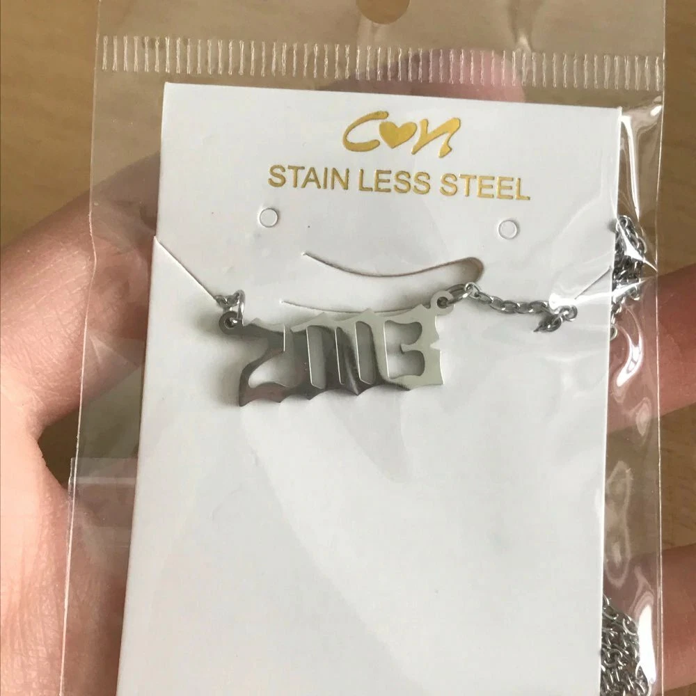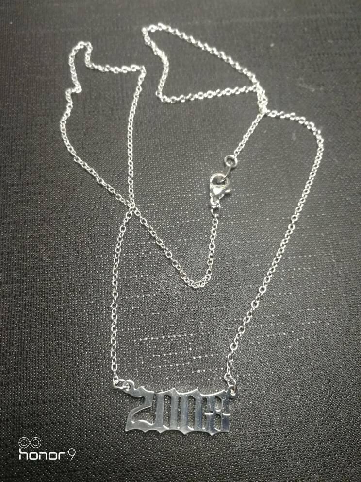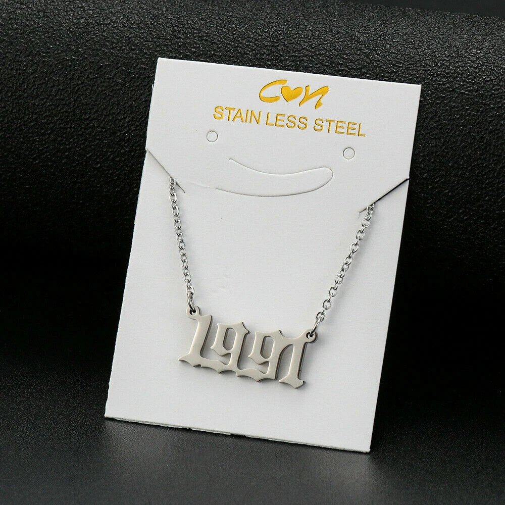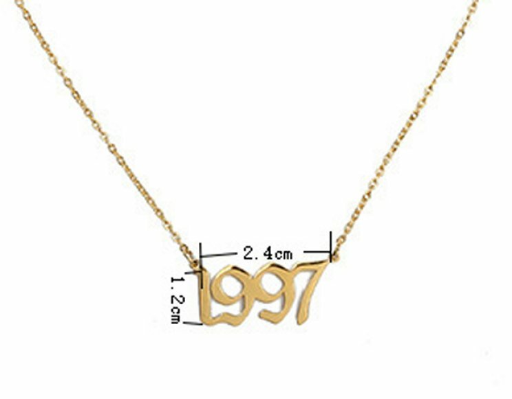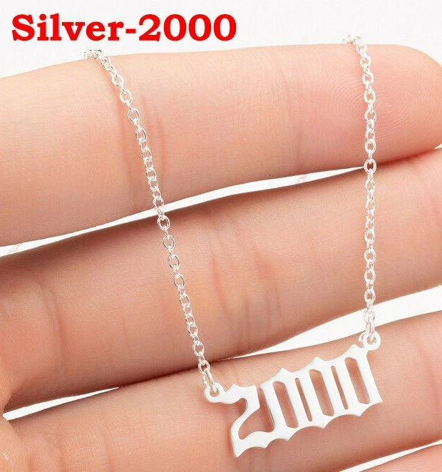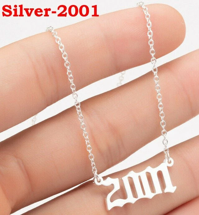 BIRTH YEAR NECKLACE Material: Stainless steel Color: Silver Package includes: 1* necklace Size: The year is roughly 2.4 cm x 1.2 cm. Please see picture #4 & #5 Font: Old English Year: 1990 to 2007 SPECIAL PROMO -- BUY MORE SAVE MORE! Save 40% when Buy 2+ (discount automatically apply during checkout) Ships from USA and free shipping anywhere in the U.S