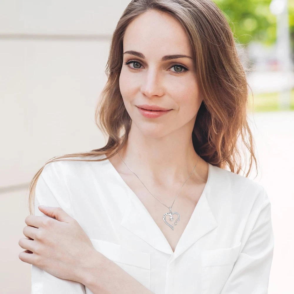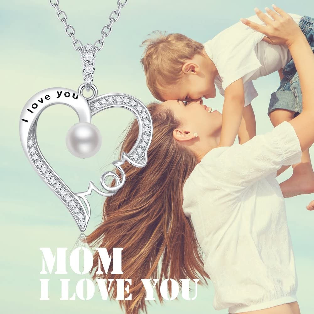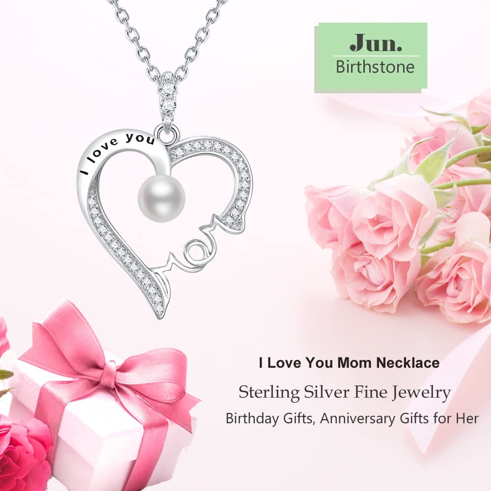 Birthday Gifts for Mom June Birthstone White Pearl Jewelry I Love You Mom Love Heart Pendant Sterling Silver Necklace for Mother ❤️ June Birthstone Necklace - Unique design love heart pendant setting with June birthstone pearl stone with changeable chain, the length adjustable from 18" to 20". ❤️ I Love You Mom Necklace - Heart always Love Symbol express your love to mother. June Birthstone setting in the center of unique designed love heart pendant means "You are the Only one in my heart". ❤️ Birthday Gifts for Mom - Comes in pretty jewelry box. Perfect gift ideas for mom, wife for birthday, christmas, mother's day and any special events. ❤️ Anniversary Gifts for Wife - The meaningful MOM necklace is a great gift for mom and wife as birthday, christmas, mothers day gifts. ❤️Love Heart Pendant Size - The love heart pendant size is 0.8x1.05" ( 20x26.5mm). The changeable chain length is adjustable from 18" to 20". Both pendant and chain made of solid sterling silver.