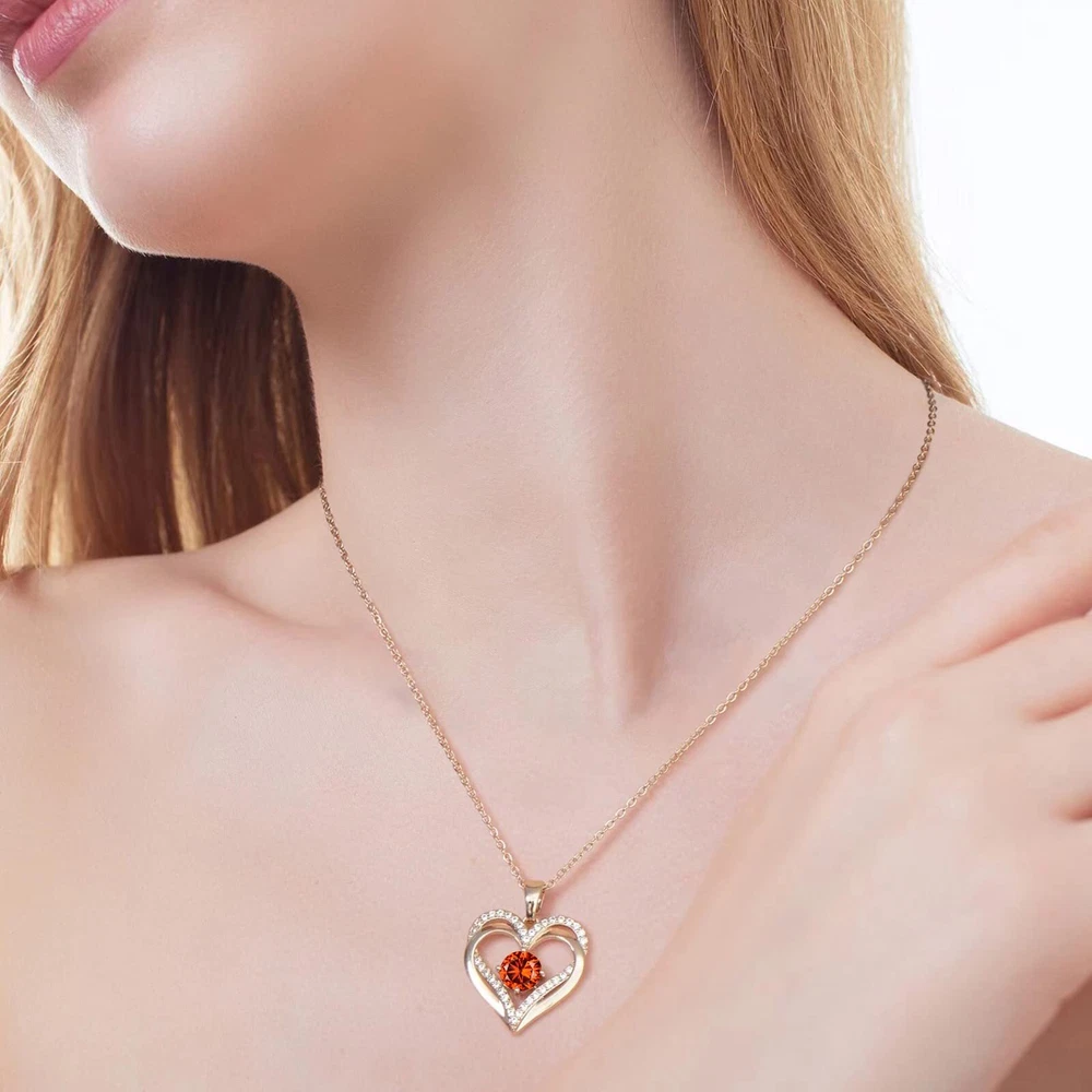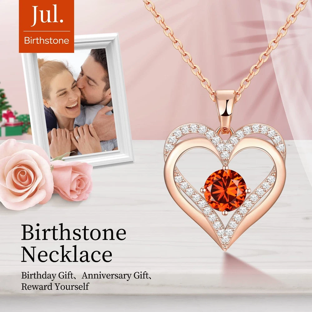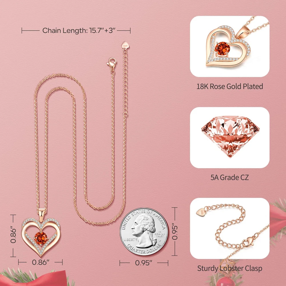 Original Design: The double heart design symbolizes love for each other, no words are needed between the two hearts;Heart birthstone necklace strengthens your love and is the choice to express your love for her on every meaningful day 18K Rose Gold Plated Jewelry Necklace: The pendant and the chain are made of 925 sterling silver with rose gold plating; These safe materials are hypoallergenic and antioxidant and won't rust, fade, corrode, tarnish or turn your skin green; Pendant size: 0.98"x0.86"; Zirconia Size: 0.2"x0.2" Necklace length: 15.7"+3" 5A Grade Cubic Zirconia: This jewelry gift for women is made of Exquisite material, prong inlaid with small round high luster CZ birthstones, shiny and dainty Gifts For Your Love: This diamond jewelry necklace is a unique gift for Mom, Grandma, Sisters, Daughters, Wife, Girlfriend, Friends, and other people you love on Birthdays, Anniversary, Graduation, Wedding, Mother's Day, Valentine's Day, Thanksgiving, Christmas, etc Gifts Packaing: The necklace comes in an elegant jewelry box and gift bag, ready to give. Please get in touch with us if you need more assistance