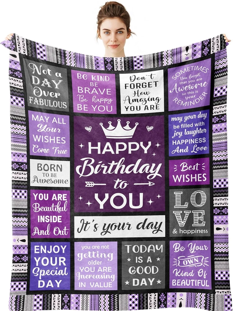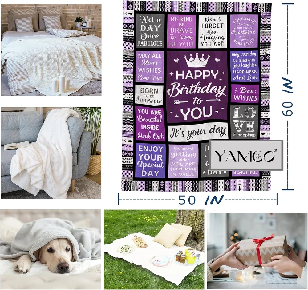 Store New Arrivals Add to Favorite View Feedback Contact Fast deliveries to the customer's home Quality customer service John Make the customers happy! Birthday Gifts for Women - Happy Birthday for Woman Throw Blanket 60"X50" - Women'S Birthday Gifts Unique - Cool Presents for Her Birthday - Female Bday Gift Ideas Friendship - Bday Decorations Description 【MATERIAL DESCRIPTION】: Made Of Non-Pilling Fleece, More Comfortable And Warm. Does Not Absorb Any Moisture. Lightweight, And Can Be Folded Compactly. Super Soft And Completely Resist Shrinkage And Wrinkles. 【SIZE DESCRIPTION】: There Are 60x50 Inches for Birthday. 【HAPPY BIRTHDAY】:Sometimes You Forget That You Are Awesome So This Is Your Reminder, Don't Forget How Amazing You Are. Today Is A Good Day, May All Your Wishes Come True, Enjoy Your Special Day. Happy Birthday To You! 【APPLICABLE SCENE】: The Blanket is Easy To Carry, Is Very Suitable For Indoor And Outdoor Use In Cold Weather (Especially During Camping And Picnic) Provide Continuous Warmth, And It Is Also Very Suitable For Lying On A Bed, Sofa, Car, And Office, Etc. Whether Summer Or Winter. 【PERFECT GIFT】: When You Bring This Birthday Throw Blanket For Your Bestie, Mom, Grandma, Sisters, Daughter, Granddaughter, Best Friends, Wife, Girlfriend, And More, It Will Be A Cool Gift For Her Birthday. Wishing Her Day Be Filled With Joy, Laughter, Happiness And Love. Design Description: Full-Width Printing, Single-Sided Printing, Clear Printing. It's Wrinkle And Fade Resistant, Doesn't Shed And Is Suitable For All Seasons. Size Description: There Are Three Sizes To Choose From, 50 X 40 Inches Suitable For Children, 60 X 50 Inches For Teens, 80 X 60 Inches For Adults. Product Performance: The Blanket Is Constructed Of High-Quality Flannel That Is Soft To Touch, Supple, Easy To Care For, And Lightweight, More Comfortable And Warm. Does Not Absorb Any Moisture. Lightweight, And Can Be Folded Compactly. Super Soft And Feels Great, Non-Wrinkle, Non-Allergic, Non-Replaceable Feature, Very Suitable For Those Who Are Prone To Allergies And Discomfort! Applicable Scene: Bed Sofa, Couch, Bedroom, Living Room, Guest Room, Kids Room, Rv, Vacation House. It Is Also Perfect Use For Family Outdoor Activity, Camping, Cinema, Traveling, Sports And Beach. Multi-Function Use: Be Used As Wearable Blanket, Sofa Blanket, Bed Blanket, Travel Blanket, Picnic Mat, Etc. The Outside Has Super Soft High-Quality Fabrics, And The Inside Is White. It Will Be A Special Gift On A Birthday, Christmas, New Year's Day, Thanksgiving, Or Others, And Bring Fun To Your Family, Friends, and Classmates. Easy To Care: It Is Any Washable And Dryable For Easy Care. No Shrinkage, No Colour Fading, And No Unravelling After Washing. Romantic Gift: Give The Blanket To Your Family Or Friends As A Gift. They Will Be Happy! It Will Be A Great Gift For Birthdays, Anniversary, Graduation, Christmas, Valentine's Day, Mother's Day, Father's Day, New Year's Day, Thanksgiving, And Other Festivals. Style Unique Product Dimensions 60"L x 50"W Color Purple Pattern Letter Print Material Polyester Country of Origin China Item Weight 15.8 ounces Theme Birthday Age Range (Description) ALL Size 60" x 50" Special Feature Skin Friendly, Soft Fabric Type Polyester ABOUT US We offer the best prices around on high quality products. Our E-store includes media such as books, movies, music and games while offering electronics, toys, sporting apparel, clothing, tools, general home, garden items and more. SHIPPING We are always working hard to ensure your package arrives as soon as possible. Please understand that some factors like weather, high postal traffic, and the performance of shipping companies are outside of our control. We offer free shipping to the lower 48 states and ship within 2 business days of payment, usually sooner. We do not accept P.O. Boxes. Please provide a physical address. For shipping outside of the continental USA, we only use eBay's Global Shipping Program. The item is shipped to KY and then sent to the rest of the world. International customers are responsible for all duties and taxes. Continue to 'check out' to calculate costs for shipping the item to your country. Messages regarding eBay's Global Shipping Program MUST be directed at eBay EXCLUSIVELY. RETURNS We offer a 30-Day Return Policy on items in which you are not completely satisfied with. You have the option of a full-refund or an exchange of the item. No returns are available on items shipped outside of the USA PAYMENT We accept PayPal. CONTACT US This page content is yet to come Please ad us to your favorite seller and visit again later Thank You CUSTOMER SATISFACTION We try our very best to make sure every customer is completely satisfied. If there's a problem, message us! We're happy to help. WE ACCEPT