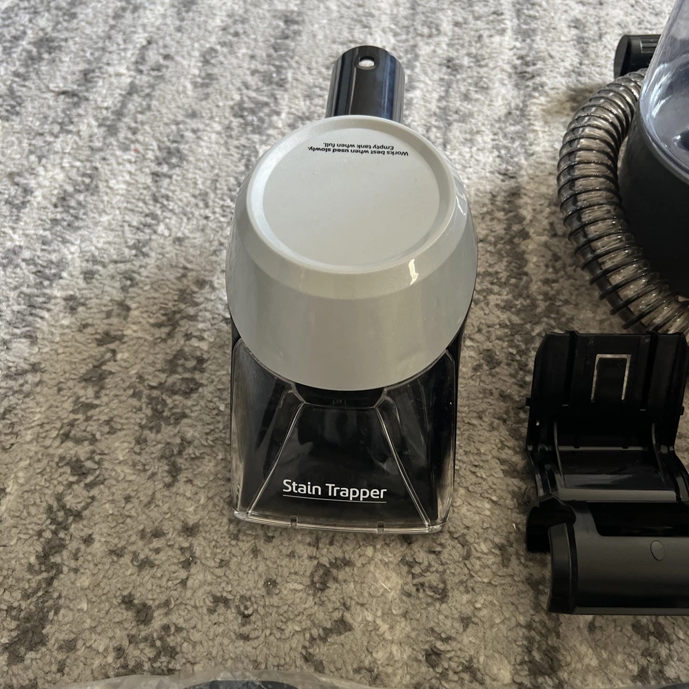 The Bissell SpotClean Carpet Cleaner Portable Model 97494 is a vintage retro mid-century collectible item that allows for portable and convenient spot cleaning of carpets. This compact and lightweight cleaner is perfect for reaching tight spaces and removing stubborn stains without the need for a large, bulky cleaning machine. Ideal for collectors or those looking for a simple solution for occasional carpet cleaning, this Bissell SpotClean model offers a unique and nostalgic approach to keeping carpets fresh and clean. Used one time.