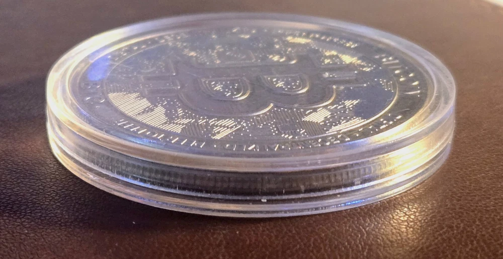Not brand new. Got as a fun gift. This commemorative token is a must-have for any crypto enthusiast. The silver-colored coin features the iconic Bitcoin logo and is made of iron. Its certification status is uncertified, and it is unknown if it is circulated or uncirculated. This novelty souvenir coin is perfect for collectors and fans alike. Add it to your collection today!
