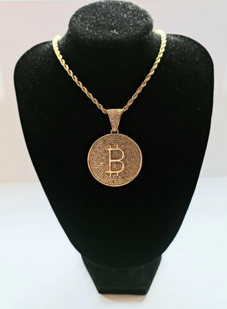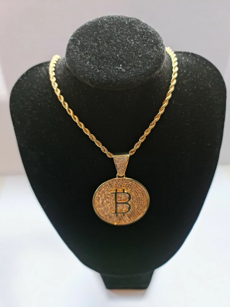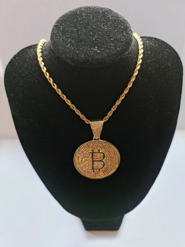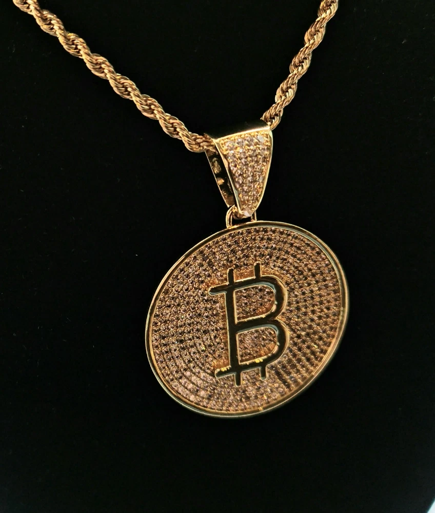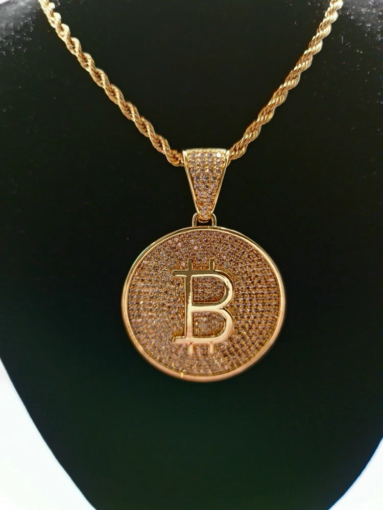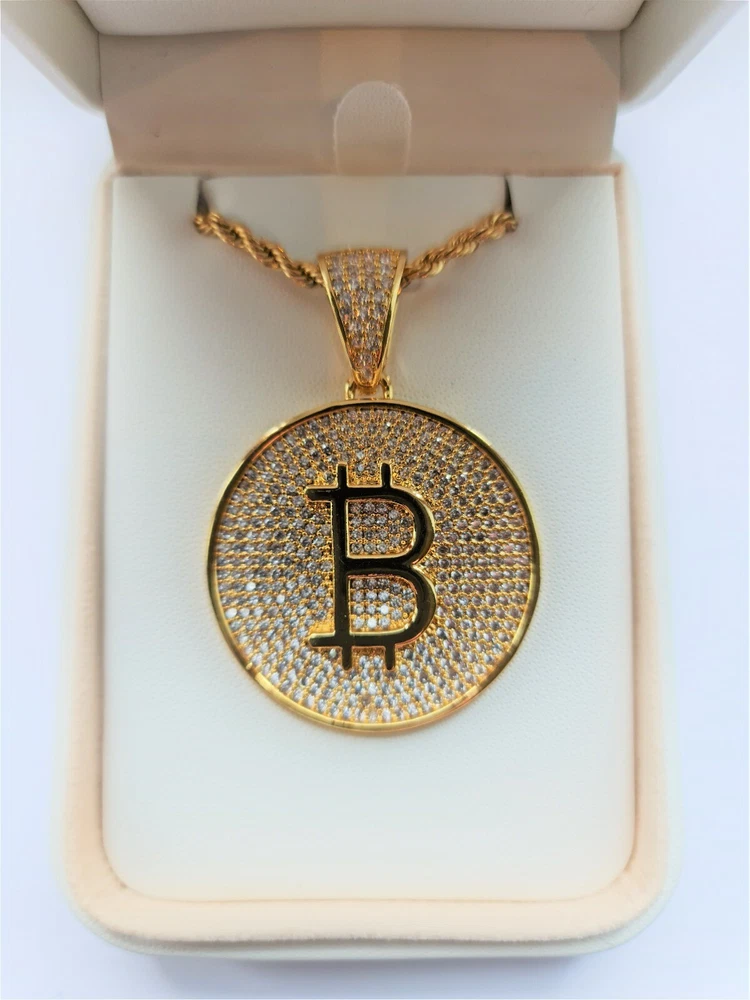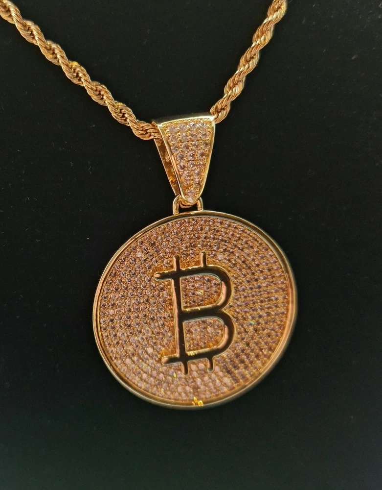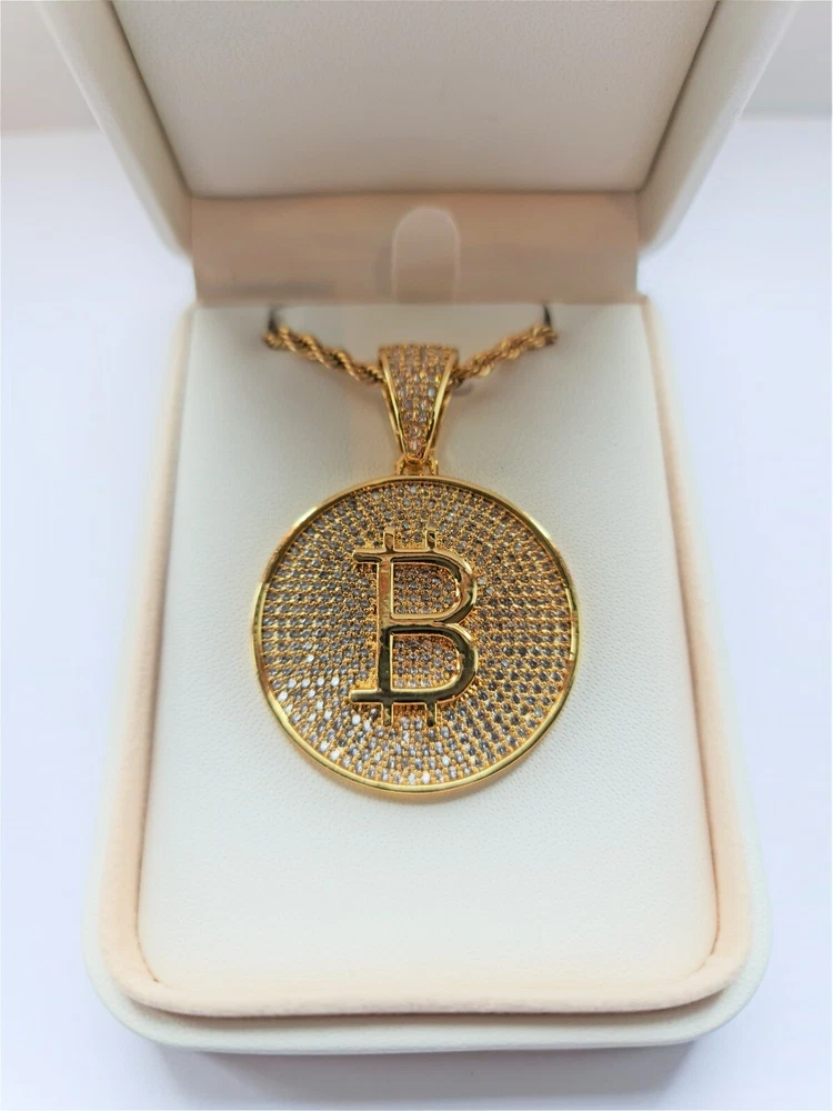 Bitcoin Cryptocurrency Pendant Necklace Gold Plated -Bitcoin B Large with Zircon Product Specs: Colour: Bitcoin pendant gold Style: European and American Type: Pendant Style: Unisex Pendant material: Gold-plated inlayed with zircon stones Pendant Circumference: Large 37mm Chain Length 24inch Comes complete with Pendant Box "In Bitcoin We Trust" Worldwide Shipping Available