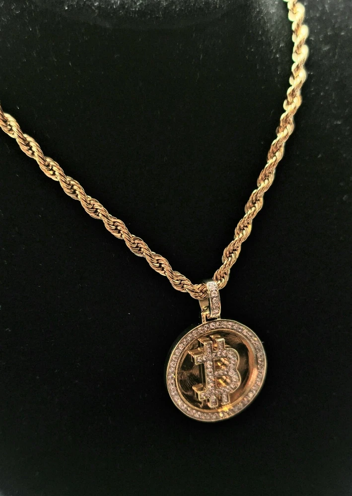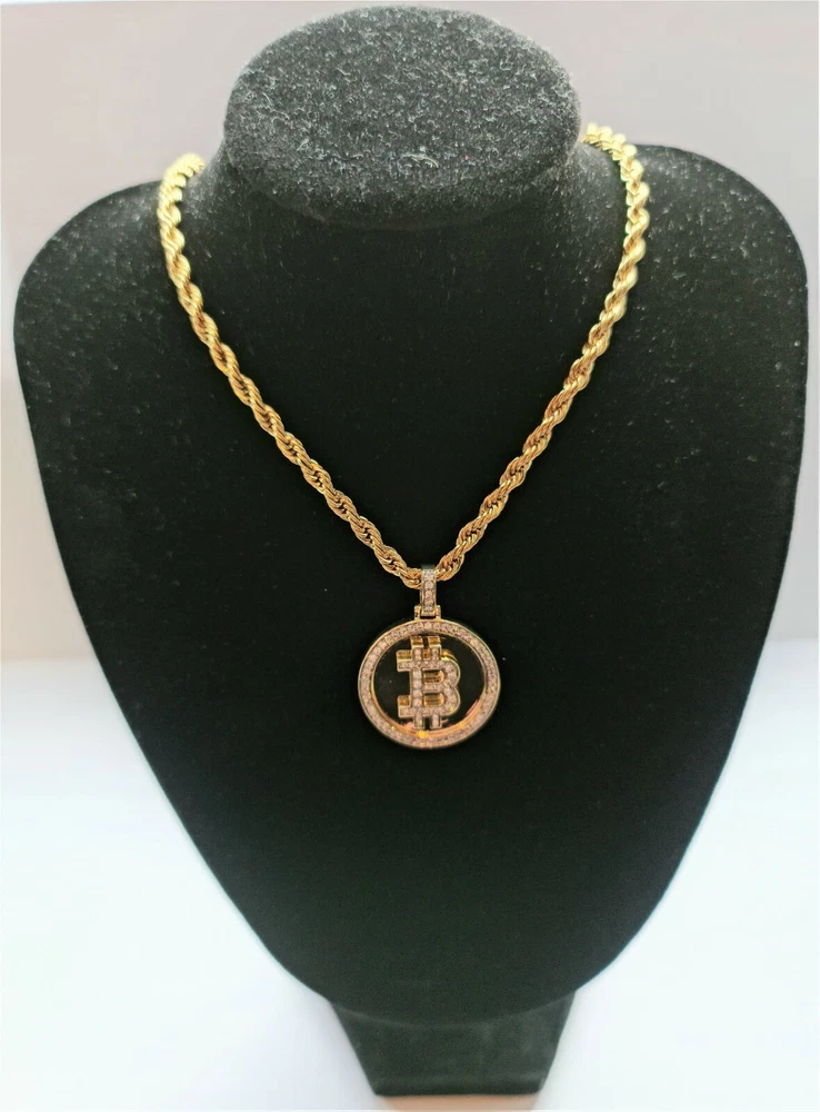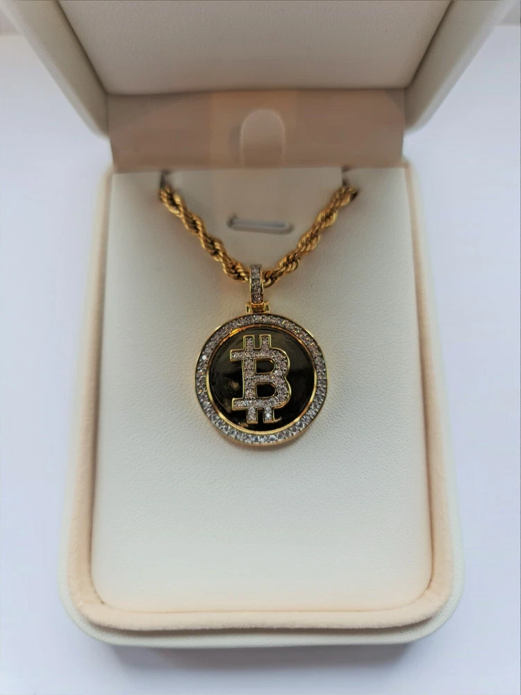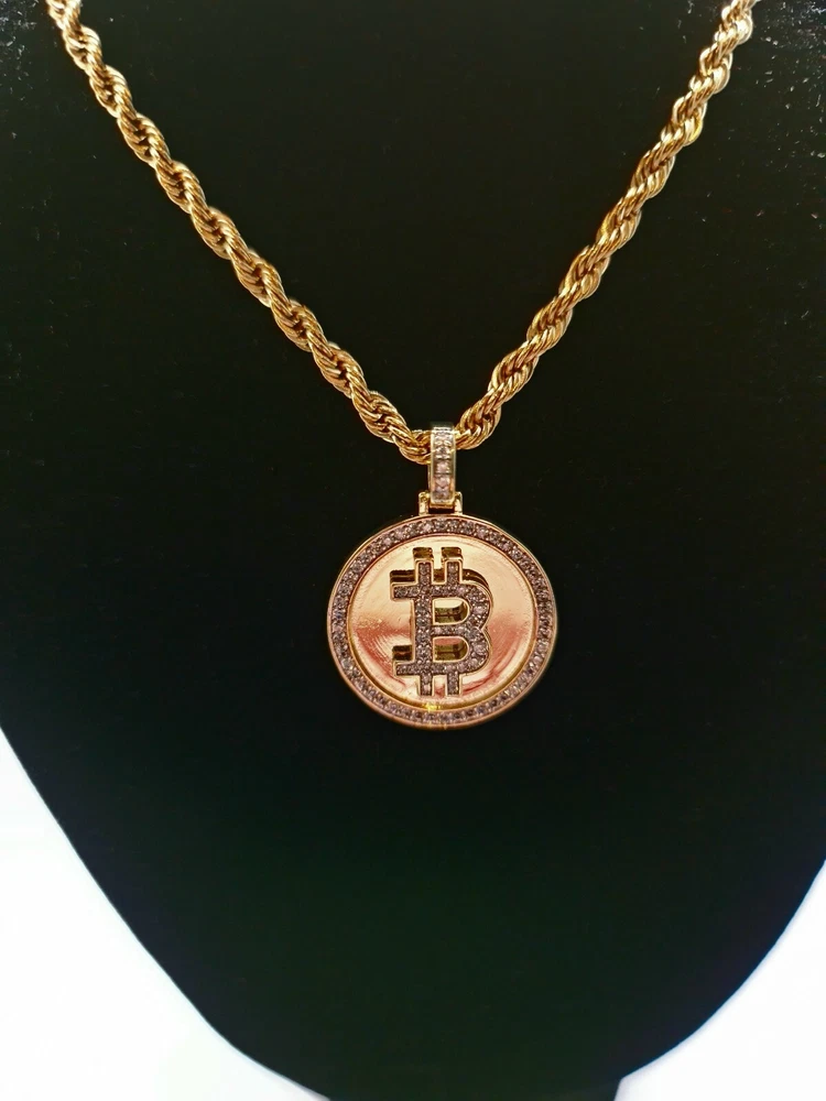Bitcoin Cryptocurrency Pendant Necklace Gold Plated - Bitcoin B with Zircon Product Specs: Colour: Bitcoin pendant gold Style: European and American Type: Pendant Style: Unisex Pendant material: Gold-plated inlayed with zircon stones Pendant Circumference: 25mm Chain Length 24inch Comes complete with Pendant Box "In Bitcoin We Trust" Worldwide Shipping Available