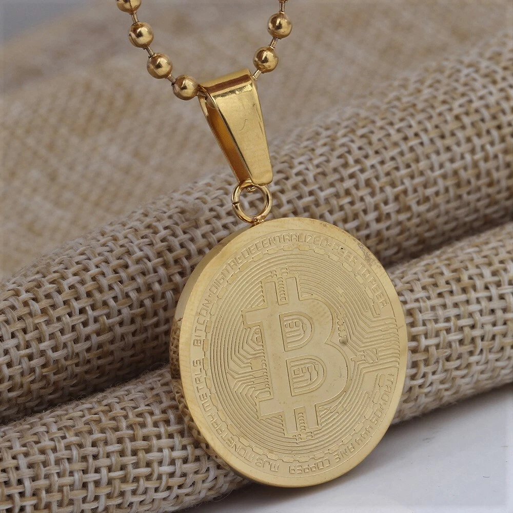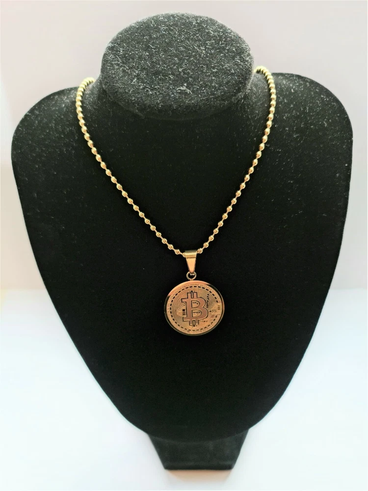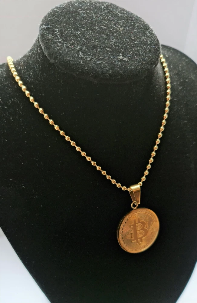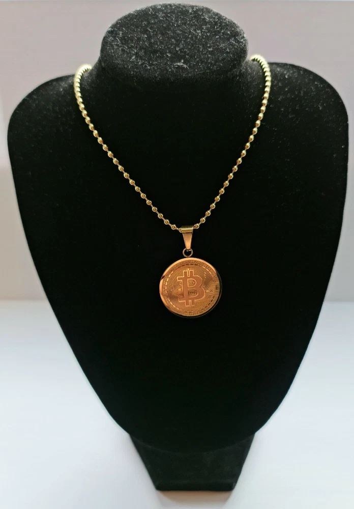 Bitcoin Cryptocurrency Pendant Necklace Gold Plated - Bitcoin B Product Specs: Colour: Bitcoin pendant gold Style: European and American Type: Pendant Style: Unisex Pendant material: Gold-plated Pendant Circumference: 25mm Chain Length 24inch Comes complete with Pendant Box "In Bitcoin We Trust" Worldwide Shipping Available