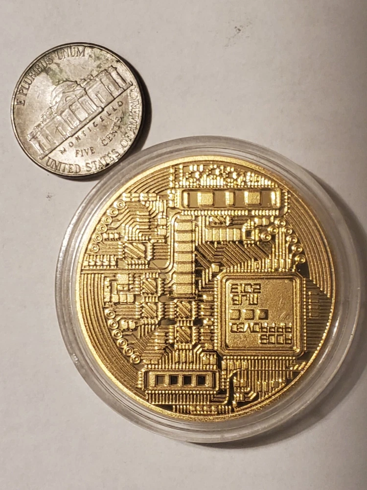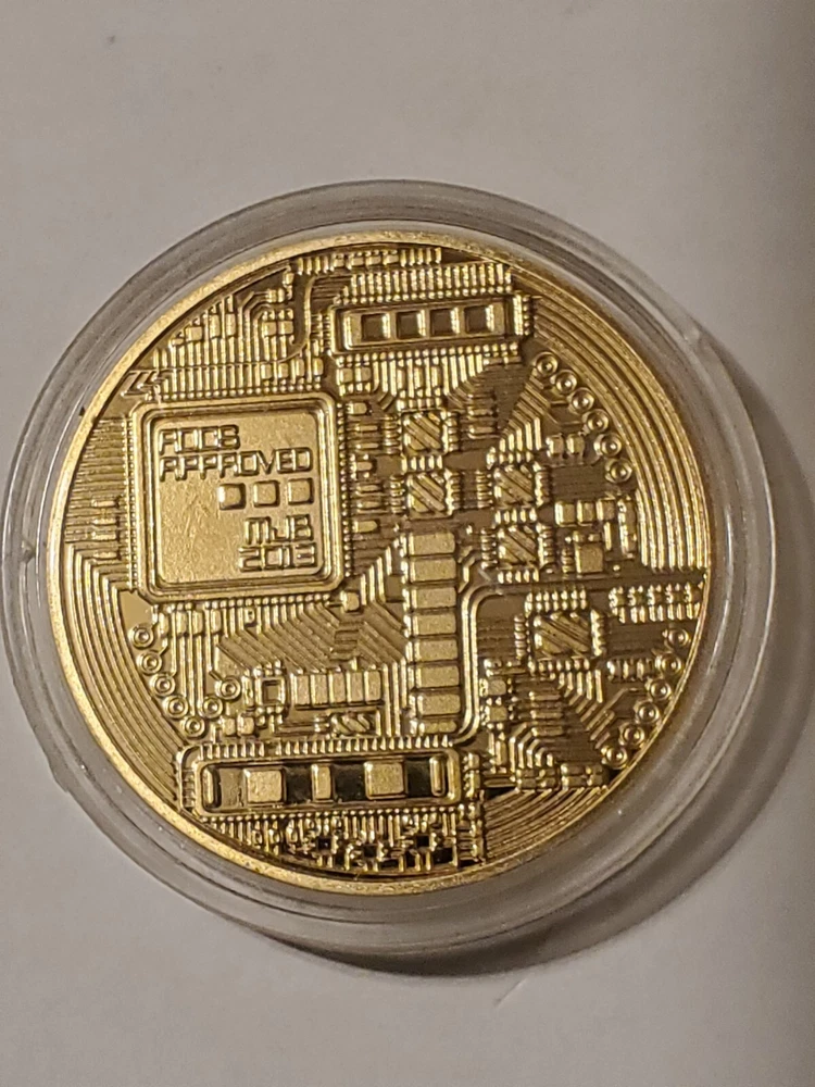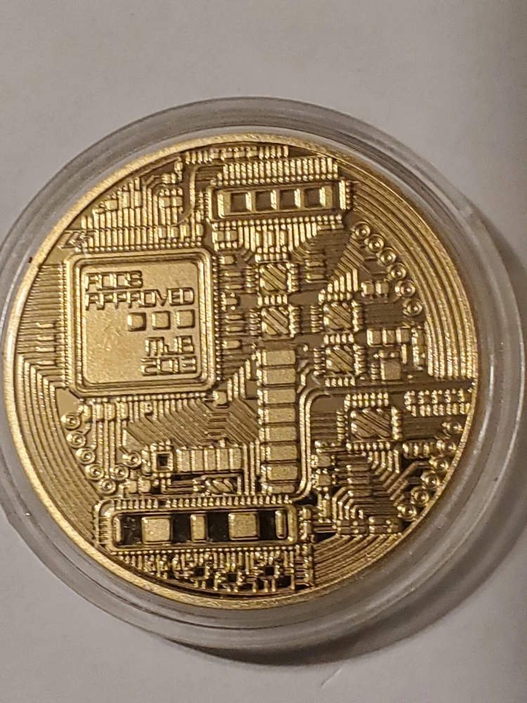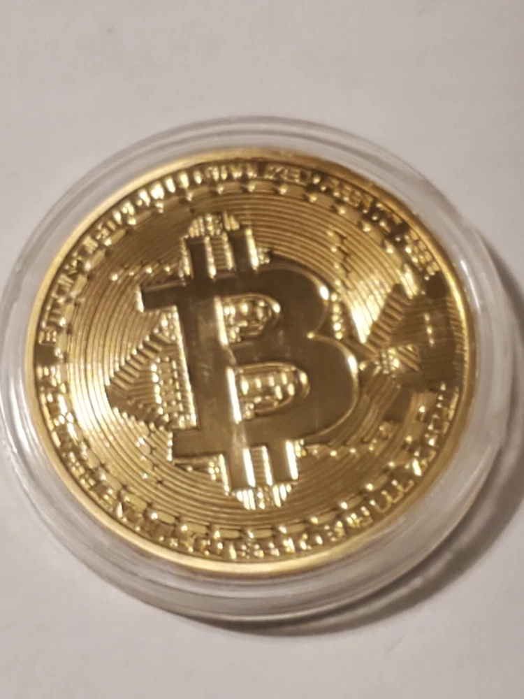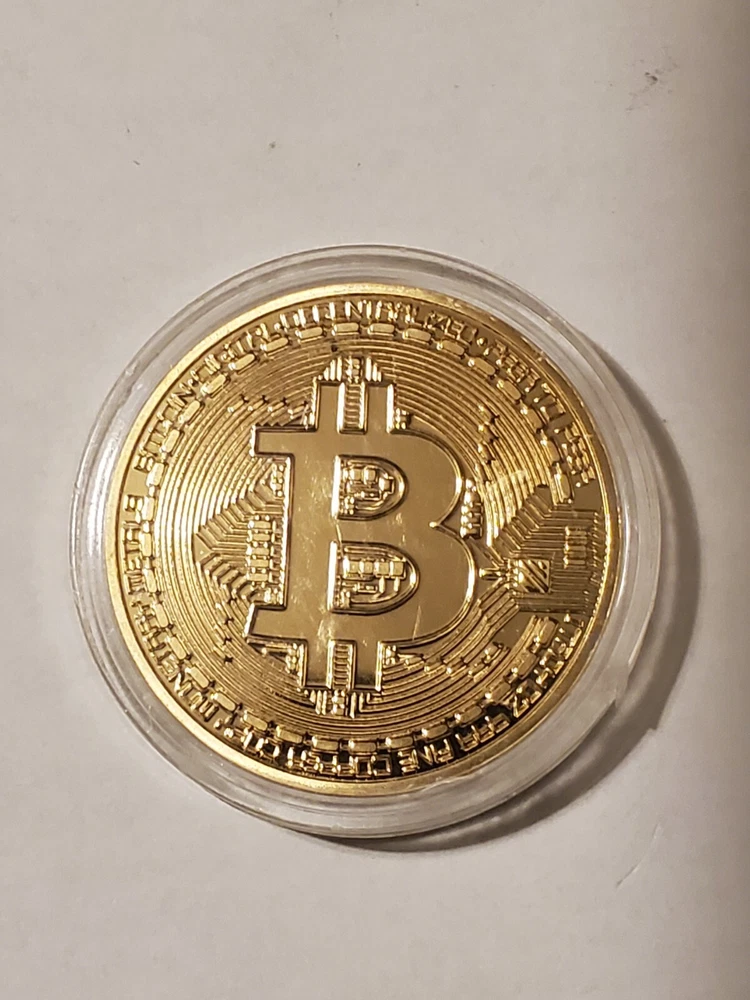 Bitcoin Gold Plated BTC Crypto Collectible Cryptocurrency Coin Round w/case.
