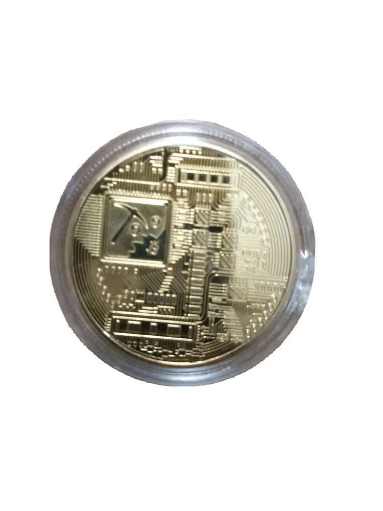 Physical metal bitcoin token, cryptocurrency collectible coin with gold plated color Diameter 40 mm, Thickness 3 mm, Weight 1.0 oz Comes in individual acrylic coin protective cover holder Perfect for collections, displays, and gift giving