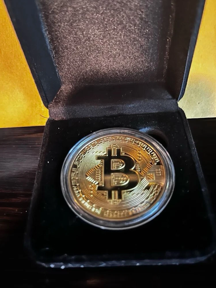 This is a one-of-a-kind collectible coin featuring physical Bitcoin BTC cryptocurrency. The coin is gold plated and comes in a protective case. It is a must-have for any virtual and crypto collector. The design showcases the iconic Bitcoin logo and is sure to impress. This item is perfect for display or as a valuable addition to any collection.