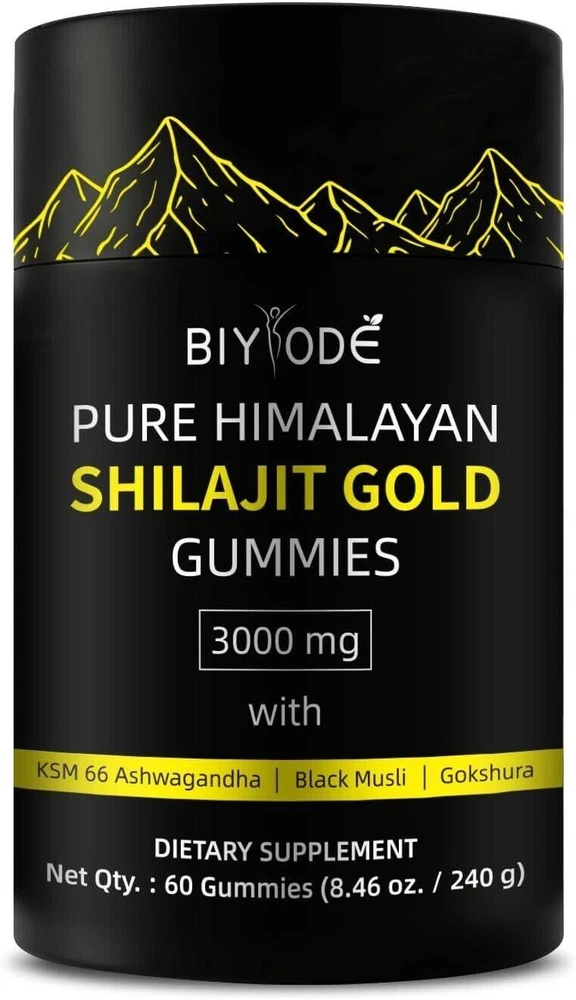 CONTACT US DIRECTLY FOR FREE & PREPAID RETURNS Biyode Pure Himalayan Shilajit Gummies | with Ashwagandha, Gokshura & Other PURE FROM THE HIMALAYANS: Our Himalayan Gold Grade Shilajit Gummies are harvested from the Himalayan Mountains at an altitude of 18,000 feet and are pure and unadulterated. This gummy is for those of you pursuing a healthy lifestyle, designed to boost energy and help you exercise and recover. LAB TESTED, QUALITY ASSURED: Our Himalayan Shilajit Resin Gold Gummies have been lab-tested and are free of heavy metals, fillers and harmful additives. It contains no added sugar, cornstarch, glucose syrup, artificial colors or fudge and is completely vegan, natural and non-GMO. NATURE'S ENERGY BANK: Containing 3,000mg of pure HILLAIRI per serving, combined with powerful ingredients such as Aloe Vera, Black Fungus, and Gokuroku Dew, our HILLAIRI GOLDEN GUMMY delivers 100% essential nutrients in a purely natural and organic form. Our Hilary Gold Gummies are free of heavy metals and chemical contaminants. STRENGTHENING AND REVITALIZING: This all-in-one nutraceutical combines powerful herbs such as Himalayan shilajit resin, ashwagandha, saffron, ghokulu and bhakti muri. Each gummy contains a high dose of Himalayan shiraj and ashwagandha, which are ingredients that help boost stamina, aid muscle recovery after exercise, reduce fatigue, and enhance overall health. TRAVEL FRIENDLY & INDIVDUALLY WRAPPED: Goodness of traditional ayurveda in a modern avatar; our travel friendly, “individually wrapped” gummies are a delicious way to add natural shilajit to energise your active daily lifestyle & enhanced workout routine. Have 2 Gummies a day for optimal result. REVIEWS The product came very well packaged. I'm very happy. thank you for everything. Seller strongly recommended. This is great! I definitely recommend! Product looks amazing Delivery was fast. Excellent seller, great communication. I advise everyone
