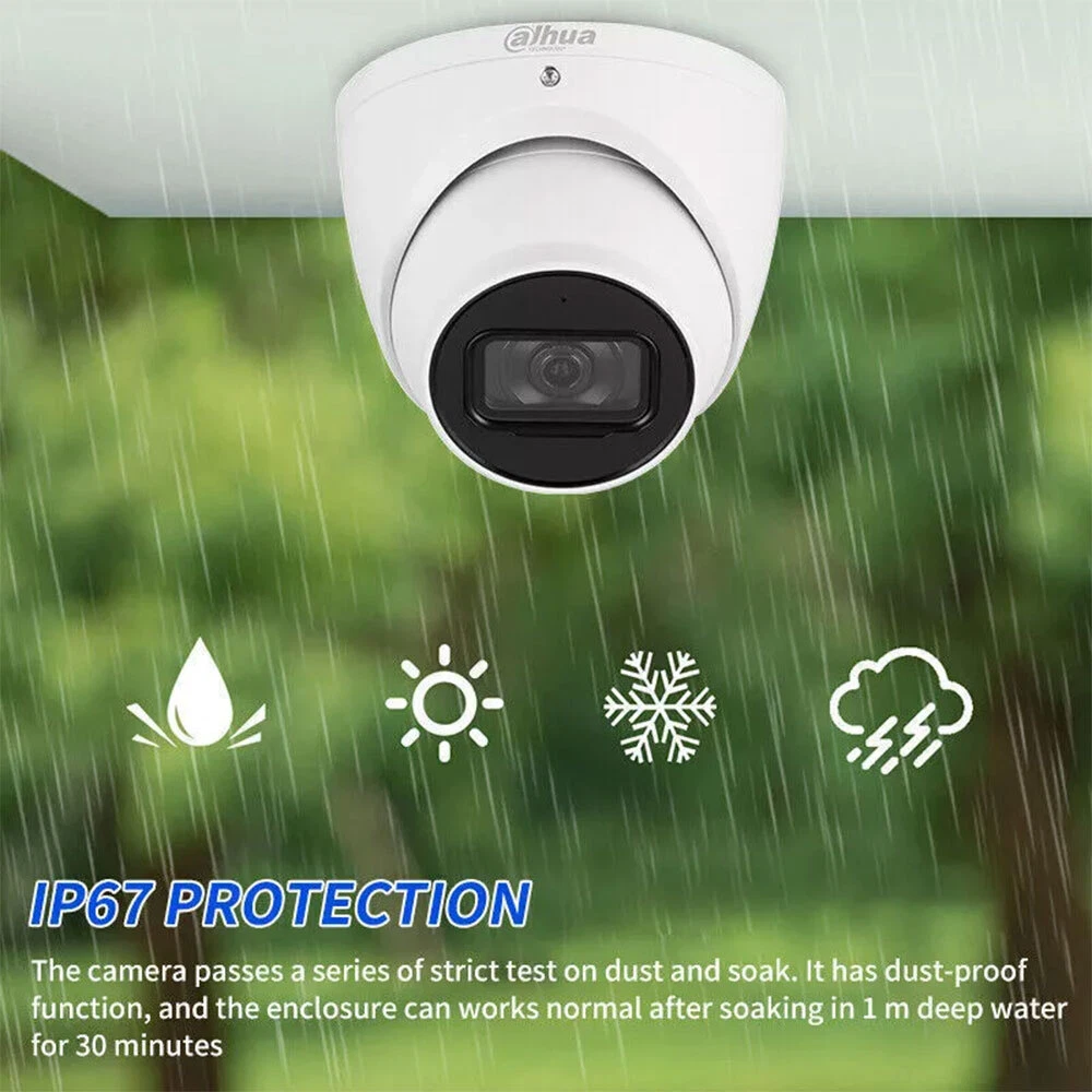 Product Description IPC-HDW3841EM-S-S2 8MP IR Fixed-focal Eyeball WizSense Network Camera Features: > 8-MP 1/2.8" CMOS image sensor, excellent low luminance performance and high definition of images. > Outputs max. 8MP (3840 × 2160) @25/30 fps. > H.265 codec, high compression rate, ultra-low bit rate. > Built-in IR LED, max. IR distance: 30 m. > ROI, SMART H.264 +/H.265+, AI H.264/H.265, flexible coding, applicable to various bandwidth and storage environments. > Rotation mode, WDR, 3D NR, HLC, BLC, digital watermarking, applicable to various monitoring scenes. > Intelligent detection: Intrusion, tripwire (support the classification and accurate detection of vehicle and human). > Abnormality detection: Motion detection, privacy masking, scene changing, audio detection, no SD card, SD card full, SD card error, network disconnection, IP conflict, illegal access, and voltage detection. > Max. 256 G Micro SD card. built-in Mic. > 12 VDC/PoE power supply facilitates installation. > IP67 protection. > SMD 4.0, AI SSA. Specifications: Camera Image Sensor 1/2.8" CMOS Max. Resolution 3840 (H) × 2160 (V) ROM 128 MB RAM 1 GB Scanning System Progressive Electronic Shutter Speed Auto/Manual 1/3 s–1/100,000 s Min. Illumination 0.007 lux@F1.4 (Color, 30 IRE) 0.0007 lux@F1.4 (B/W, 30 IRE) 0 lux (Illuminator on) S/N Ratio > 56 dB Illumination Distance 30 m (164 ft) Illuminator On/Off Control Auto/Manual Illuminator Number 2 (IR LED) Pan/Tilt/Rotation Range Pan: 0°–360°; Tilt: 0°–78°; Rotation: 0°–360° Lens Lens Type Fixed-focal Lens Mount M12 Focal Length 2.8 mm; 3.6 mm Max. Aperture F1.4 Field of View 2.8 mm: Horizontal:107°; vertical: 56°; diagonal: 127° 3.6 mm: Horizontal:84°; vertical: 47°; diagonal: 97° Iris Control Fixed Close Focus Distance 2.8 mm: 1.5 m (4.9 ft) 3.6 mm: 2 m (6.6 ft) DORI Distance Lens Detect Observe Recognize Identify 2.8 mm 87.7 m (287.73 ft) 35.1 m (115.16 ft) 17.5 m (57.41 ft) 8.8 m (28.87 ft) 3.6 mm 102.1 m (334.97 ft) 40.8 m (133.86 ft) 20.4 m (66.93 ft) 10.2 m (33.46 ft) Intelligence IVS (Perimeter Protection) Tripwire, intrusion (support the classification and accurate detection of vehicle and human) AI SSA Yes Quick Pick With AI NVR, quickly pick up the human/vehicle targets that users are interested in from SMD events Smart Search Work together with Smart NVR to perform refine intelligent search, event extraction and merging to event videos Video Video Compression H.265; H.264; H.264H; H.264B; MJPEG (only supported by the sub stream) Smart Codec Smart H.265+ Smart H.264+ AI Coding AI H.265 AI H.264 Video Frame Rate Main stream: 3840 × 2160 @ (1–25/30) fps Sub stream 1: 704 × 576 @ (1–25 fps)/704 × 480 @ (1–30 fps) Sub stream 2: 1920 × 1080 @ (1–25/30 fps) *The values above are the max. frame rates of each stream; for multiple streams, the values will be subjected to the total encoding capacity Stream Capability 3 streams Resolution 8M (3840 × 2160); 6M (3072 × 2048); 5M (3072 × 1728/2592 × 1944); 4M (2688 × 1520); 3.6M (2560 × 1440); 3M (2048 × 1536); 3M (2304 × 1296); 1080p (1920 × 1080); 1.3M (1280 × 960); 720p (1280 × 720); D1 (704 × 576/704 × 480); CIF (352 × 288/352 × 240); VGA (640 × 480) Bit Rate Control CBR/VBR Video Bit Rate H.264: 3 kbps–8192 kbps H.265: 3 kbps–8192 kbps Day/Night Auto (ICR)/Color/B/W BLC Yes HLC Yes WDR 120 dB Scene Self-adaptation (SSA) Yes White Balance Auto; natural; street lamp; outdoor; manual; regional custom Gain Control Auto Noise Reduction 3D NR Motion Detection OFF/ON (4 areas, rectangular) Region of Interest (RoI) Yes (4 areas) Defog Yes AFSA Yes Image Rotation 0°/90°/180°/270° (support 90°/270° with 2688×1520 resolution and lower) Mirror Yes Privacy Masking 4 areas Audio Built-in MIC Yes Audio Compression G.711a; G.711Mu; PCM; G.726; G.723 Alarm Alarm Event No SD card; SD card full; SD card error; service life warning (only supported by Dahua card); network disconnection; IP conflict; illegal access; motion detection; video tampering; intrusion; tripwire; scene changing; audio detection; voltage detection; SMD; safety exception Network Network Port RJ-45 (10/100 Base-T) SDK and API Yes Network Protocol IPv4; IPv6; HTTP;TCP; UDP; ARP; RTP; RTSP; RTCP; RTMP; SMTP; FTP; SFTP; DHCP; DNS; DDNS; QoS; UPnP; NTP; Multicast; ICMP; IGMP; NFS; SAMBA; PPPoE; SNMP Cyber Security Video encryption; Firmware encryption; Configuration encryption; Digest; WSSE; Account lockout; Security logs; IP/MAC filtering; Generation and importing of X.509 certification; syslog; HTTPS; 802.1x; Trusted boot; Trusted execution; Trusted upgrade Interoperability ONVIF (Profile S/Profile G/Profile T); CGI; P2P; Milestone; Genetec User/Host 20 (Total bandwidth: 64 M) Storage FTP; SFTP; Micro SD card (support max. 256 G); NAS Browser IE:IE11 Chrome Firefox Management Software Smart PSS; DSS; DMSS Mobile Client IOS; Android Certification Certifications CE-LVD: EN62368-1; CE-EMC: Electromagnetic Compatibility Directive 2014/30/EU; FCC: 47 CFR FCC Part 15, Subpart B; UL/CUL: UL62368-1 & CAN/CSA C22.2 No. 62368-1-14 Power Power Supply 12 VDC/PoE (802.3af) Power Consumption Basic: 4.3 W (12 VDC); 4.9 W (PoE) Max. (WDR + IR intensity + Intelligence): 7.6 W (12 VDC); 8.9 W (PoE) Environment Operating Temperature –40 °C to +60 °C (–40 °F to 140 °F) /Less than 95% RH Storage Temperature –40 °C to +60 °C (–40 °F to 140 °F) Protection IP67 Structure Casing Metal Product Dimensions 93.6 mm × Φ106.0 mm (3.69" × Φ4.17") Net Weight 500 g (1.10 lb) Gross Weight 770 g (1.70 lb) Shipping & Handling: Warranty & Return Policy: Feedback & About Us: About Customs duty/Tax: 1. Item will be shipped out within 5 business days after the payment. Please check and make sure your address is correct before payment. (In order to make sure you can receive the items successfully, please provide your phone number as well.) 2. The items will be shipped via Post Office Airmail. It usually takes around 2 to 3 weeks to United 