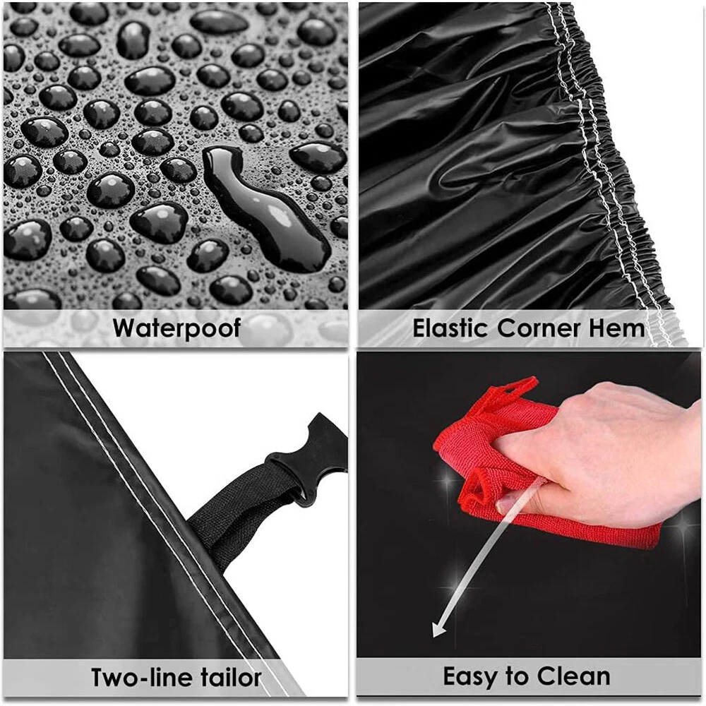 Pickup Truck Full Car Cover Black Anti-UV Outdoor Protection for Toyota Tundra Material: Polyester Taffeta(190T) Size: TXL: 238'' x 86.6'' x78.8'' Features: All-Weather Protection Car cover 100% waterproof all weathers. Car cover can achieve the effort of Sunproof, Windproof, Hailproof, Snowproof, Dustproof Scratch resistant and protect your vehicle from odirt, UV pollutants,Sand, Leaves, Branches, Snow, Rain, Frost, Birds Dropping. Premium Material Lightweight material, The high-density 190T polyester fabric makes it perfect and long use for outdoor/indoor against all weathers. And silver surface is high temperature resistant with reflecting high-sensitivity performance in hot summer. Professional and Safety Equipped with Windproof straps. At Front & Rear. To Fix Your Auto Cover In Heavy Wind Weather. F luorescent Light Strips are attached to the front, middle and rear of the car to prevent collision accidents in dark environments and greatly improve the safety of roadside parking at night. Wide Fitment Fit for Most Pickup. Delivery contents: 1 x Car Cover, 1 x Storage Bag, 6 x F luorescent Light Strip. Notice: Please take measure before your purchase. Your order will be shipped within 1 business days ( Excluding Weekends and Public Holidays)after your payment clear. * We only ship out within US. Domestic Packages are shipped via Standard Delivery from our stock in Walton, KY, US. * Item will be delivered within 1 - 6 business days in US. We ship to Paypal confirmed address ONLY. Please make sure your address in PayPal is matched with your shipping address before you pay. * We do not offer in store pick up and return service. Regardless of response, buyer can return item within 30 days and get a full refund. Item must be returned in good condition in original packaging, not damaged, not stained, no cut.