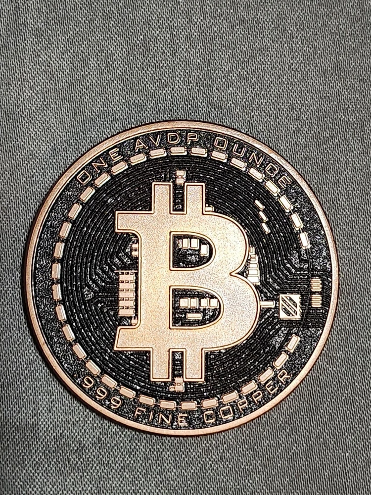 This black PHYSICAL BITCOIN 1 oz Copper Round is a valuable addition to any bullion collection. Crafted from high-quality copper with a fineness of 0.999, this round weighs precisely 1 oz and features a round shape. Made in the United States by Osborne Mint, it is a must-have for any collector or investor interested in precious metals. The round is uncertified and comes with no guarantee, making it a risky investment for some. However, those who value diversity and want to hedge against inflation will appreciate its unique features. This Copper Round is a perfect way to diversify your portfolio and protect your wealth.